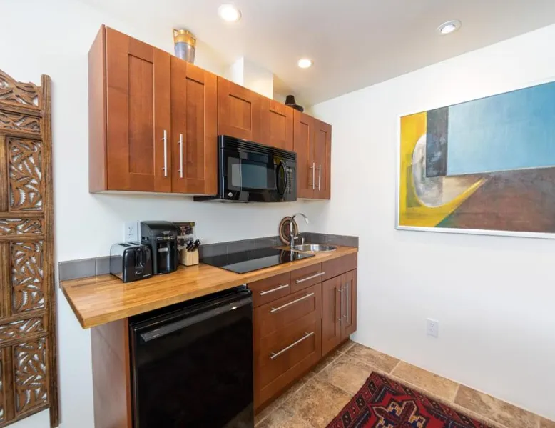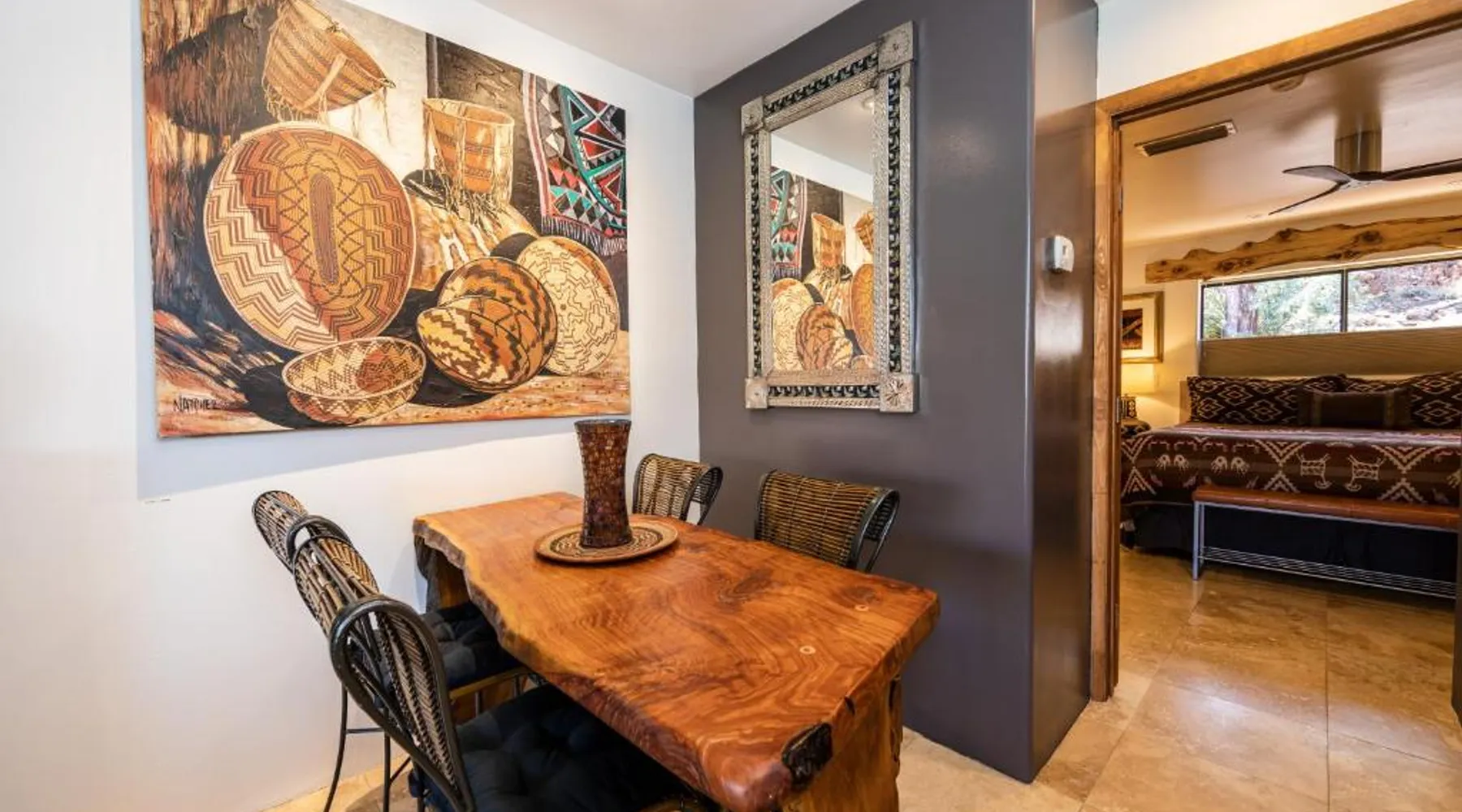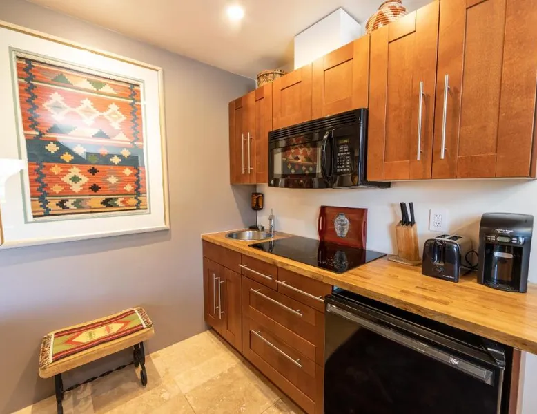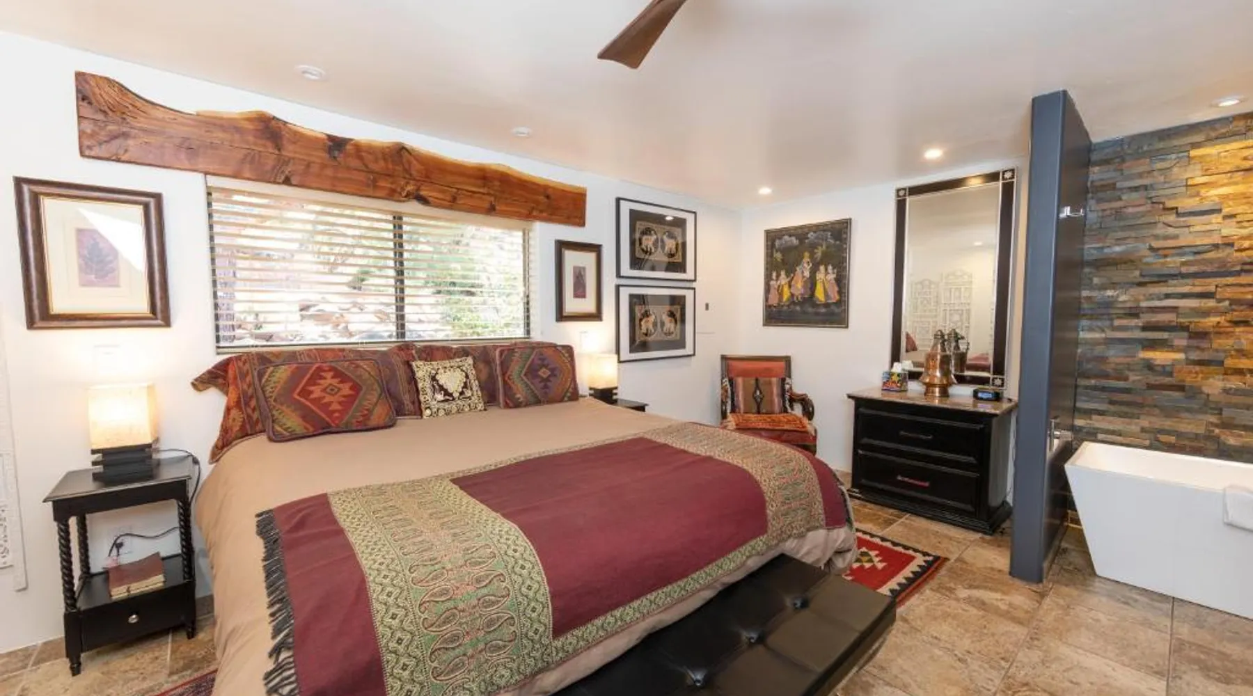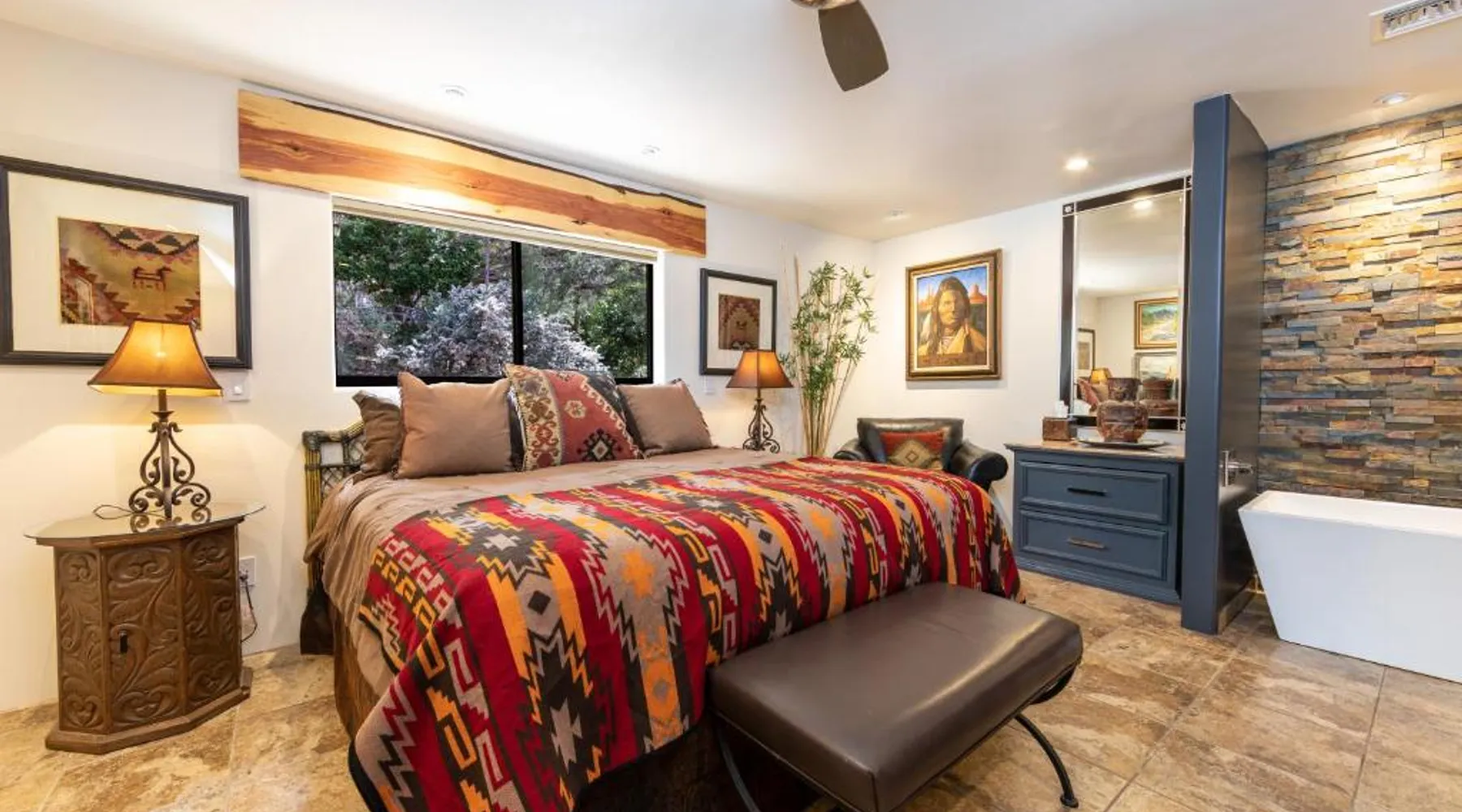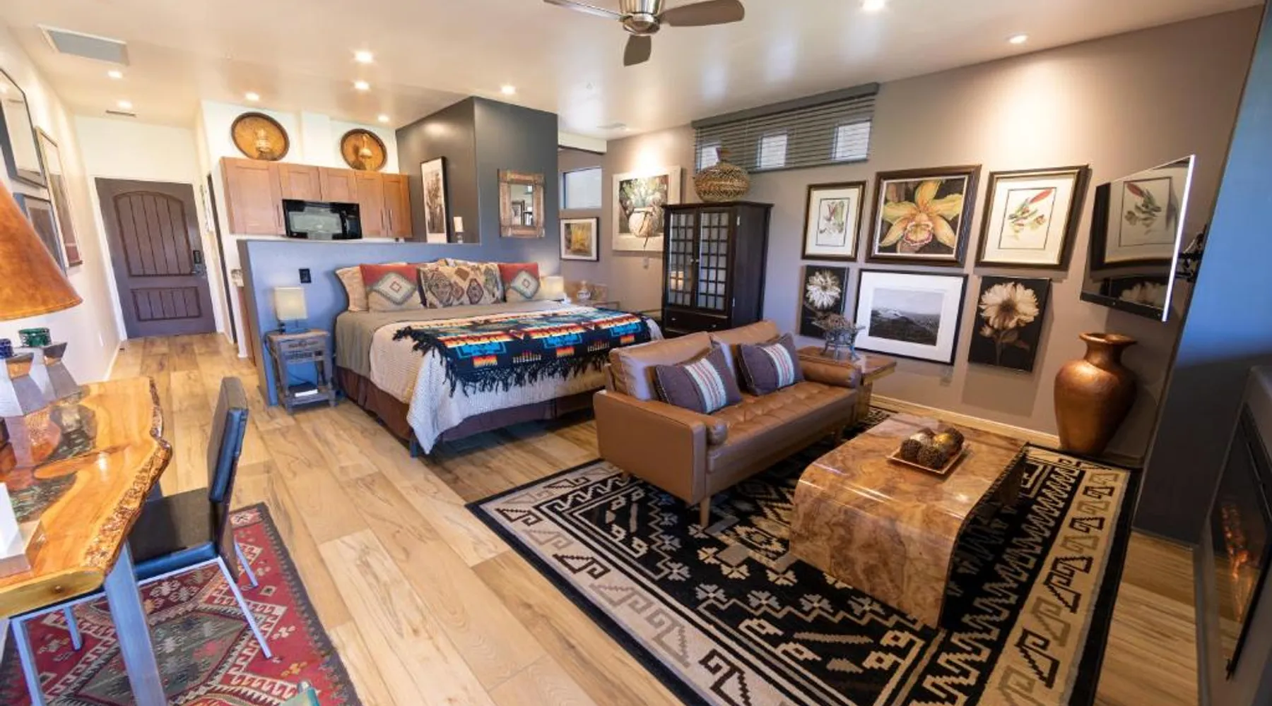 Located in Sedona, Arizona, this bed and breakfast features an outdoor pool and hot tub as well as an on-site tennis court. A full breakfast and free WiFi access are available. A fully equipped kitchenette and a flat-screen cable TV come standard in each room at A Sunset Chateau. Every private, private bathroom features a hairdryer, free toiletries and towels. You can enjoy a mountain view from select rooms. A garden, terrace, and waterfall with pond are available to guests at A Sunset Chateau. Hiking is possible in the nearby area. The property offers free parking. Red Rock Crossing is 5.5 miles away. Guests will be 7 minutes’ drive from the historic city of Tlaquepaque and 15 minutes’ drive from the Chapel of the Holy Cross. Also known as the Vista Montana, this suite features a fully equipped kitchenette, an electric fireplace and as soaking tub.