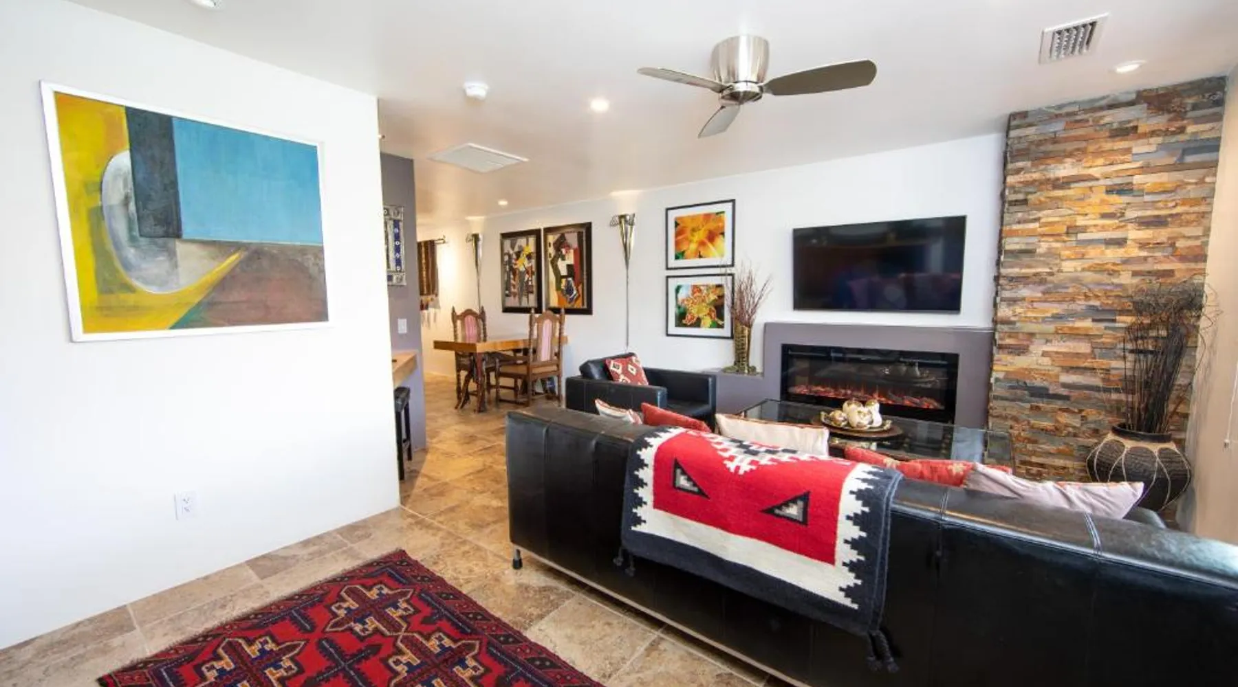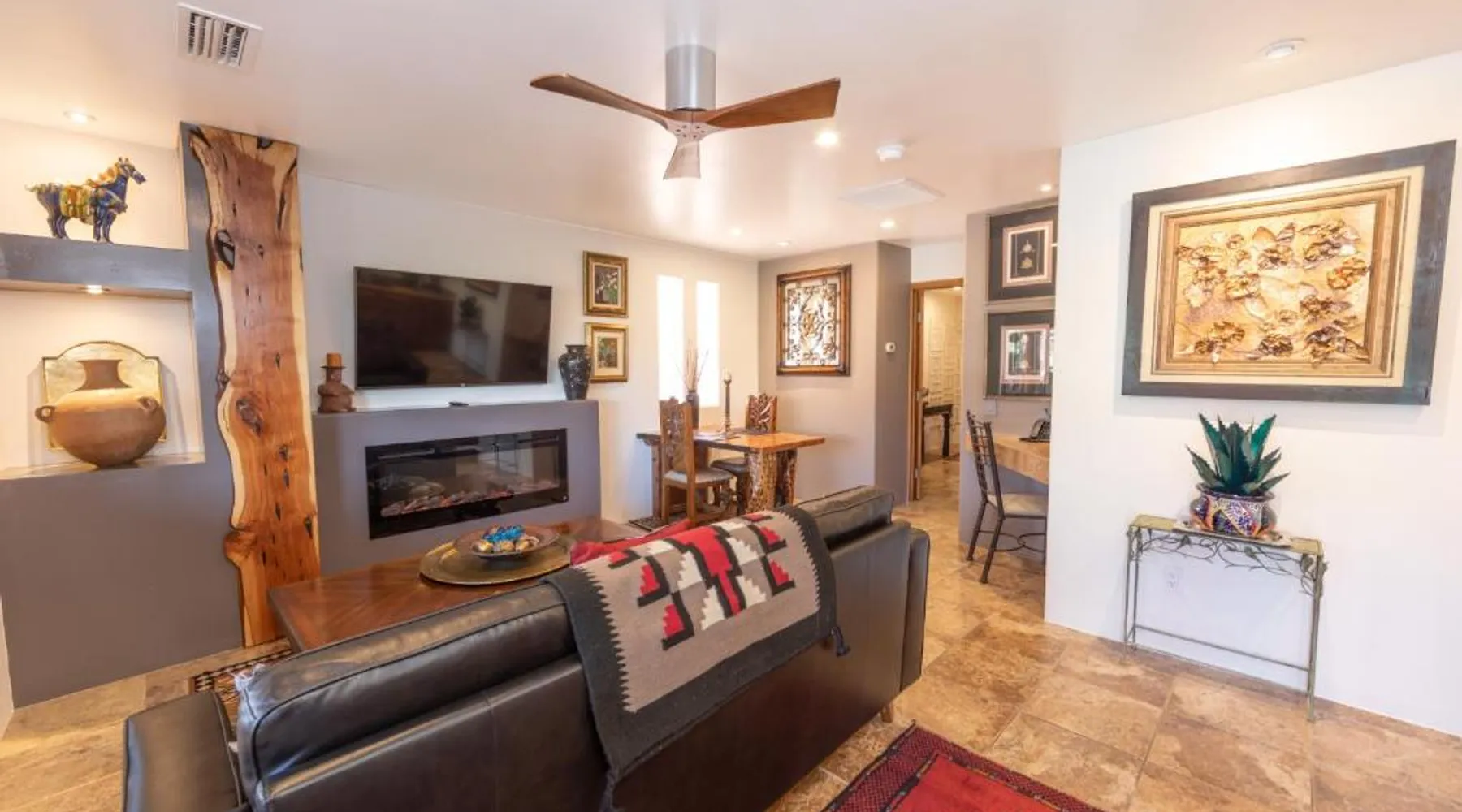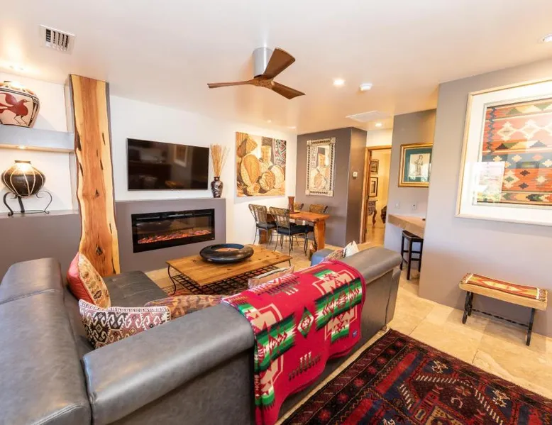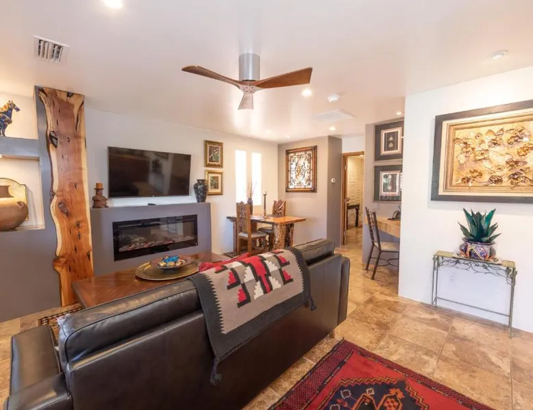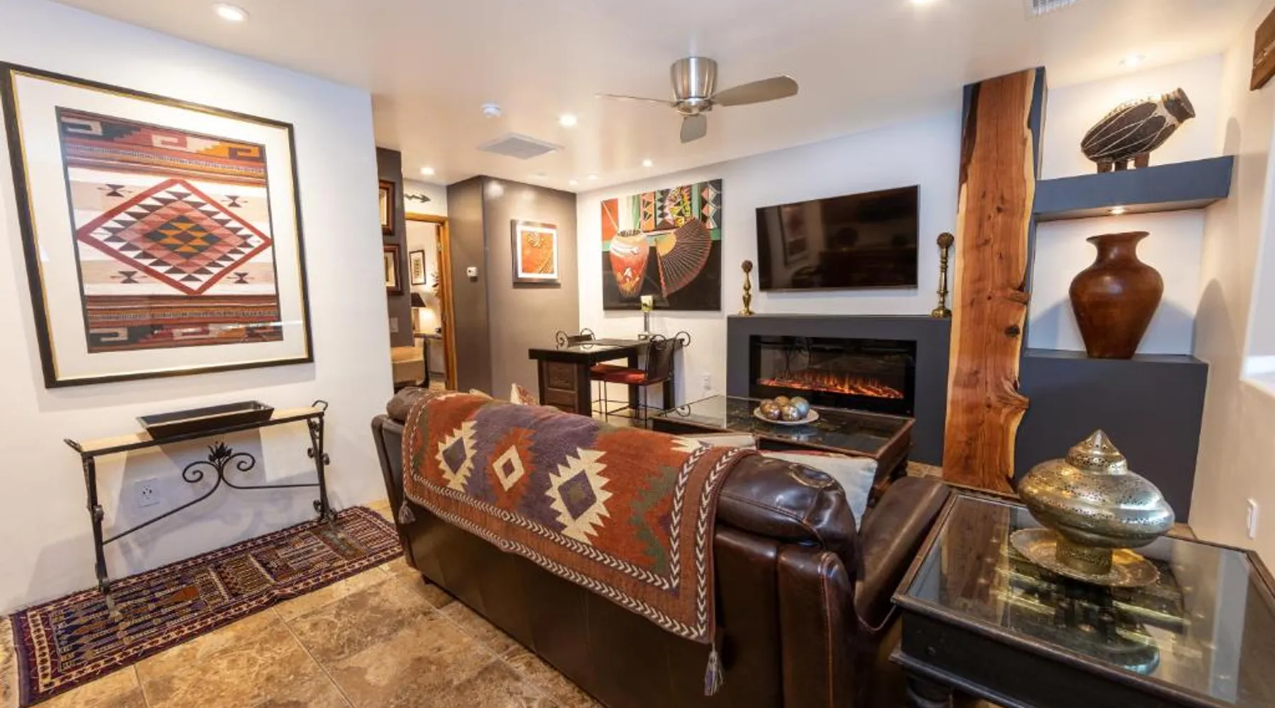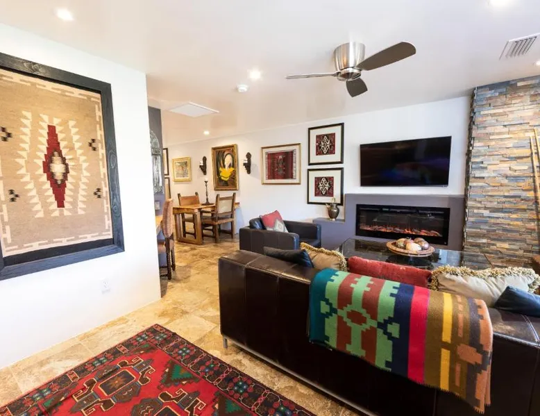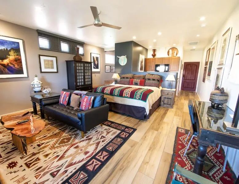 Located in Sedona, Arizona, this bed and breakfast features an outdoor pool and hot tub as well as an on-site tennis court. A full breakfast and free WiFi access are available. A fully equipped kitchenette and a flat-screen cable TV come standard in each room at A Sunset Chateau. Every private, private bathroom features a hairdryer, free toiletries and towels. You can enjoy a mountain view from select rooms. A garden, terrace, and waterfall with pond are available to guests at A Sunset Chateau. Hiking is possible in the nearby area. The property offers free parking. Red Rock Crossing is 5.5 miles away. Guests will be 7 minutes’ drive from the historic city of Tlaquepaque and 15 minutes’ drive from the Chapel of the Holy Cross. Also known as the Vista Montana, this suite features a fully equipped kitchenette, an electric fireplace and as soaking tub.