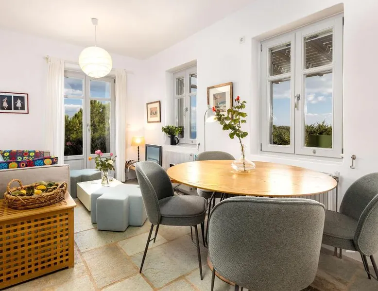Elegant Accommodations: Bralos Villa in Kostos, Paros offers a holiday home with two bedrooms and two bathrooms. The property features a sun terrace, garden, and free WiFi, ensuring a comfortable stay. Modern Amenities: Guests can enjoy air-conditioning, a terrace, balcony, and outdoor seating area. The home includes a fully equipped kitchen with a dishwasher, washing machine, and streaming services. Additional amenities include a dining table, sofa, and soundproofing. Prime Location: Located 11 mi from Paros National Airport, the villa is near attractions such as the Wine Museum of Naousa (4.3 mi), Archaeological Museum of Paros and Venetian Harbor (5.6 mi), and Church of Ekatontapyliani (5.6 mi). Free on-site private parking is available. Guest Favorites: Guests highly rate the location with stunning sea views and the attentive host. Featuring a private entrance, this air-conditioned holiday home consists of 1 living room, 2 separate bedrooms and 2 bathrooms with a shower and a hairdryer. Meals can be prepared in the kitchen, which comes with a stovetop, a refrigerator, a dishwasher and an oven. Boasting a terrace with sea views, this holiday home also provides a washing machine and a flat-screen TV with streaming services. The unit offers 4 beds.