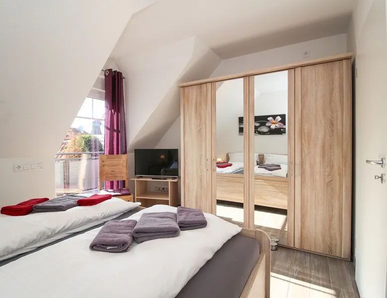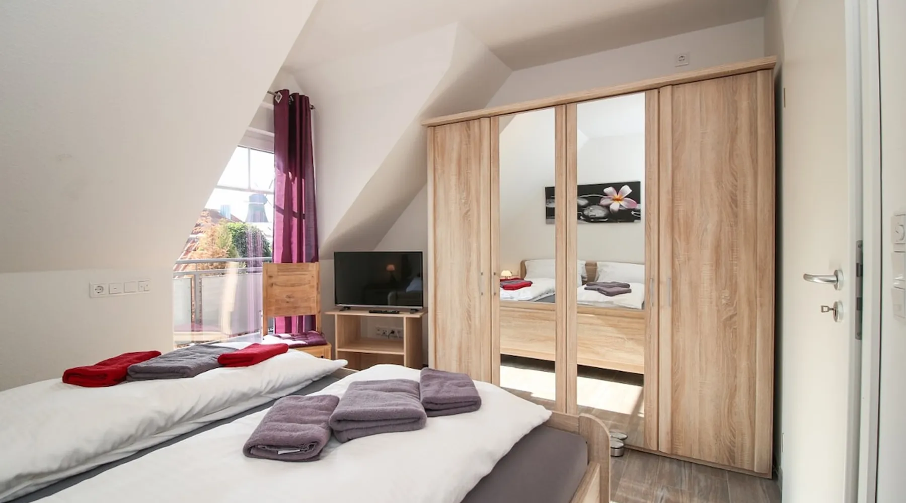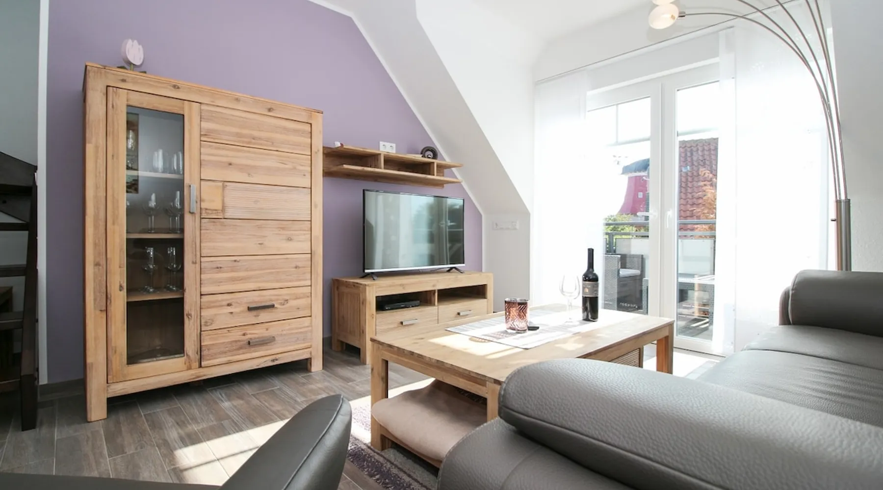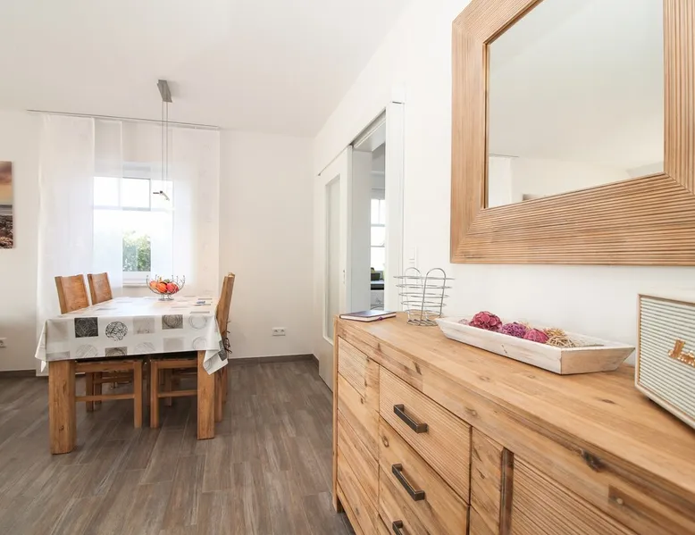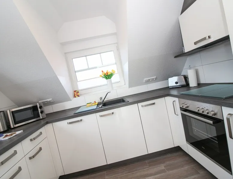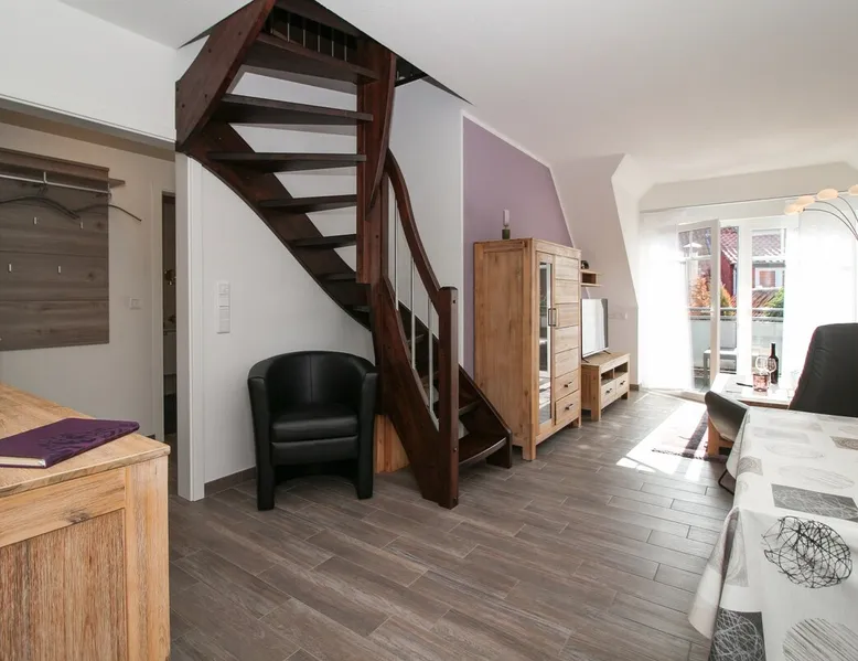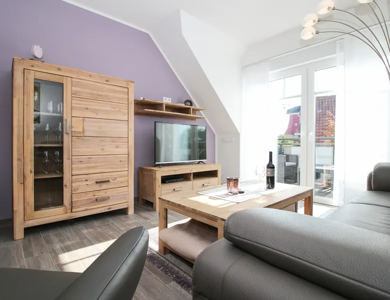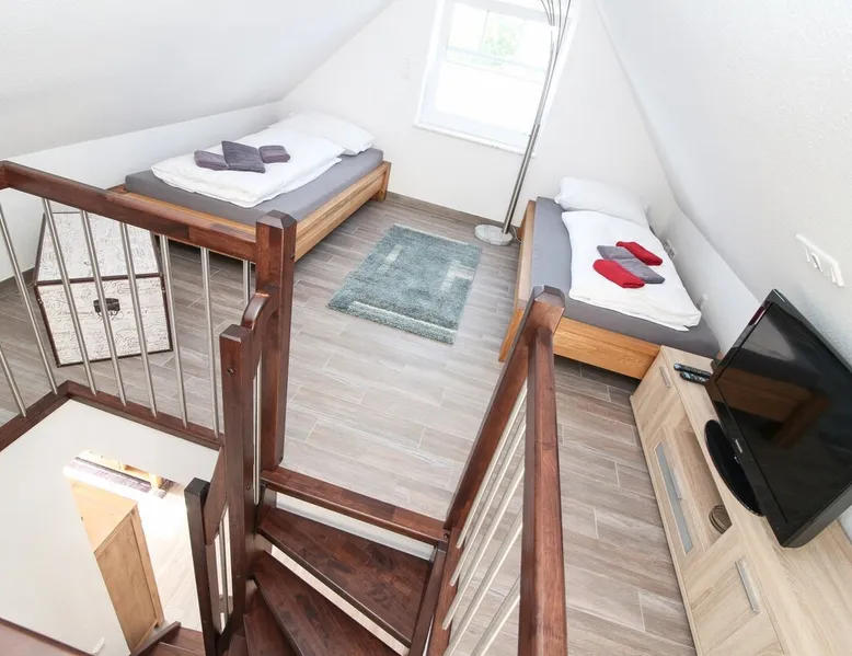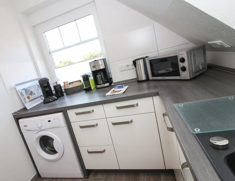 Highly equipped upstairs apartment on two levels for up to 4 people. The space The apartment "Mußestunde" for 4 people is in close proximity to the Greetsieler Zwillingsmühlen and is a few minutes walk from the place and the harbor. It has a living area of approx. 75 sqm. The apartment has a fully equipped, separate kitchen with all electrical appliances (dishwasher, washing machine, etc.), a living/dining area, a bedroom with double bed and a bathroom with walk-in shower. In the attic, there is another twin bedroom (100x200cm each). In addition, there is a second toilet in the attic. There is a TV set in the living room and bedroom. A balcony with garden furniture and a car parking space belong to the apartment. The overall equipment corresponds to high living standards (floor heating, electric shutters, lockable bicycle cabin, etc.). Under this vacation rental is the holiday apartment "Breathause". If necessary, two spatially nearby apartments can be booked. Access to the apartment is via a separate entrance. Dishes and cutlery are also sufficiently available with maximum occupancy. The apartment is located in a massive apartment building (built in 2016). For your safety, smoke detectors are provided.