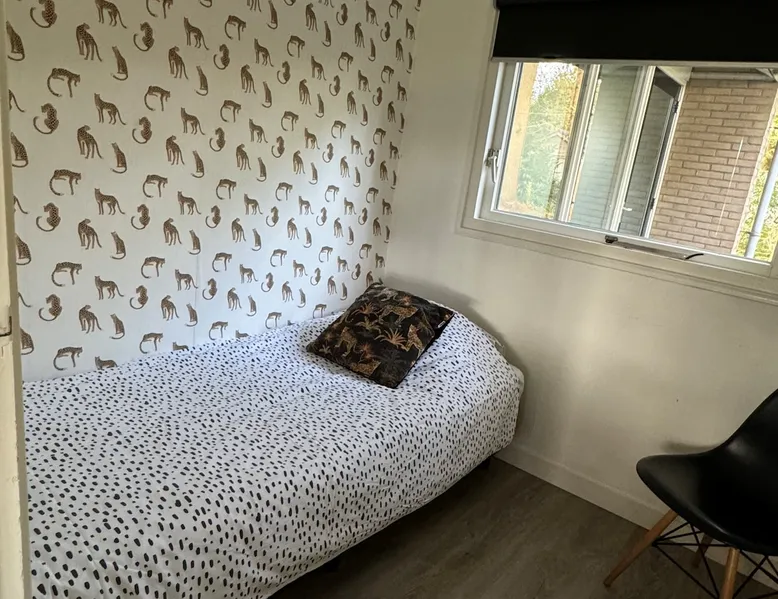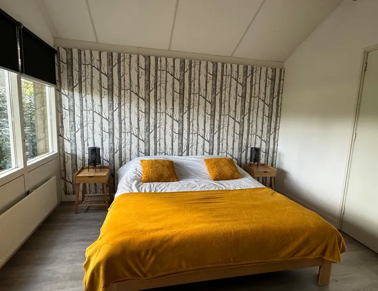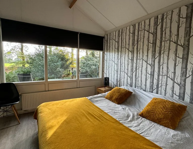 A lovely place on the edge of the forest with views over the meadows in front. Due to its location and its own plot of approx. 800m2 't Boshiem has a lot of privacy and tranquility and yet also close to the facilities of camping 't Hout. 't Boshiem has recently been completely refurbished and has a luxurious, warm atmosphere. 't Boshiem can accommodate 4 people. The round dining table in the bay window overlooking the meadows makes you really relax and can enjoy with family and/or friends. The space Complete with bed linen, kitchen linen. The beds are made. Guest access The plot of 't Boshiem is part of bungalow park 't Hout and is very spacious with plenty of privacy and tranquility. In addition to this site there is the campsite with playground and an indoor play paradise (open from the end of May to 1 September), which you can use free of charge. And if there are children, they can participate in the children's activities of the campsite from 1 May to 1 September. At the adjacent campground, you can get your hot rolls for breakfast in the morning if desired. The village of Bakkeveen is 200 meters from the park. In the village there is a supermarket, snack bar, eatery, butcher, hairdresser and an open-air swimming pool. High chair available, camping bed in consultation. Also there is a shed available where you can place bicycles.