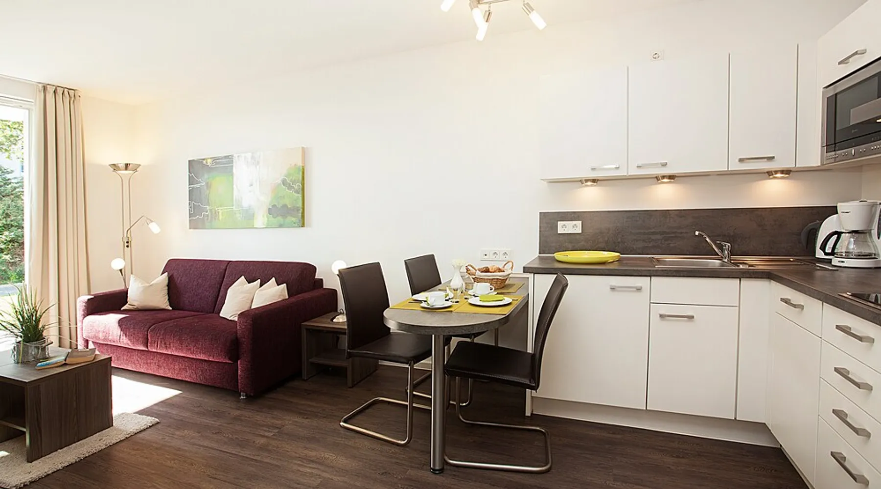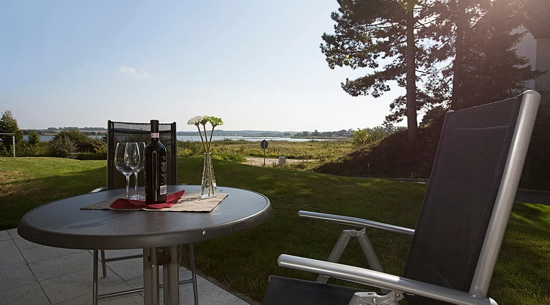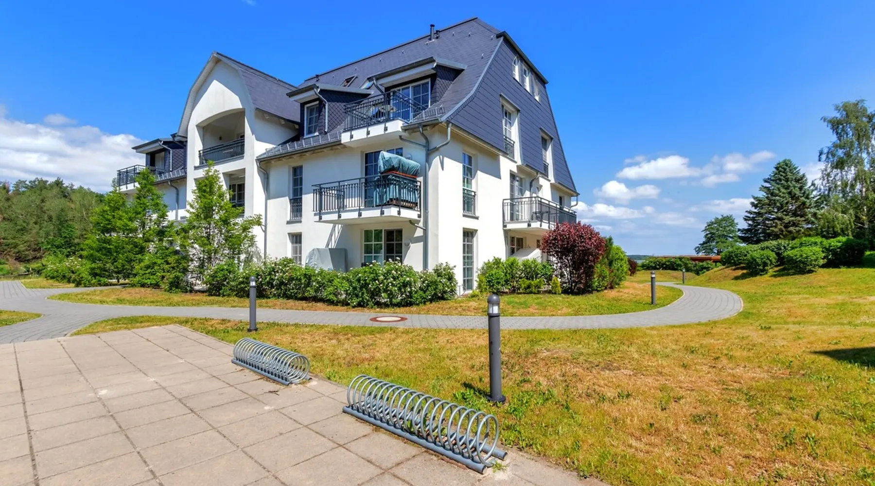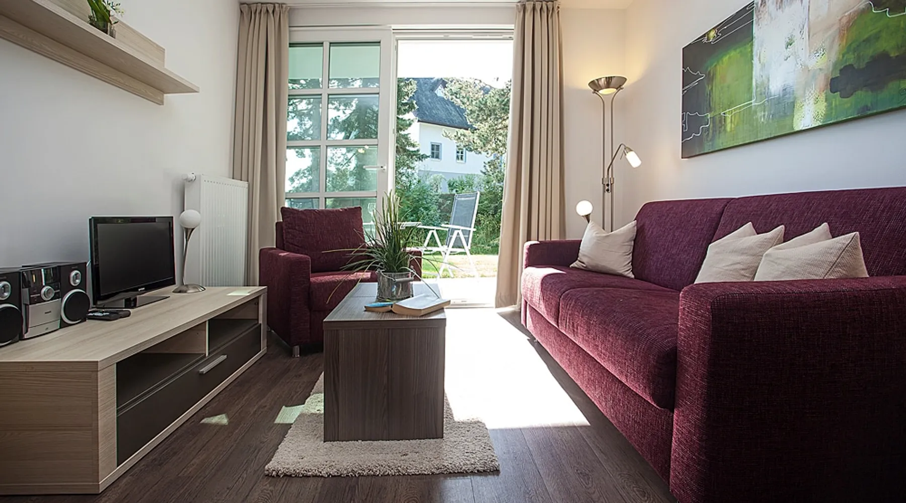 Fewo - BS_ 43 m², 1 bedroom(s), 1 bathroom(s), for 3 guest(s) Additional service charges may have to be paid locally on-site, see house rules and house manual for details. Thank you. The space Beautifully located with 4-DTV stars certified 2-room apartment (43 sqm) on the ground floor with terrace in a sunny south location and lake view as well as direct access to the lawn with bathing dock. In addition to the full bedroom with 2nd TV, the high-quality sofa bed in the living room can accommodate up to 2 more people or 2 children. The built-in kitchen has a dishwasher, microwave with grill, stove with ceramic hobs and hood. The bathroom is equipped with underfloor heating, the storage room offers additional space for golf bags or other bulky items. The apartment has its own underground parking space with direct access within the building. The wellness area with three different saunas, spacious relaxation room and fitness area is also located on the ground floor of the same building, just a few steps away. You are also welcome to use our free, open Wi-Fi access in the house. Please note that there may be fluctuations in the WLAN quality due to the island. The residence at Lake Balmer is a beautifully landscaped holiday complex located directly on the Achterwasser. With its two country-style newly built villas (completion is in spring 2012), they form the perfect synthesis for a relaxing holiday. On the one hand for those who are looking for relaxation and nature away from the hustle and bustle of the imperial baths, on the other hand for the holidaymaker who has discovered a special love in the leisure activities golf, water sports, every kind of cycling, etc., etc. Equipped with a reception, lifts, underground parking, own small laundry rooms with coin-operated equipment, usable areas for golf equipment and a private lawn on the Achterwater with its own jetty and many other additions, this facility leaves little room for open wishes. Golf The golf course Balm, which has existed for more than 10 years in a dreamlike environment and with its 2 x 18 hole and 1 x 9 hole golf courses, is located in the immediate vicinity (about 200m) of the residence. The golf course, which is well-known beyond the borders, is an attraction for all playful demands and wishes. In addition, you will receive a 30% green fee discount for the Baltic Hills Usedom golf course as our guests. Fantastically beautiful holiday apartments on Lake Balmer in the municipality of Benz, not far from the imperial baths of Heringsdorf, Bansin and Ahlbeck. Our holiday apartments at Lake Balmer are available in all sizes and many different furnishings. As guests of the residence on Lake Balmer, we have reserved parking spaces for you in the imperial baths, some with an associated beach chair.