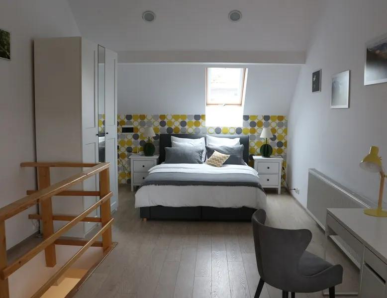 10 minutes away from Fagaras Fortress, one of the last standing, well-preserved fortresses in Transylvania, the flat is located in the middle of the town, in a quiet neighbourhood. Apart from the free parking place, the flat offers a well-equipped kitchen, a spacious and cosy attic at the top of the house and all the other modern facilities you need so that your stay is restful and as pleasant as possible. The bedroom can accomodate up to 4 people in one king bed and a double sofa bed.