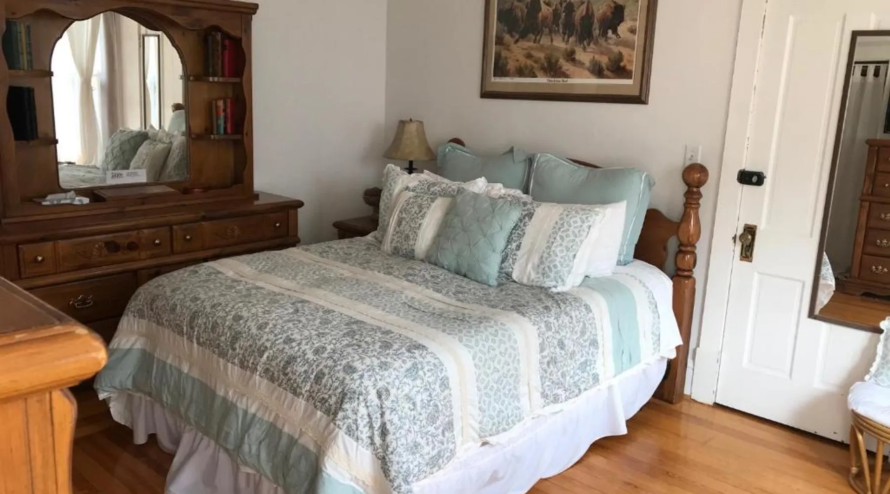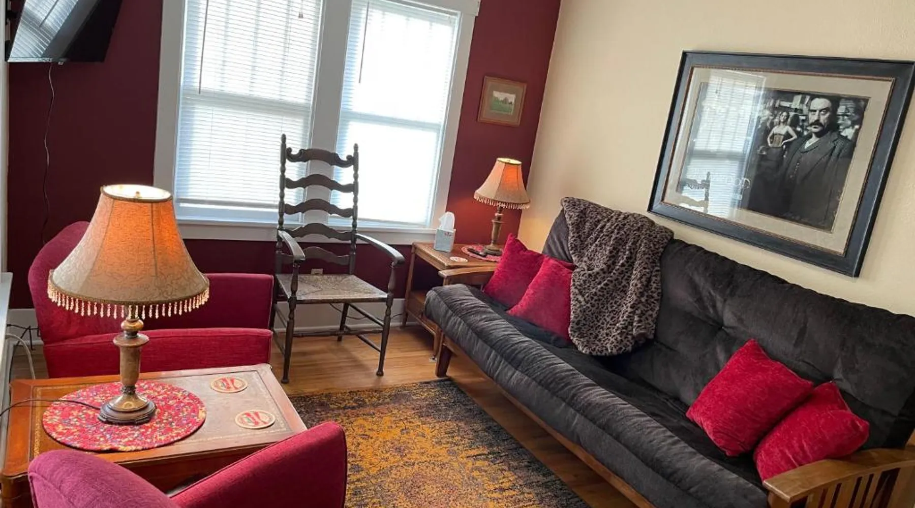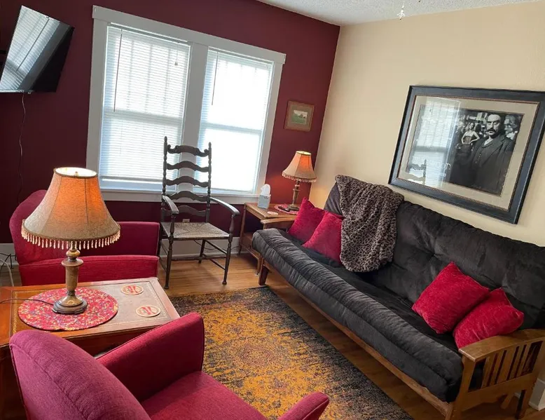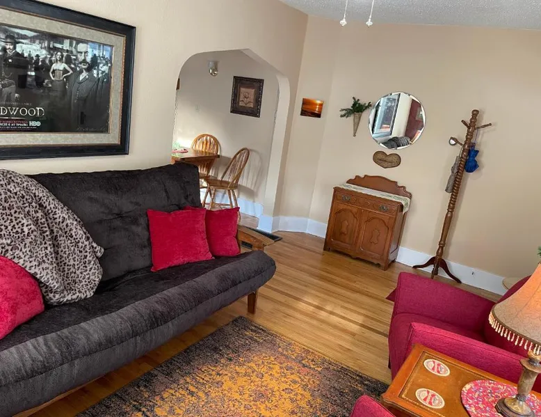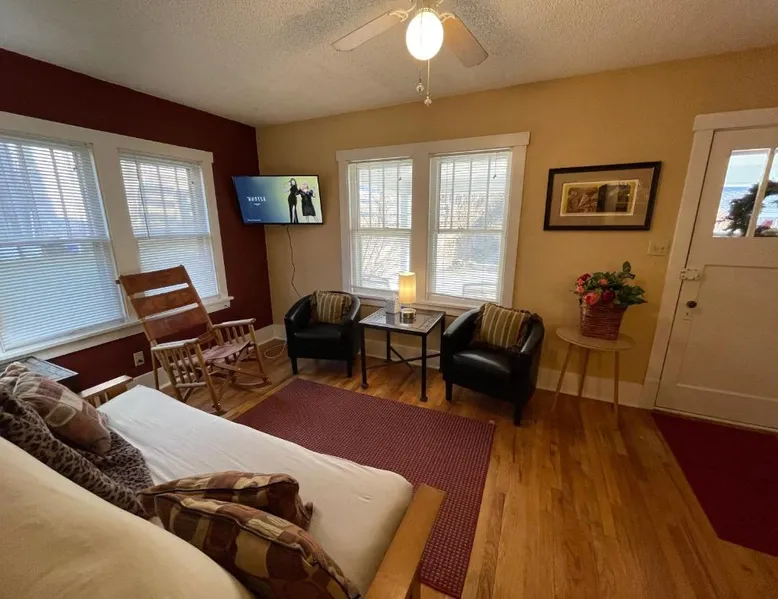 Historic Setting: 1899 Inn in Deadwood offers a unique stay within a historic building. Guests enjoy mountain and city views from their balconies or patios. Comfortable Accommodations: Rooms feature air-conditioning, private bathrooms, and modern amenities such as free WiFi and streaming services. Additional facilities include a lounge, games room, and outdoor seating area. Delicious Breakfast: A variety of breakfast options are available, including American, full English/Irish, vegetarian, vegan, and gluten-free. Local specialties, fresh pastries, and warm dishes enhance the morning experience. Convenient Location: Located 53 mi from Rapid City Regional Airport, the inn is a short walk from Adams Museum. Guests appreciate the friendly host, excellent breakfast, and convenient location. This attic room features mountain views, a flat-screen cable TV and an an private bathroom with a hairdryer. - Please note: This room is only accessible by climbing 2 flights of stairs.