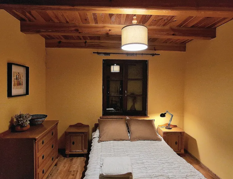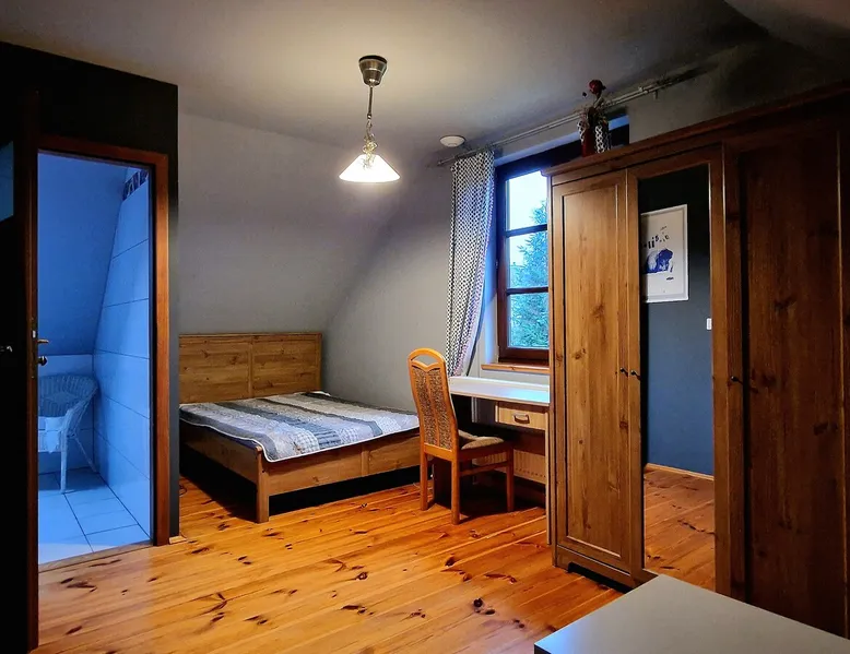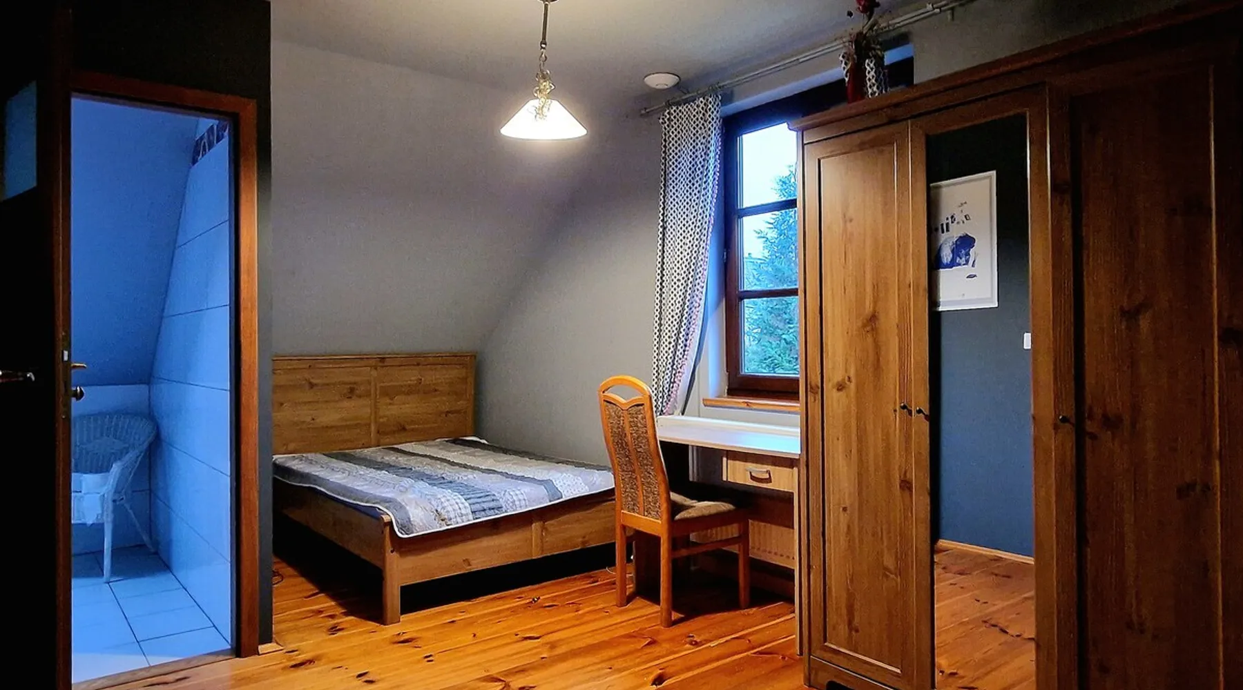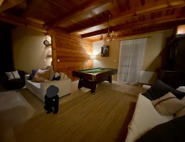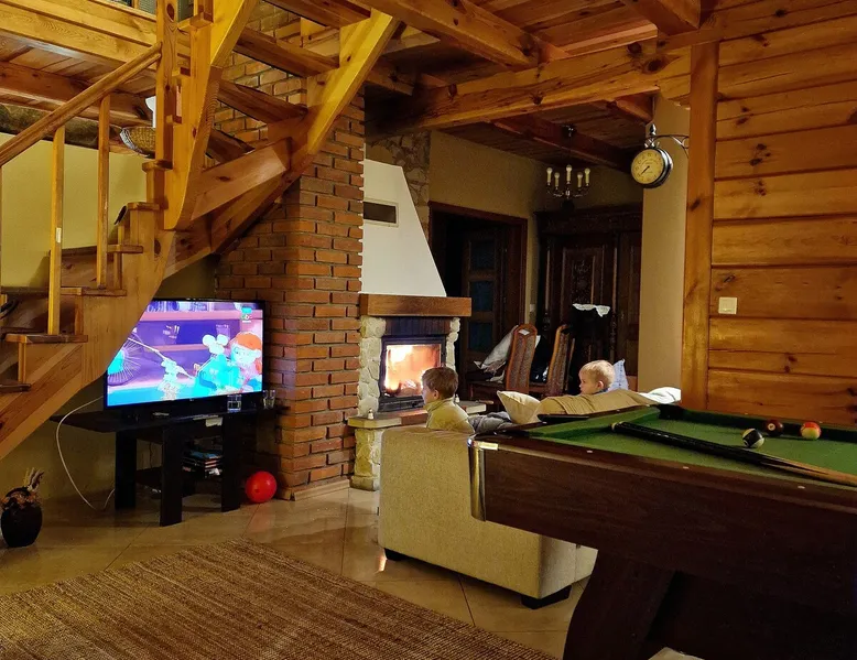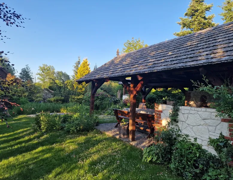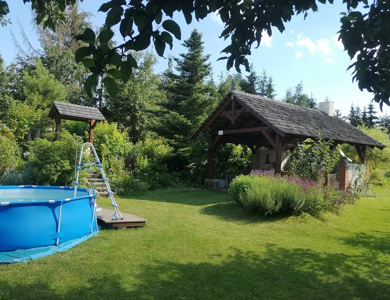 A cozy log cabin between Kazimierz Dolny and Nałęczów. The house has a spacious living room with a fireplace, comfortable sofas and a pool table. The house has a very large and fully equipped kitchen. There are 3 bedrooms, two of which have private bathrooms with showers. There is a hot tub in the bathroom on the ground floor. The area is famous for its network of loess gorges, a perfect place for spring walks. The house is surrounded by a garden with a summer kitchen. The space www.nadbystra.pl Guest access Only registered guests are allowed to stay on the premises.