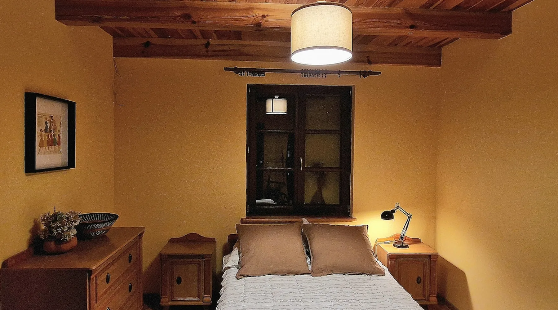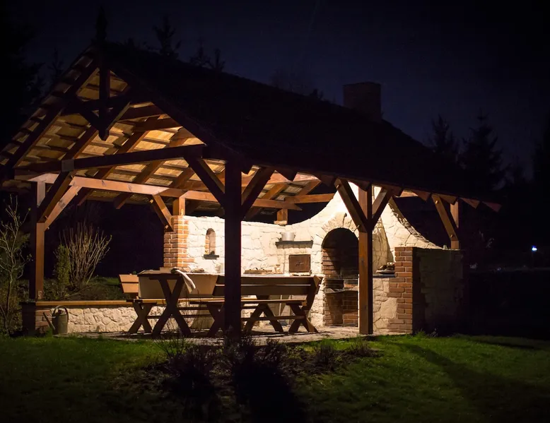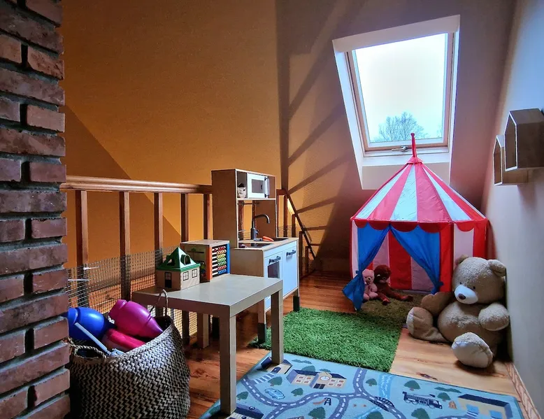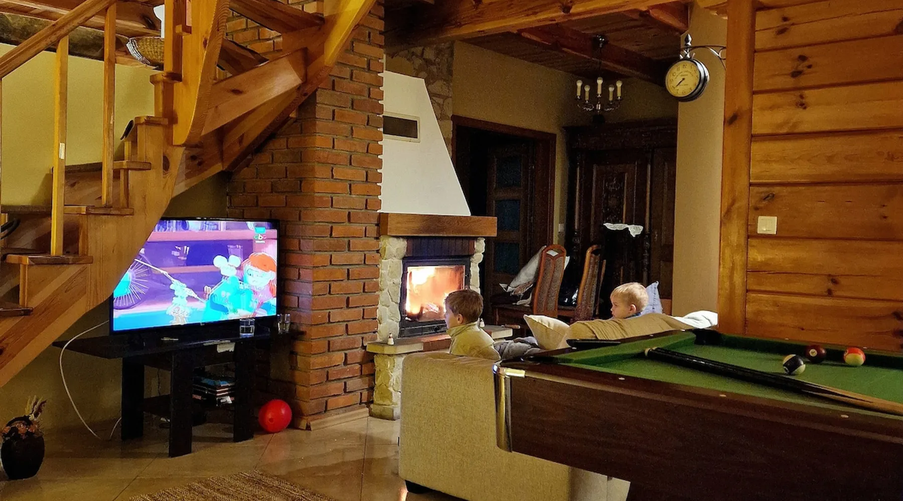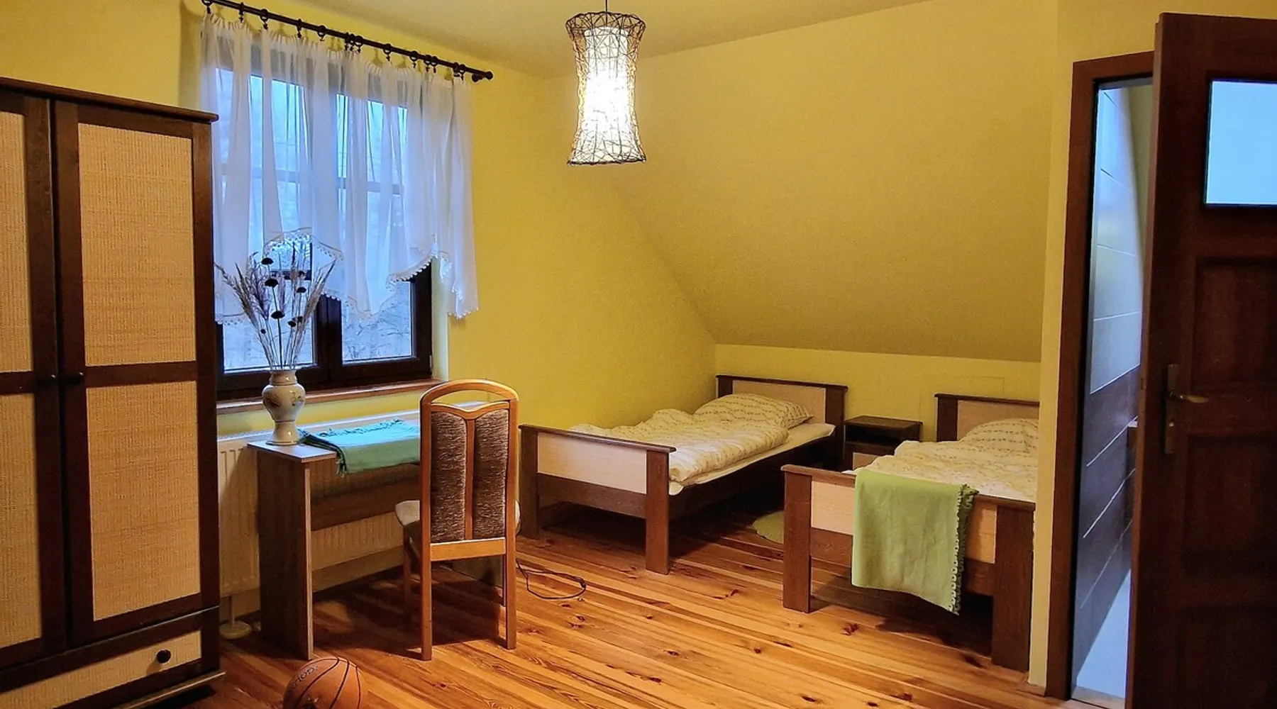 A cozy log cabin between Kazimierz Dolny and Nałęczów. The house has a spacious living room with a fireplace, comfortable sofas and a pool table. The house has a very large and fully equipped kitchen. There are 3 bedrooms, two of which have private bathrooms with showers. There is a hot tub in the bathroom on the ground floor. The area is famous for its network of loess gorges, a perfect place for spring walks. The house is surrounded by a garden with a summer kitchen. The space www.nadbystra.pl Guest access Only registered guests are allowed to stay on the premises.