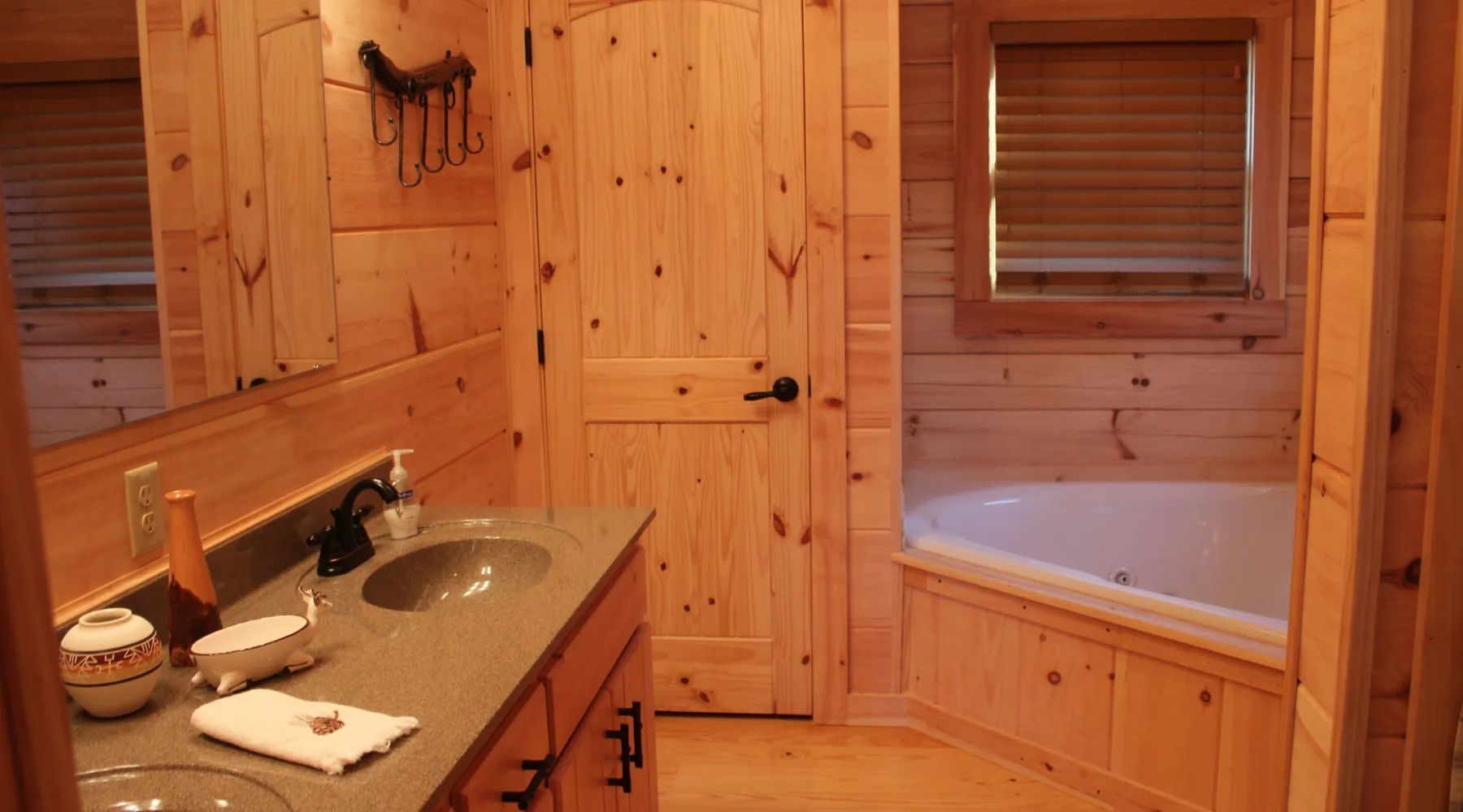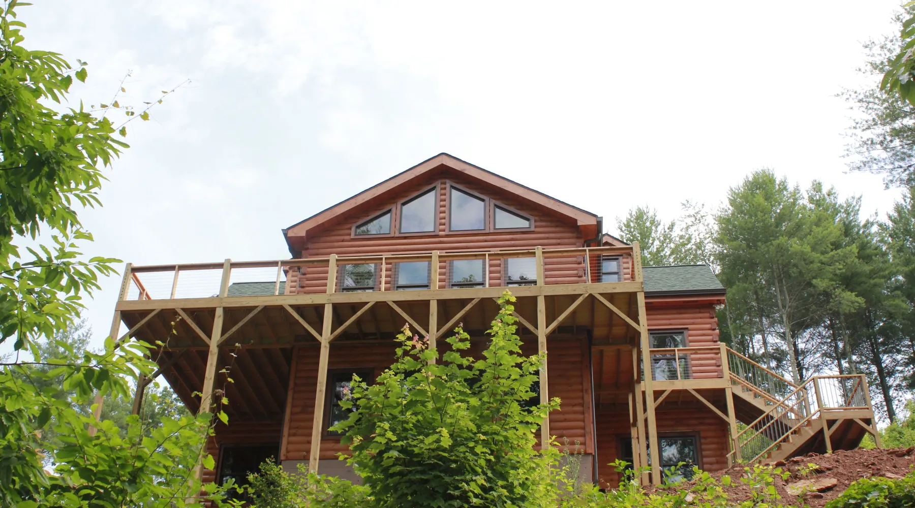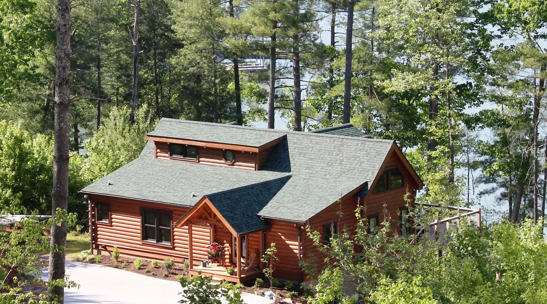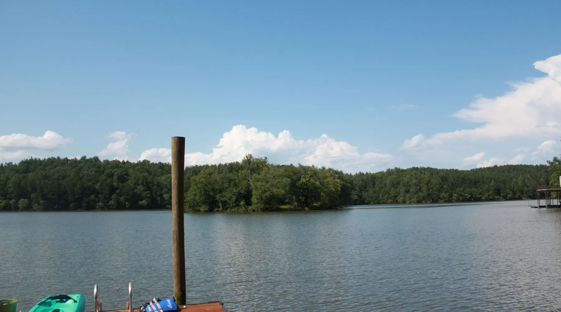 Peaceful new log cabin on Lake Rhodhiss. Perfect getaway for fishing, swimming, boating, or just relaxing. Log cabin decks overlook the private dock with full view of the lake. Queen beds in Master BR, second BR on main floor bedroom, and queen bed and full size futon in loft. Full master suite with whirlpool tub and separate shower, plus second full bath on main floor, and full bath/shower in loft. Room to bring your boat, and 4 kayaks available for your use. Approximately one hour to Charlotte, one hour to Asheville, and one hour to Boone, so centrally located in the best of North Carolina. Excellent fishing lake, with minimal development. Watch American Bald Eagle pair annually build their nest, hatch and raise their baby eagles, less than a quarter mile away. House sits up above lake with a steep concrete driveway, with winding sloping path to dock. Lake Rhodhiss is not heavily developed, so there is not a lot of boat traffic, keeping it very peaceful. If there are very heavy rains, the lake can get murky, but does clear fairly quickly. Gated community has 3 miles of paved roads for biking or walking.
