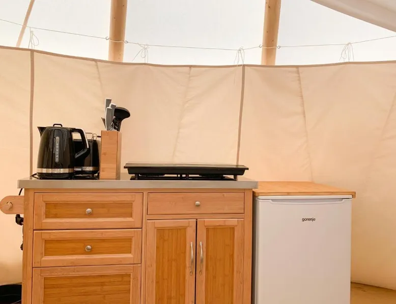 Comfortable Living Space: Teepee Blackfoot in Belau offers a one-bedroom apartment with a terrace and a sauna. Free WiFi is available throughout the property. Modern Amenities: The apartment includes a kitchenette, washing machine, and a dining area. Additional features include an outdoor fireplace, seating area, and a children's playground. Convenient Location: Located 45 mi from Lübeck Airport, the property is 9.3 mi from Ploen Main Train Station and 19 mi from Kiel Central Station. Nearby attractions include Sophienhof and Kiel Maritime Museum. This apartment features a sauna. Boasting 1 bedroom, this apartment has 1 bathroom with a shower, a seating area and terrace where you can relax. Guests will find a stovetop, a refrigerator, kitchenware and a toaster in the kitchen. The apartment also comes with a barbecue. The apartment features a washing machine, a coffee machine, as well as an outdoor dining area and outdoor furniture. The unit offers 1 bed.