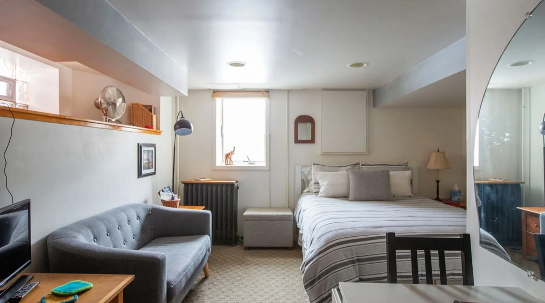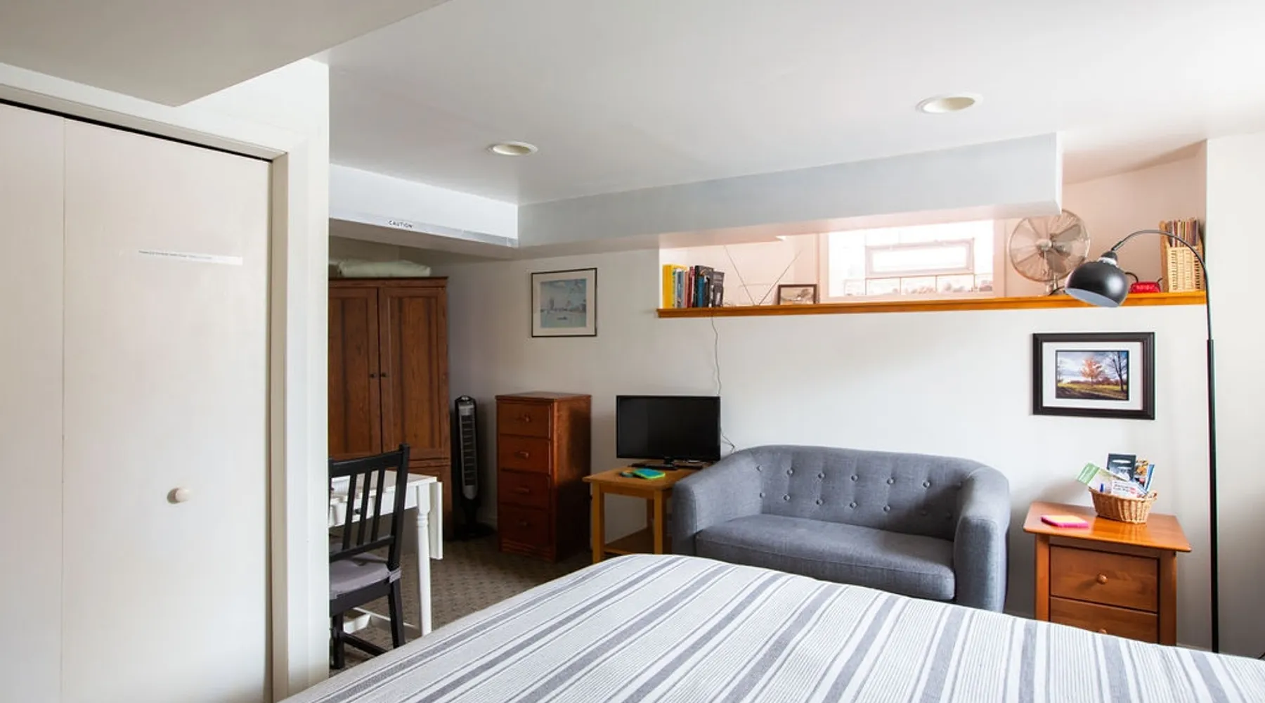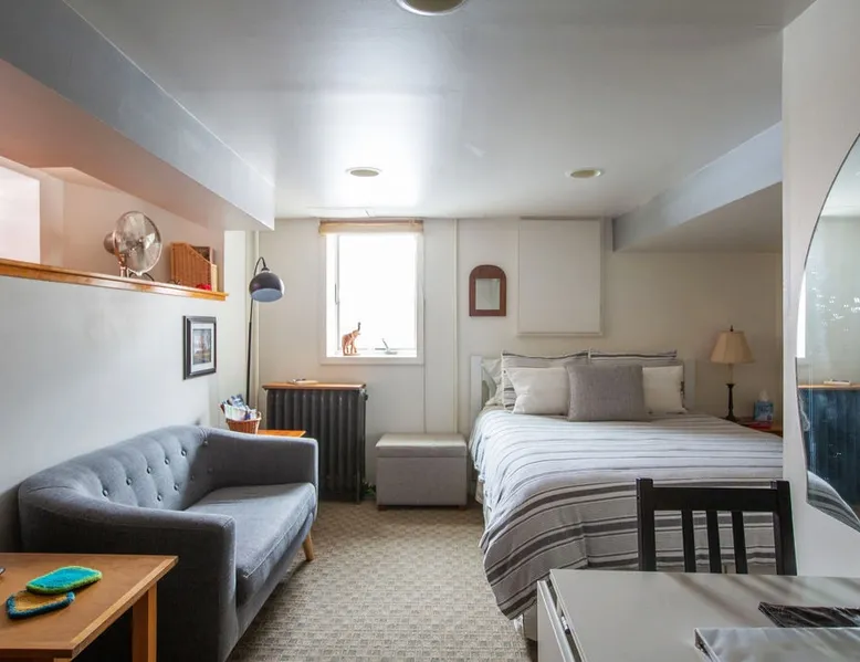 This is a simple furnished basement apartment with a private entrance. Two rooms: a fully equipped kitchenette, laundry, shower AND a bedroom with a high quality queen bed, antique table &chairs, and cute little couch. We live in the house above. Our house is one of those sweet old houses (1906) in South Minneapolis. We are within walking distance of Lake Harriet and Bde Maka Ska (formerly Lake Calhoun), and many great restaurants and coffee shops. This is a cozy place to stay in the winter! The space There's an armoire to hang your clothes. Good quality sheets, down comforter, and extra blankets. It's cozy, private, and clean. The space has its own thermostat to control the radiator heat. It is delightfully warm and dry. The easement window looks out on our pleasant yard and garden and provides a nice breeze. There is no air conditioning, but a fan is provided in the summer months. Guests have noted that in the bedroom there are several places where the ceiling is low. The facade of the ceiling covers the plumbing, and someone who is 6 feet tall has to duck to get past those areas....! Free internet. The bathroom area (toilet and sink) is separated from the kitchenette, laundry, and shower, by a curtain. The entire kitchenette/bathroom/laundry is one room, with a door and hallway which separate it from the bedroom. When two people share the space, a person can have private use of the bathroom/kitchenette by closing the door that closes off that whole area. Guest access You'll have your own access-- a well-lit side entrance is all yours to come and go. Free parking is available on the street. You check in on your own, and we say hello if we are around. We are available by text or call also. Other things to note The Kingfield neighborhood is nice! You can walk to get homemade doughnuts! How about organic sushi? We are close to Victor's 1959 (Cuban) cafe, or Rincon 38, or The Grand Cafe. All right down the street. There are several craft breweries nearby! And... we're within walking distance to Lake Harriet and Bde Maka Ska (formerly Lake Calhoun). Both of these lakes have paved walking and biking trails around them, as well as beaches, benches to sit on, and lawn areas. There's a bird sanctuary and rose garden on the way to Lake Harriet. Easy access to Uptown and Downtown. Near the bus lines. The Nice Ride bikes are available 4 blocks away. Come visit soon! Registration Details LIC-363828