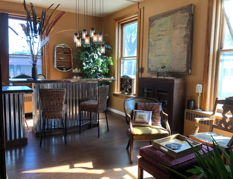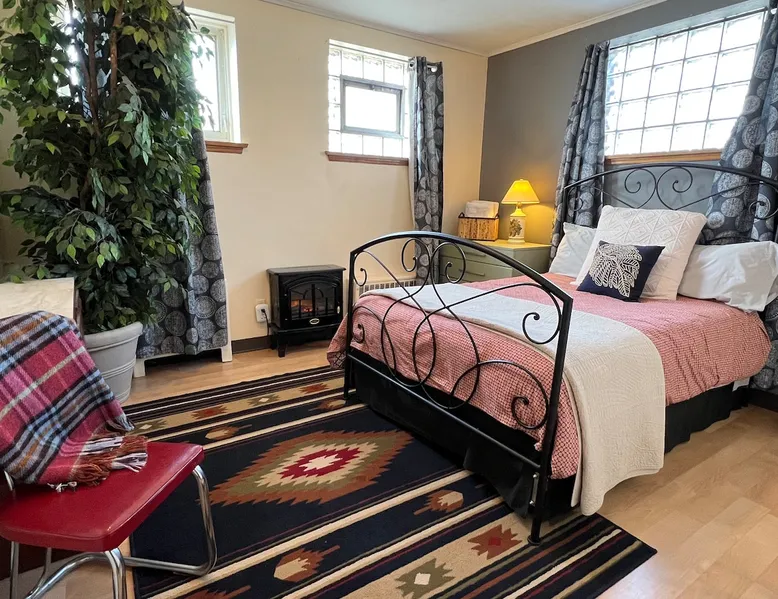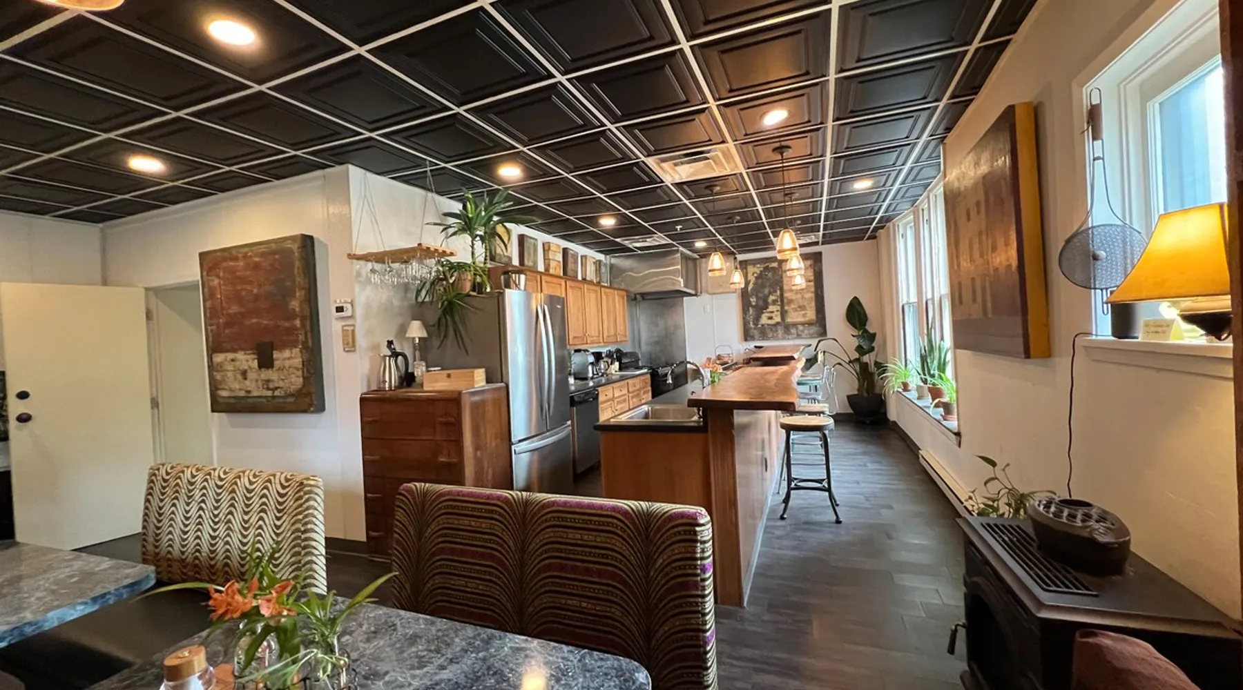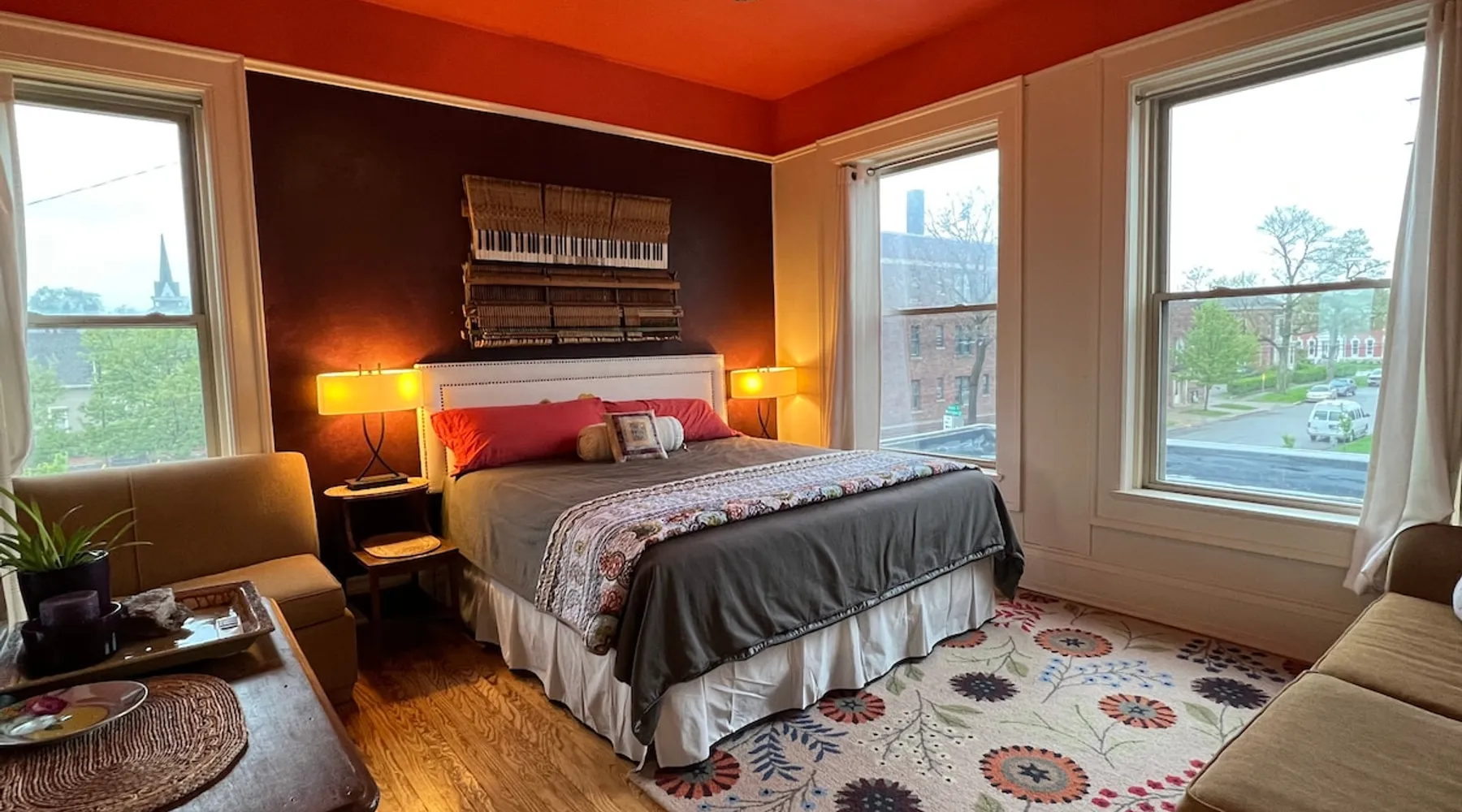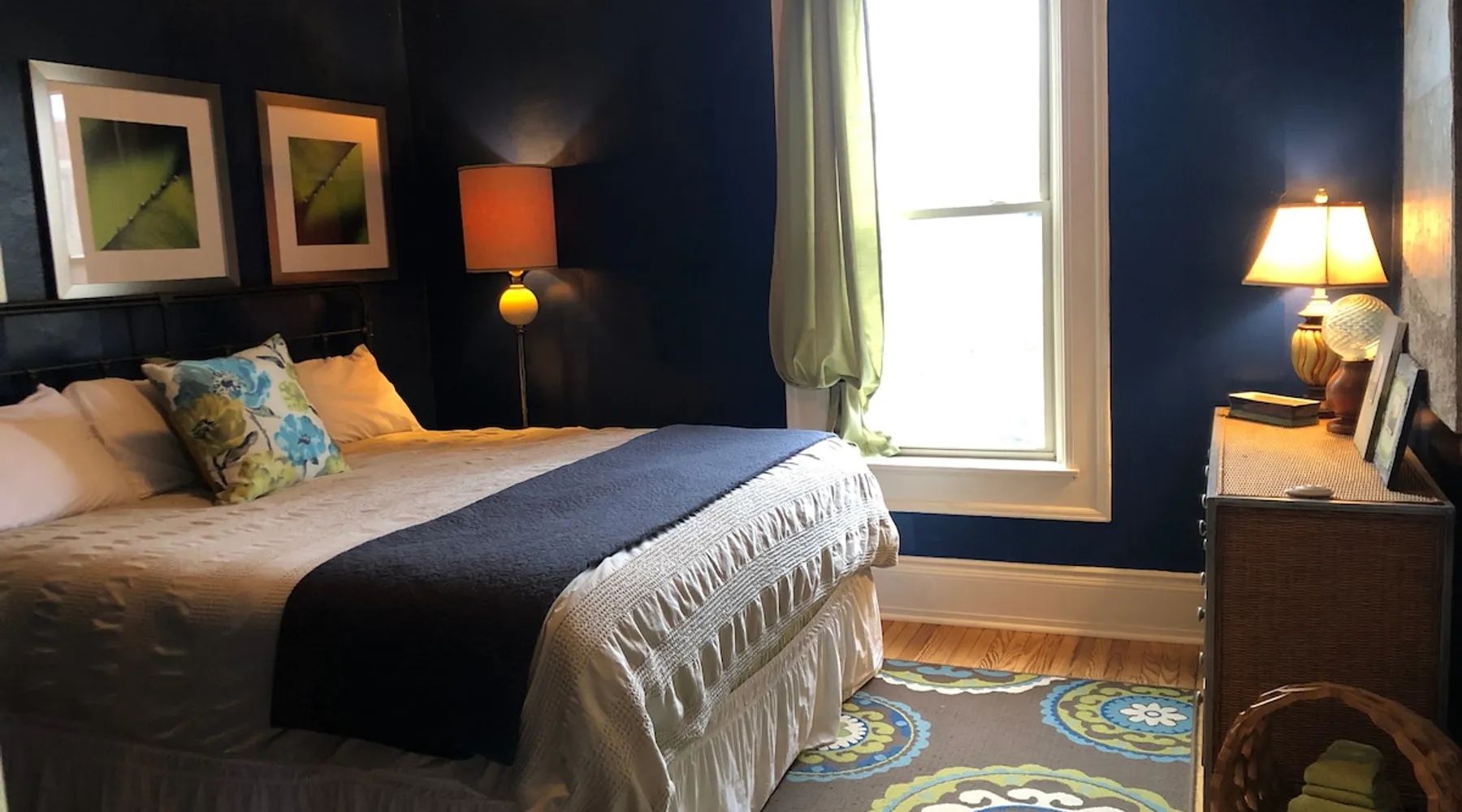 OM INN is on the Historic Registry, has 70 paintings by a renown artist and is filled with funky eye candy. Twelve guest bedrooms with 15 beds, easily hosting 20-25. Base price on 8 guests- 7 bedrooms, over 8 is a per person rate $60 per person/per night. Over 13 guests, mezzanine included, under 13, $250.00. Many common spaces (6) a very large fun kitchen, bar, dual fires in twin living rooms. Neighbor Starbucks, Stadium, Botanical Garden. Owners live upstairs. Responsible kids considered The space Full home rental including the entire first floor with three bedrooms (sleeps 5), five living rooms, huge kitchen, one full and three half baths. Half of the second floor offers 4 bedrooms (sleeps 8) and a full bath. These areas are included in the base rental. The mezzanine level (basement with windows) is included with guest counts over 13 or for an additional fee of $150. for smaller groups that all want their own beds! 5 bedrooms with 7 beds, two futons in a living room with a large table for games, a full bath and a half bath. The main kitchen seats 20 with long bar, two diner tables and a vintage kitchen table. It is a commercial style kitchen, very well equipped for hosting a large group. Kitchen is a quiet zone after 11:00. Owners live upstairs. Owners live on 1/2 the second floor and third floor loft. Pups Shelby and Winnie share the fenced back yard. Guests are welcome to enjoy the Sonos WiFi speakers. Quiet after midnight please. Kids considered for a family rental if parents agree to restrict eating area to the kitchen and toddlers are well supervised. Check in at your leisure after 3:00pm with a door code. Check out includes; -leaving the Kitchen as you found it -Recycling is required for space in the cans. All recycling and trash from bedrooms and kitchen placed in outside cans thru the back yard. -All doors locked, windows closed and lights off. “No parties” means no parties. This is a home for enjoying friends and family, having fun and respecting this historic home. Outside guests with prior approval only. (Major violations ; smoking inside, dancing on the bar, a party with outside guests - We will evict you with a police escort, you will lose all rental fees. This includes the parking lot.) Special Events are welcomed with prior permission, a set guest list and additional per person pricing. Staffing and security are needed. We love hosting guests in this fun space! For the safety of all we require that your guests names be provided before check in and their vehicle information for parking. WiFi requires multiple log ins as you move throughout due to 23 inch thick brick walls! It works great when you log into the nearest extender. The front living room has a TV with a local antenna, Roku and Netflix. Room breakdown- 12 private bedrooms total Living room with 2 sofa beds First floor, 3 bedrooms, sleeps 5 1) “Twister” two singles 2) “Sea” one single 3) “Earth” one queen One full bath with shower and 3 half baths. Two Sofa beds are in the coral living room,(TV room). Second floor, 4 bedrooms, sleeps 8 4) “Sky” King bed 5) “Rock” king bed 6) “Fire” queen bed 7) “Wind” queen bed One full bath with shower/tub Mezzanine 5 rooms. Sleeps 12 8) “Oak” One full, one twin 9) “Bamboo” one Queen 10) “Mahogany” one full and one twin 11) “Birch” one full 12) “Maple” one Full One full bath with shower. Many amenities are included. Water in each guest room, olive oil and spices in the kitchen, tea and coffee. The house is equipped with two irons, three hair dryers, wood for fires inside and out. I hope you love it as we do:-) Guest access Coded door entrance Other things to note This is a unique gathering opportunity for families and friends. It has a great sound system (Sonos WiFi controlled) and a large fun kitchen. Most guests have stayed up later than planned (quiet after 12:00am) and enjoyed connecting in a way not possible in a hotel. I hope you find it as magical as we do!