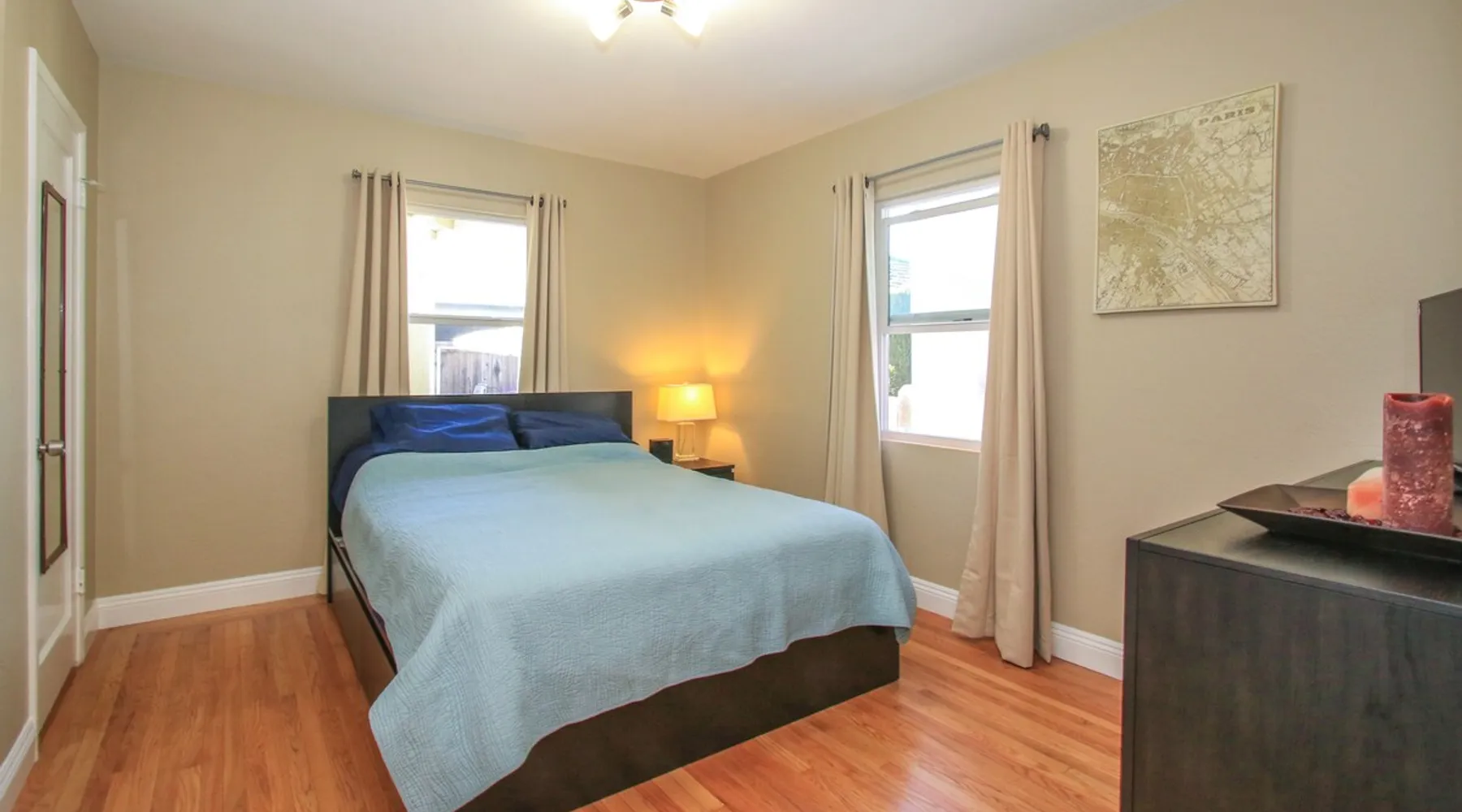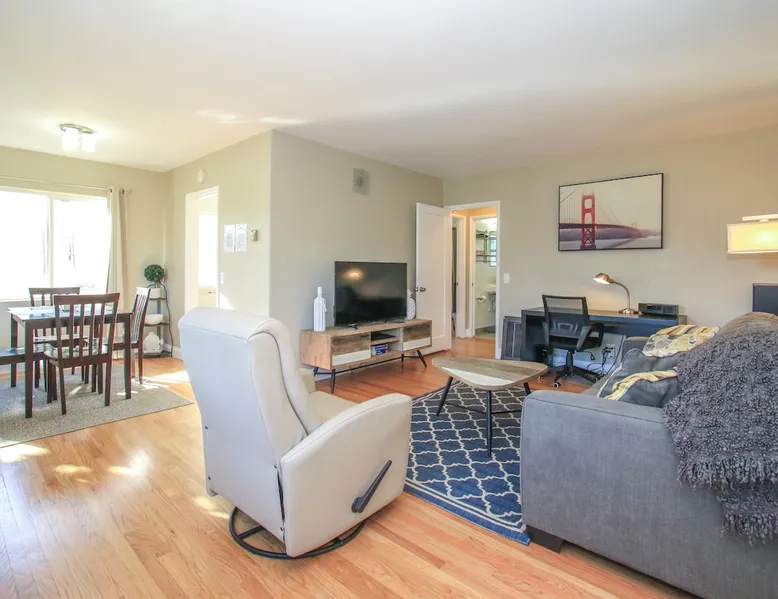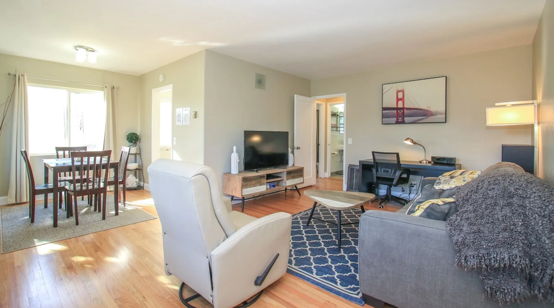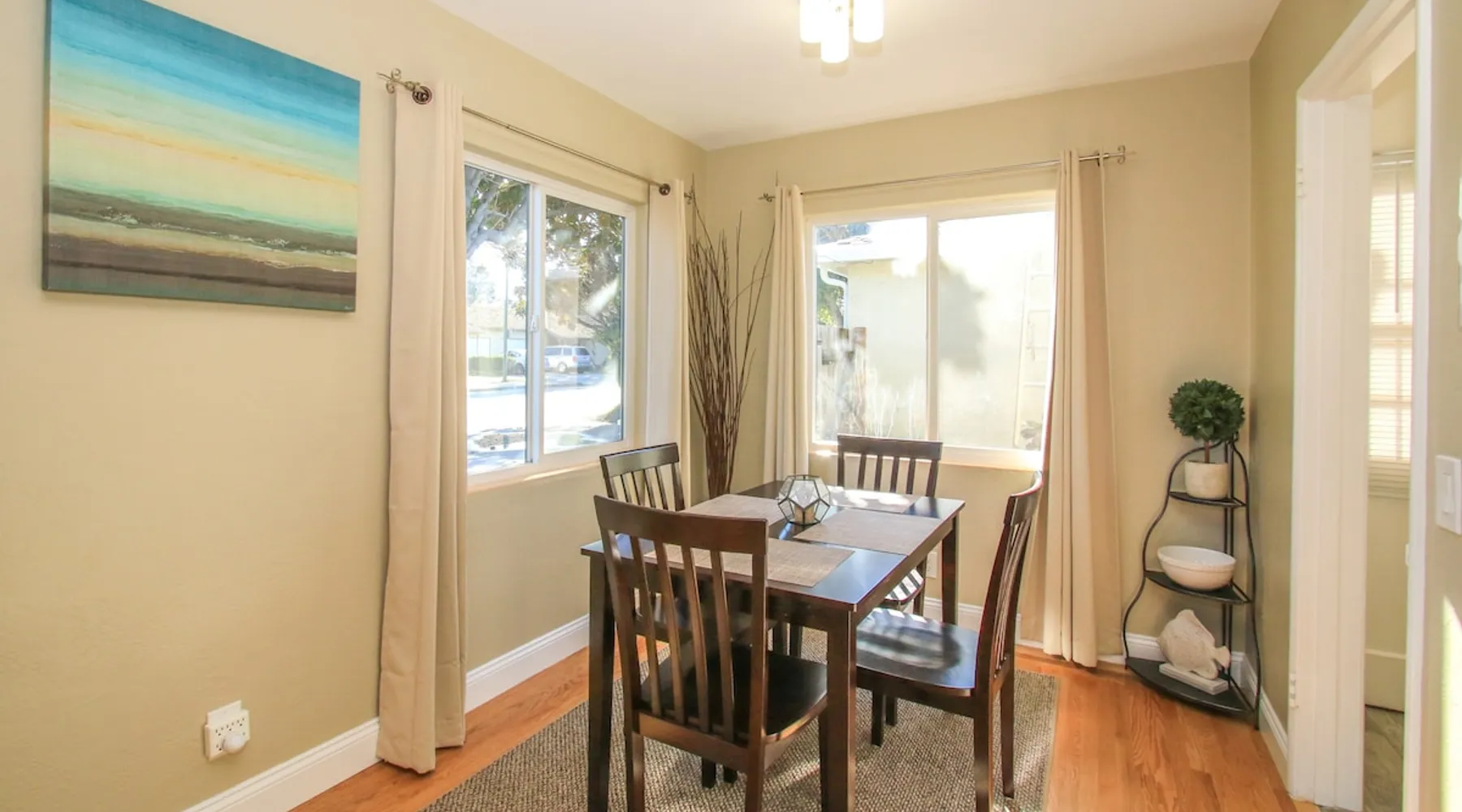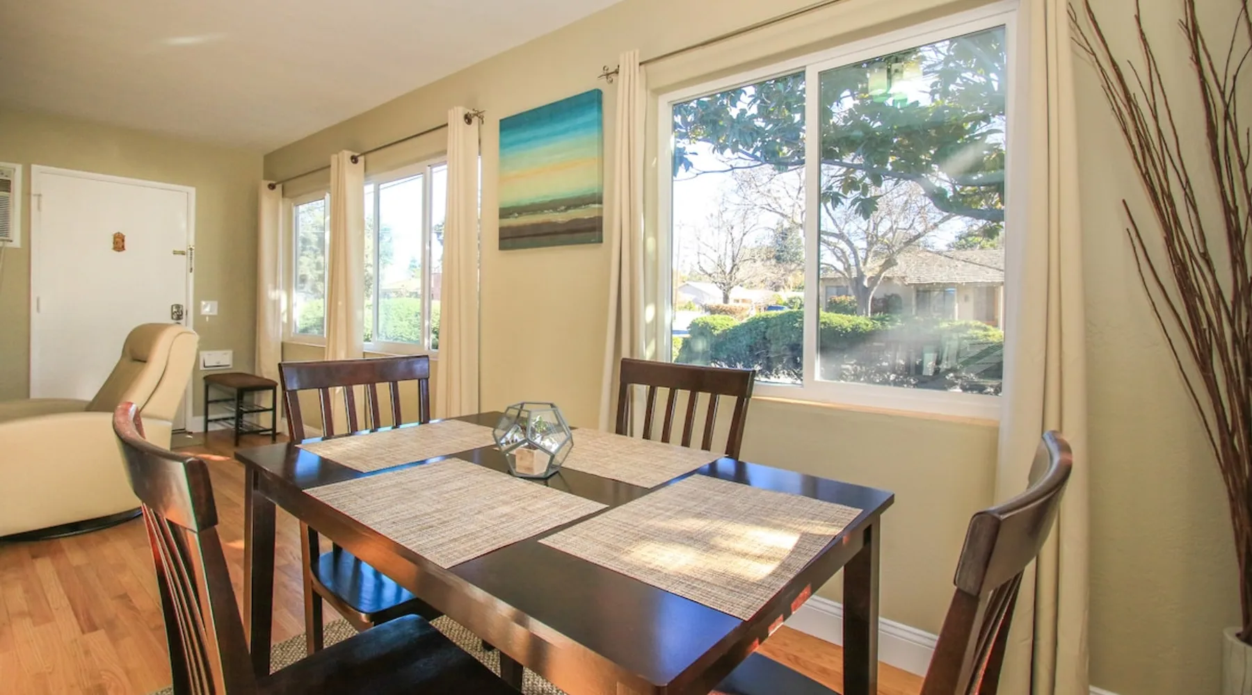 Your private coronavirus sanctuary! Apartment professionally deep cleaned between guests. Private 700 sq ft 1 BR 1 BA near downtown Mountain View & Caltrain. Private courtyard, shared backyard, 5000 sq ft lot, pets OK. Shared garage for storage only, no covered parking, free driveway/street parking. Queen sized bed + sofa bed, smart TV with Netflix, kitchen/office/dining area, fast & robust WiFi / ethernet, A/C, Washer & Dryer. The space Please NOTE: I have Airbnb dynamic pricing on - the price fluctuates day to day like a hotel. Ignore the price you see when dates are not selected - that price is NOT a base price. To see the actual price for your stay, please select the dates that you want to stay. The calendar is always current: only available dates will be selectable. All long term discounts will be automatically applied. ALSO NOTE: This is 1/2 of a duplex, so this apartment shares a common wall with the other side of the duplex. Quiet hours are between 10pm and 8am and will be enforced. This apartment is good for quieter guests only. * Tired of the Silicon Valley commute? Want to save gas? * Want something more private than an apartment complex or hotel? Fully renovated Duplex near Castro Street in downtown Mountain View – 1 BR/1BA available!!! - Modern, private, and secure residence in an awesome, very friendly neighborhood - Close to Caltrain; easy access to major shopping centers, movie theaters, restaurants, nightlife, freeways, schools & hi-tech companies Details: - 700 sq ft 1 BR 1 BA unit with granite counter tops, hardwood floors, dual paned windows, thermal blackout curtains, plush turkish towels; initial supplies provided - 1 queen sized memory foam bed, 1 sofa bed with queen sized pullout mattress, 50" Smart TV with Netflix & BluRay player, lazy boy recliner, gas furnace, Air Conditioning, gas range/oven, washer & dryer in garage (shared with other side of duplex) - Free, fast, stable WiFi and backup internet with two internet providers: Xfinity 100 Mbps down / 10 Mbps up and Sonic 50 Mbps down / 50 Mbps up; wired ethernet connection also available - Fully stocked kitchen but no dishwasher, no sink garbage disposal, you provide your own food & drinks - Private courtyard, shared backyard, spacious front yard & charming private enclosed back yard for pets, 5000 square foot lot - Private 2 car garage (shared) for that extra storage space; no covered parking, free driveway / street parking Guest access - All tenants will be provided a temporary door access code to the front door for the length of their stay Other things to note - No loud music or noises during sleeping hours: 10 pm - 8am. Be considerate of your neighbors. If the neighbor is noisy please message me using the Airbnb app and I'll get them to quiet down. - Duplex is not a good fit for guests with infants - Other side of the duplex may have guests with pets. - No pets allowed on the furniture; a gray Coolaroo Elevated pet bed will be provided and can be found in the garage - No smoking - No large events or parties - Guests responsible for keeping the apartment clean during their stay - No flushing diapers, etc. down the toilets - Netflix, youtube, apps only on the Smart TV; no cable or regular channels available - A basic Pack 'n Play baby crib can be found in the garage - Driveway has a steep drop off and is not good for lowered cars - If your stay includes a Wednesday night, move the outside garbage / recycling bins out onto the street on Wednesday nights. They can be moved back in from the street on Friday or after. - Guests are responsible for making sure the recycling is sorted correctly in the outside recycling bin. - If there is something not to your liking during your stay, please message me during your stay so I can address the problem before leaving feedback in a review. - Please download the Airbnb app on your phone so that you can refer to the door code & instructions in our message history and so that we can communicate better during your stay.