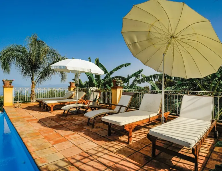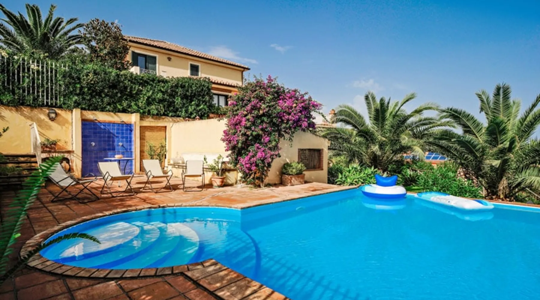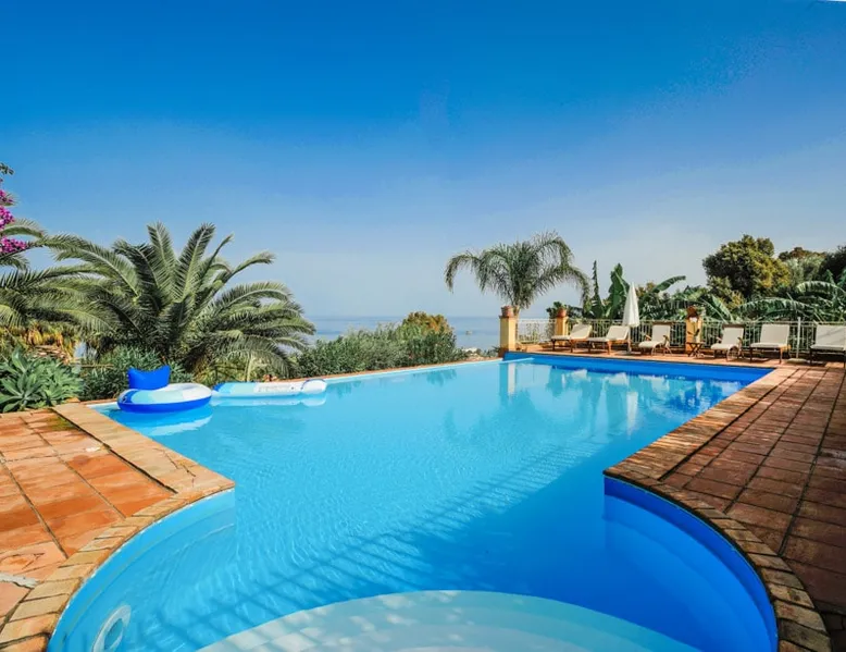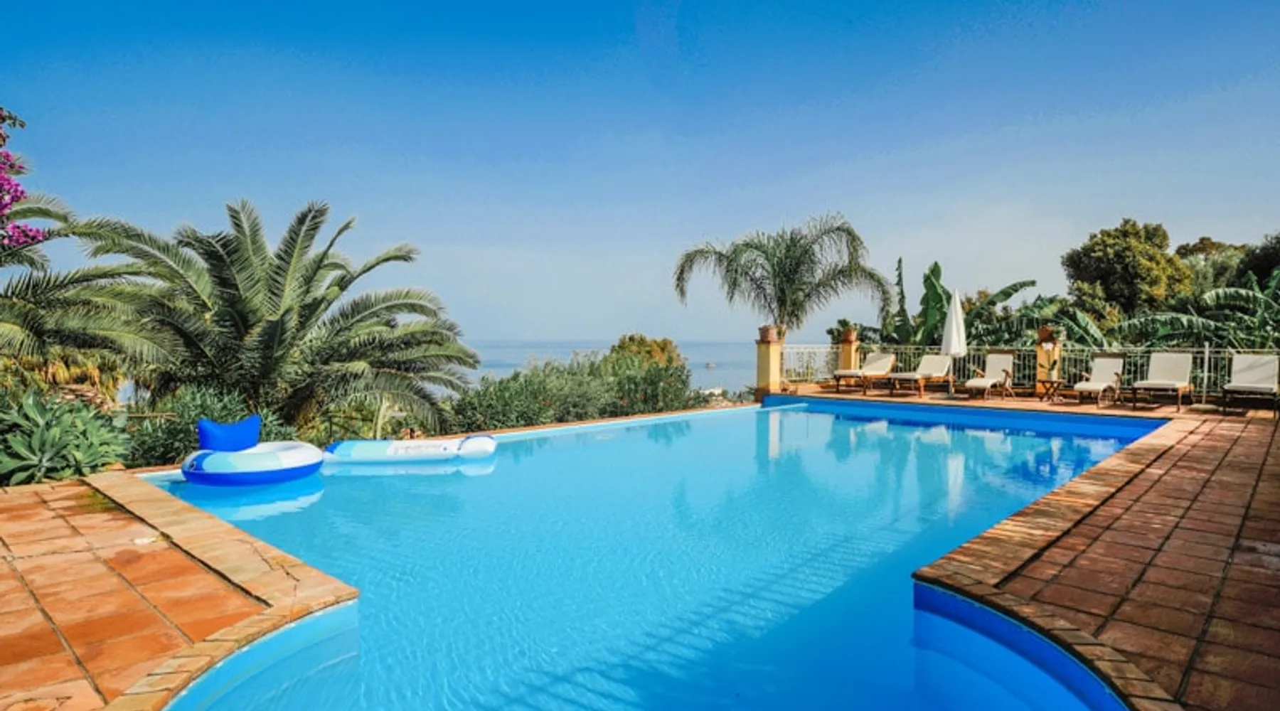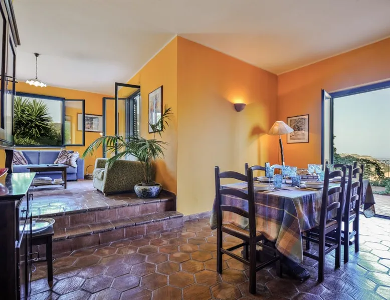 Wonderful villa with swimming pool and sea view for 8 people in bi-familiar complex, situated in a quiet, relaxing area only 5 minutes away by car from the nearest beach The space Villa Fontanelle is a villa with swimming pool situated in a bi-familiar complex. The house, which is 150 s.m., is situated in a very calm place, 2 km far from the sea and it enjoys a beautiful view on the Aeolian Islands. The house can host up to 8 people and it structured on 2 floors: GROUND FLOOR: a kitchen, a big living/dining-room with sofa-bed for 2 guests, 1 bathroom. FIRST FLOOR: 3 double bedrooms, 2 with double beds and 1 with 2 single beds, all with air conditioning, and 1 bathroom. The house is surrounded by a garden and has a terrace with an outdoor table so that you can enjoy your meals outside. From the terrace you will enjoy a breathtaking view over the sea and the Aeolian Islands and from the swimming pool it is even better: you'll feel like you can "touch the sea"! Guest access IMPORTANT: The owner lives on the other side of the bi-familiar house, so the swimming pool is going to be shared. The side that we rent has independent entrance and garden, so don't be concerned about your privacy! Pool will be open from May to October. Other things to note One of the several highlights of the house is its position: Villa Fontanelle is in a perfect spot for those who want to discover the best Sicily has to offer! Having a car is crucial both for going around Patti and for visiting Sicily Air conditioning is available both at the ground floor and first floor. Registration Details IT083066C2UXVCCPDG