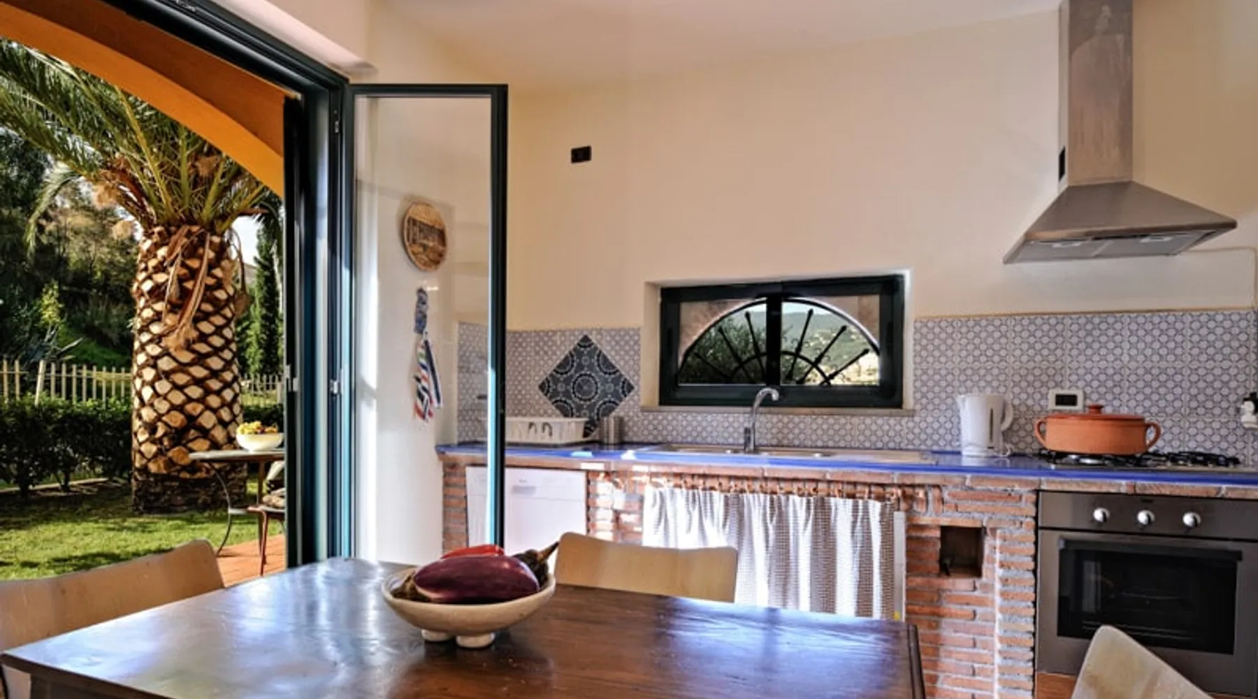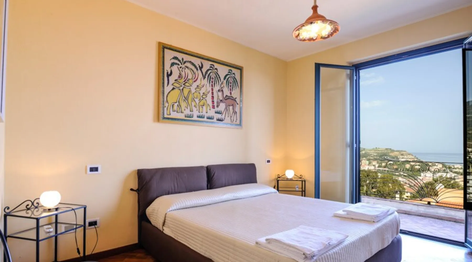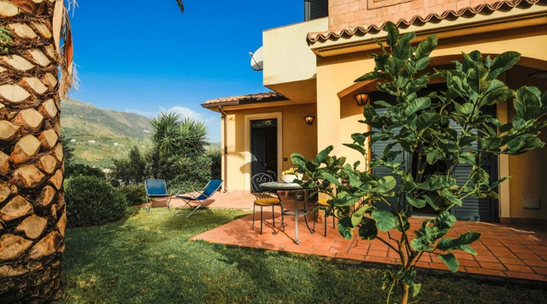Wonderful villa with swimming pool and sea view for 8 people in bi-familiar complex, situated in a quiet, relaxing area only 5 minutes away by car from the nearest beach The space Villa Fontanelle is a villa with swimming pool situated in a bi-familiar complex. The house, which is 150 s.m., is situated in a very calm place, 2 km far from the sea and it enjoys a beautiful view on the Aeolian Islands. The house can host up to 8 people and it structured on 2 floors: GROUND FLOOR: a kitchen, a big living/dining-room with sofa-bed for 2 guests, 1 bathroom. FIRST FLOOR: 3 double bedrooms, 2 with double beds and 1 with 2 single beds, all with air conditioning, and 1 bathroom. The house is surrounded by a garden and has a terrace with an outdoor table so that you can enjoy your meals outside. From the terrace you will enjoy a breathtaking view over the sea and the Aeolian Islands and from the swimming pool it is even better: you'll feel like you can "touch the sea"! Guest access IMPORTANT: The owner lives on the other side of the bi-familiar house, so the swimming pool is going to be shared. The side that we rent has independent entrance and garden, so don't be concerned about your privacy! Pool will be open from May to October. Other things to note One of the several highlights of the house is its position: Villa Fontanelle is in a perfect spot for those who want to discover the best Sicily has to offer! Having a car is crucial both for going around Patti and for visiting Sicily Air conditioning is available both at the ground floor and first floor. Registration Details IT083066C2UXVCCPDG