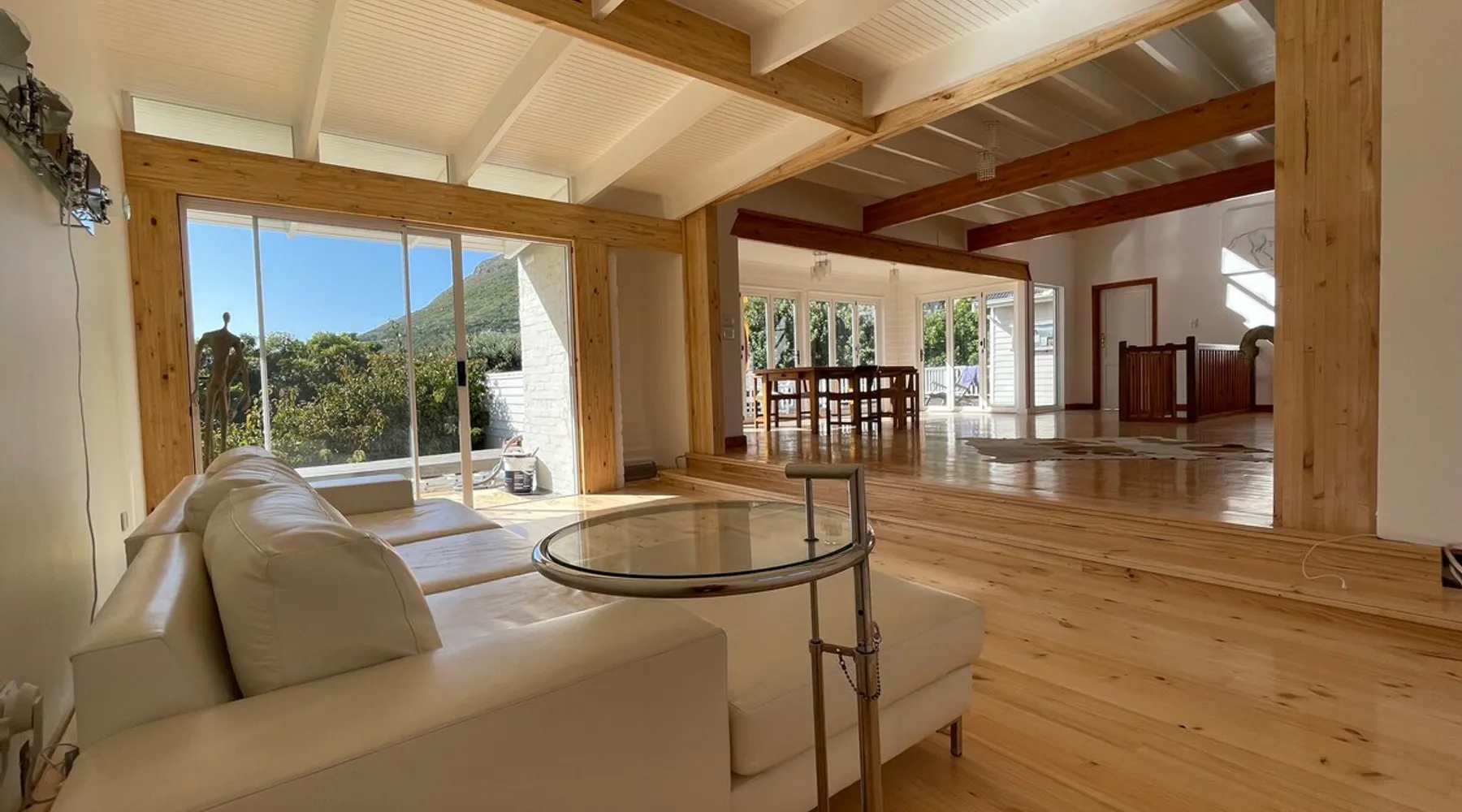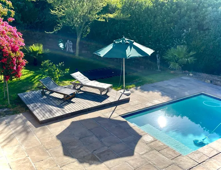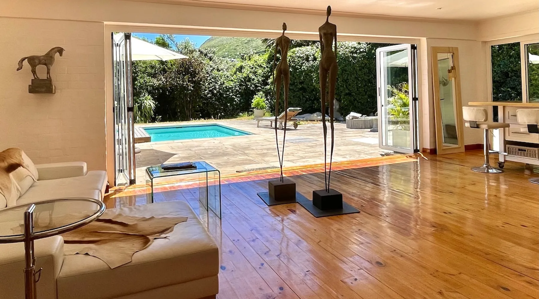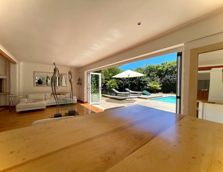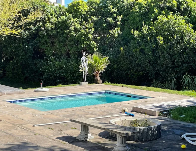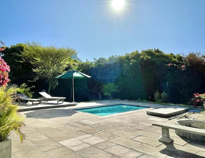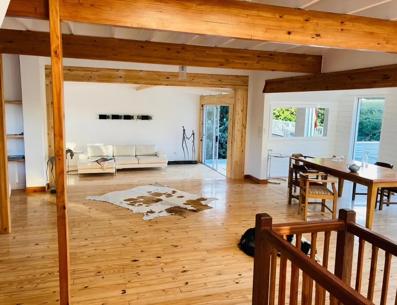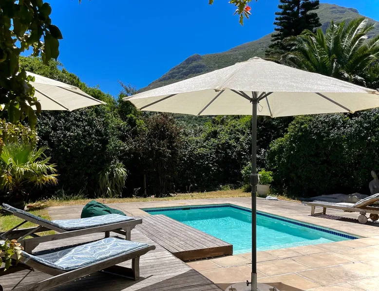 The house is located on foot 2 minutes to the dunes and 8 minutes through dunes and across the beach to the sea. The Indian Ocean is about 10 minutes by car. About 35 minutes by car from Cape Town. This is a two shared house. The owners live in the second part of the house. The house includes 2 double bedrooms and private bathroom and 2 living room, garden with swimming pool. There is also a space with a pull-out couch with a mini bath and toilet. The space About 35 minutes by car from Cape Town. It is a semi-detached house and in this listing it is the larger part of the semi-detached house with 200 m2. The house is rented for 4-6 people. In another listing you will also find the WHOLE HOUSE for 8-10 people to rent. One bedroom is located on a gallery. Open very generous house of an artist. The house has a solar system and always electricity. Guest access The part of the semi-detached house includes two living rooms (one living room consists of 2 rooms that merge into each other) with an open kitchen, three bedrooms, a storage room and a laundry room. The house is very bright and generous. The garden is at your disposal at your disposal, as well as the ping pong table and the barbecue. Other things to note The dunes are 3 minutes on foot. Nearest golf course is 5 km away. Noordhoek Village with shops and restaurants is 1.2 km away. Cape Town is about a 35-minute walk away.