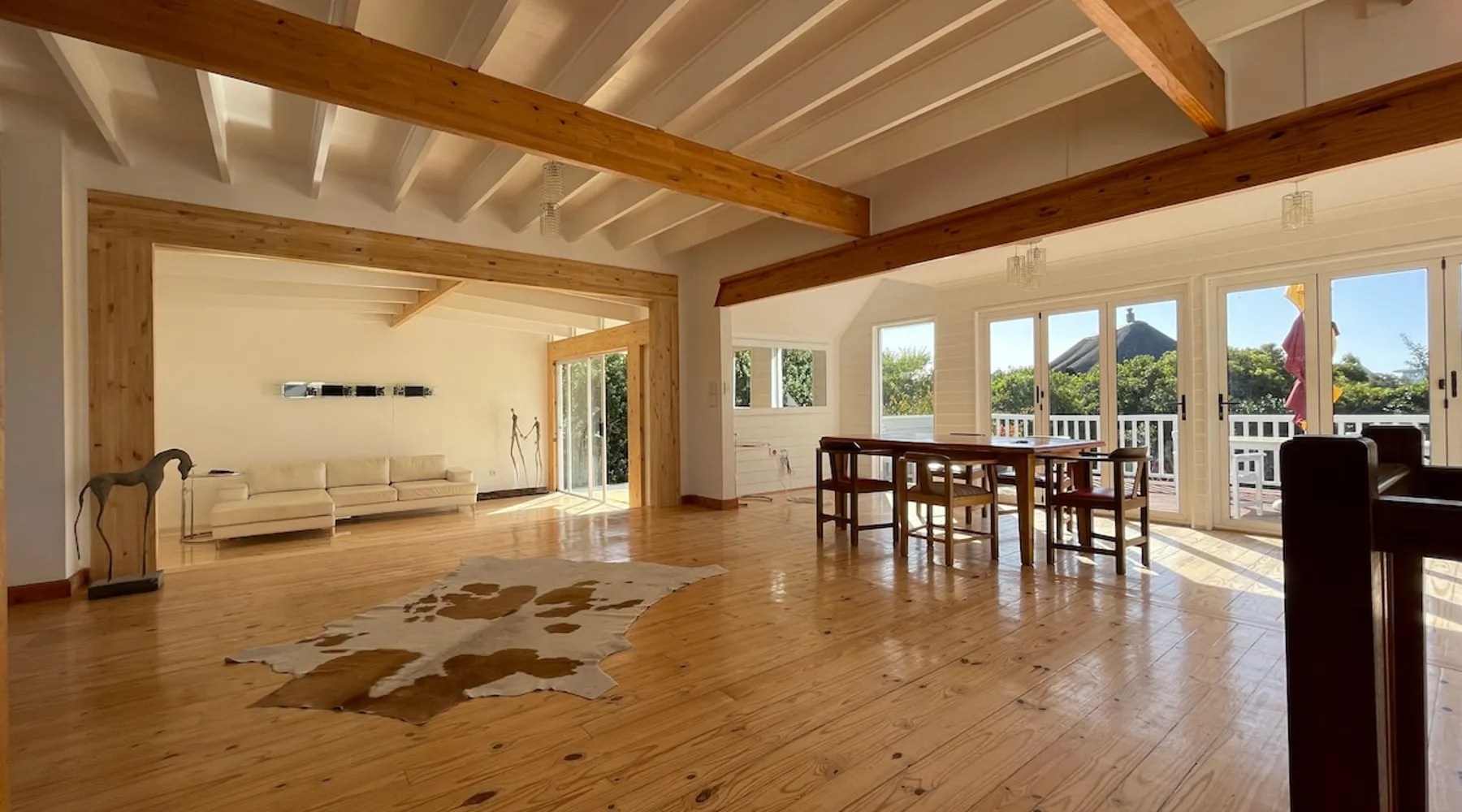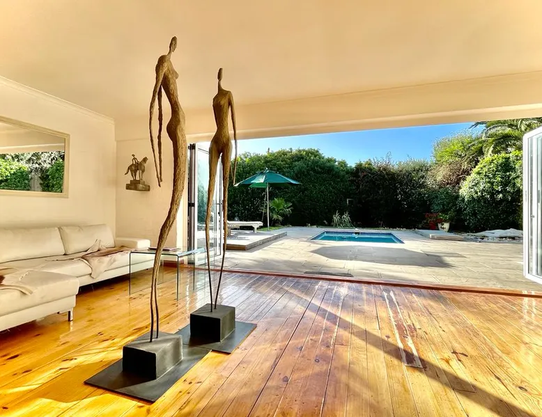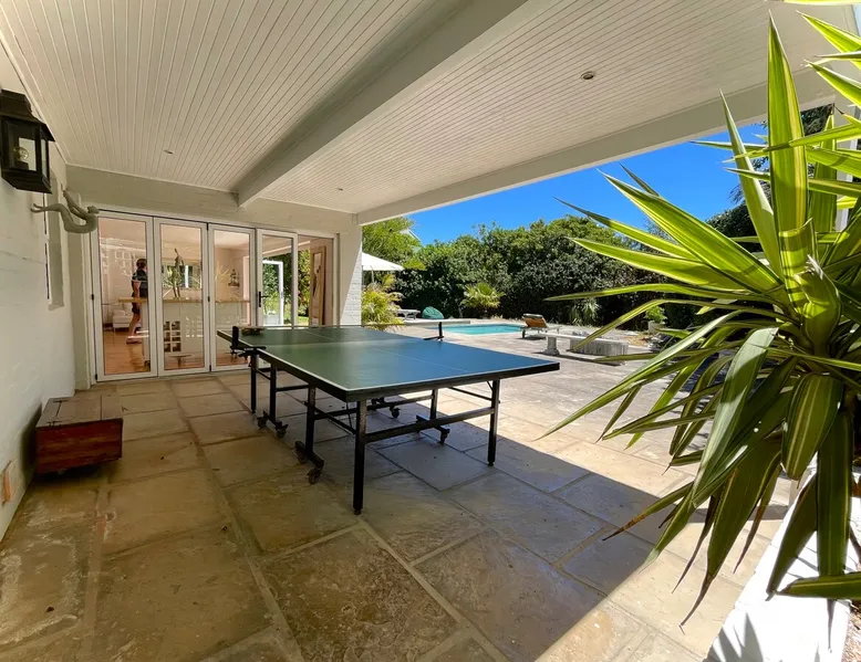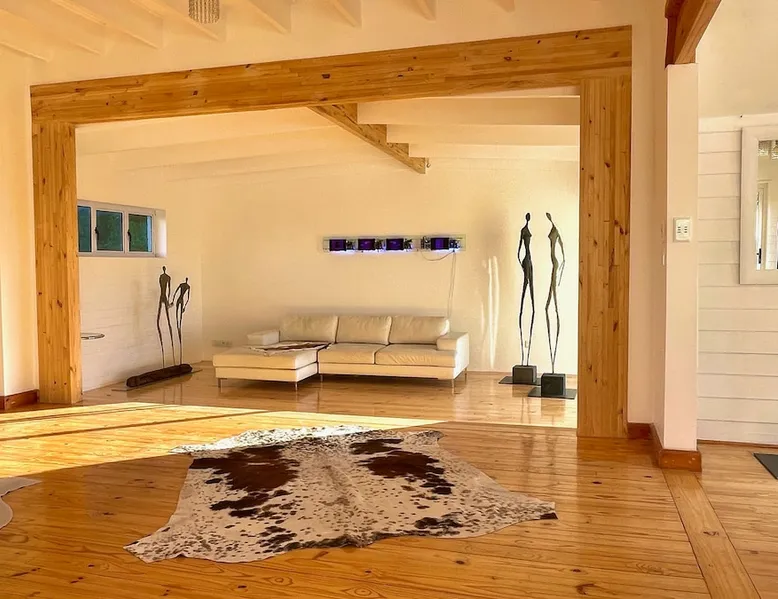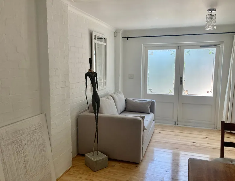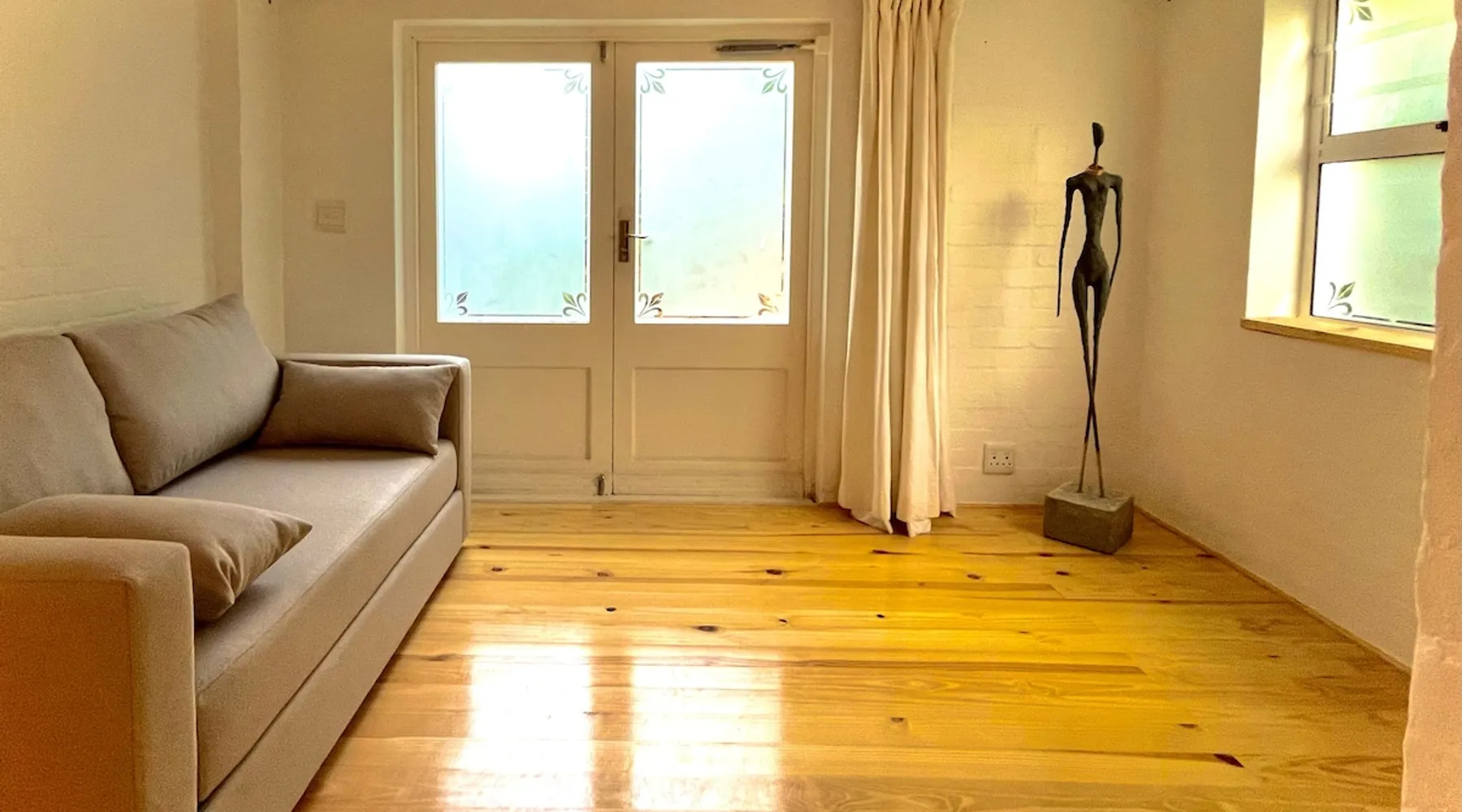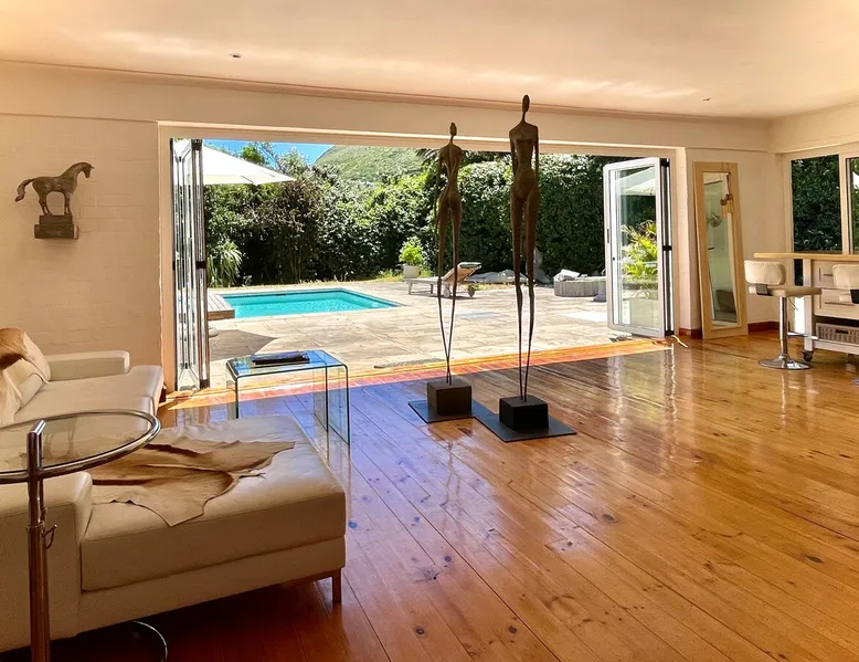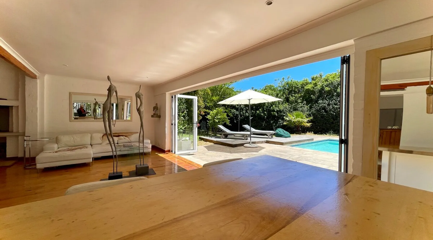 The house is located on foot 2 minutes to the dunes and 8 minutes through dunes and across the beach to the sea. The Indian Ocean is about 10 minutes by car. About 35 minutes by car from Cape Town. This is a two shared house. The owners live in the second part of the house. The house includes 2 double bedrooms and private bathroom and 2 living room, garden with swimming pool. There is also a space with a pull-out couch with a mini bath and toilet. The space About 35 minutes by car from Cape Town. It is a semi-detached house and in this listing it is the larger part of the semi-detached house with 200 m2. The house is rented for 4-6 people. In another listing you will also find the WHOLE HOUSE for 8-10 people to rent. One bedroom is located on a gallery. Open very generous house of an artist. The house has a solar system and always electricity. Guest access The part of the semi-detached house includes two living rooms (one living room consists of 2 rooms that merge into each other) with an open kitchen, three bedrooms, a storage room and a laundry room. The house is very bright and generous. The garden is at your disposal at your disposal, as well as the ping pong table and the barbecue. Other things to note The dunes are 3 minutes on foot. Nearest golf course is 5 km away. Noordhoek Village with shops and restaurants is 1.2 km away. Cape Town is about a 35-minute walk away.