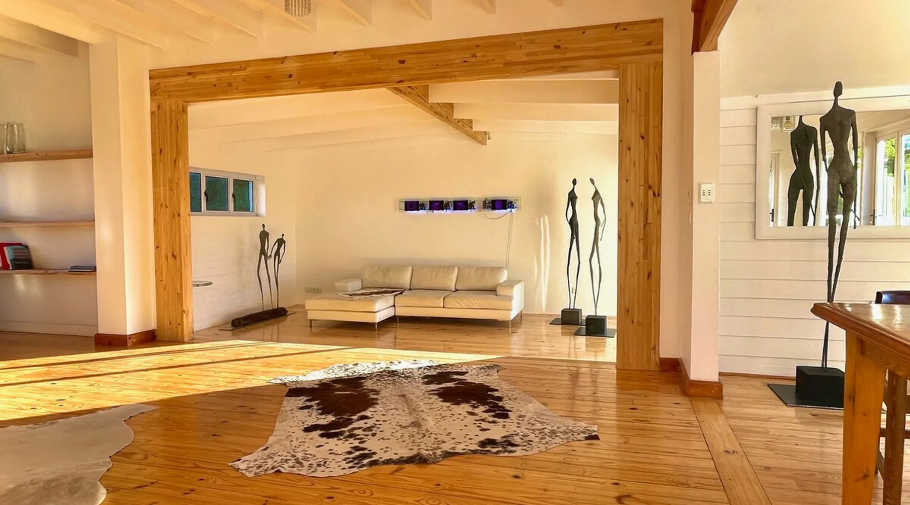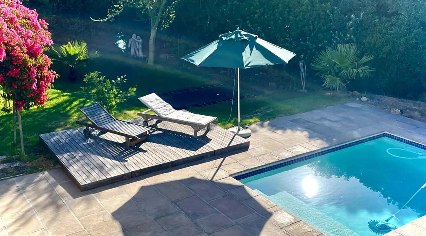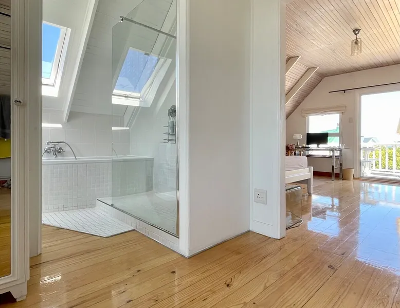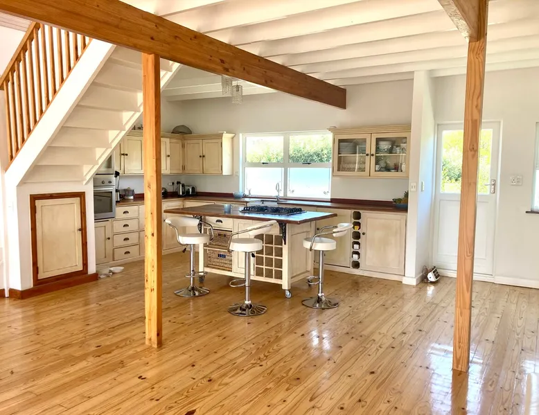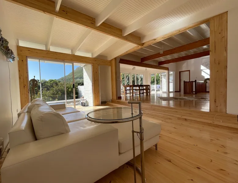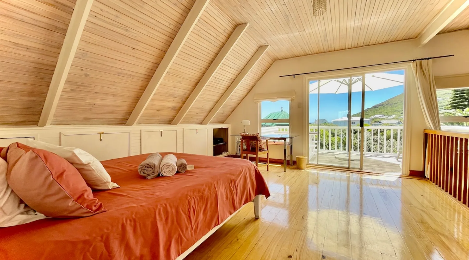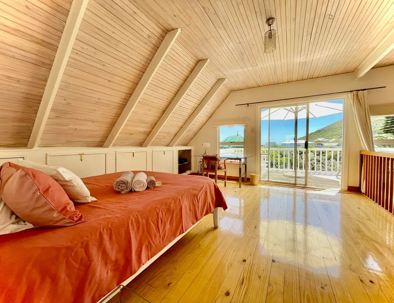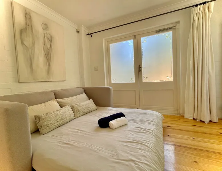 The house is located on foot 2 minutes to the dunes and 8 minutes through dunes and across the beach to the sea. The Indian Ocean is about 10 minutes by car. About 35 minutes by car from Cape Town. This is a two shared house. The owners live in the second part of the house. The house includes 2 double bedrooms and private bathroom and 2 living room, garden with swimming pool. There is also a space with a pull-out couch with a mini bath and toilet. The space About 35 minutes by car from Cape Town. It is a semi-detached house and in this listing it is the larger part of the semi-detached house with 200 m2. The house is rented for 4-6 people. In another listing you will also find the WHOLE HOUSE for 8-10 people to rent. One bedroom is located on a gallery. Open very generous house of an artist. The house has a solar system and always electricity. Guest access The part of the semi-detached house includes two living rooms (one living room consists of 2 rooms that merge into each other) with an open kitchen, three bedrooms, a storage room and a laundry room. The house is very bright and generous. The garden is at your disposal at your disposal, as well as the ping pong table and the barbecue. Other things to note The dunes are 3 minutes on foot. Nearest golf course is 5 km away. Noordhoek Village with shops and restaurants is 1.2 km away. Cape Town is about a 35-minute walk away.