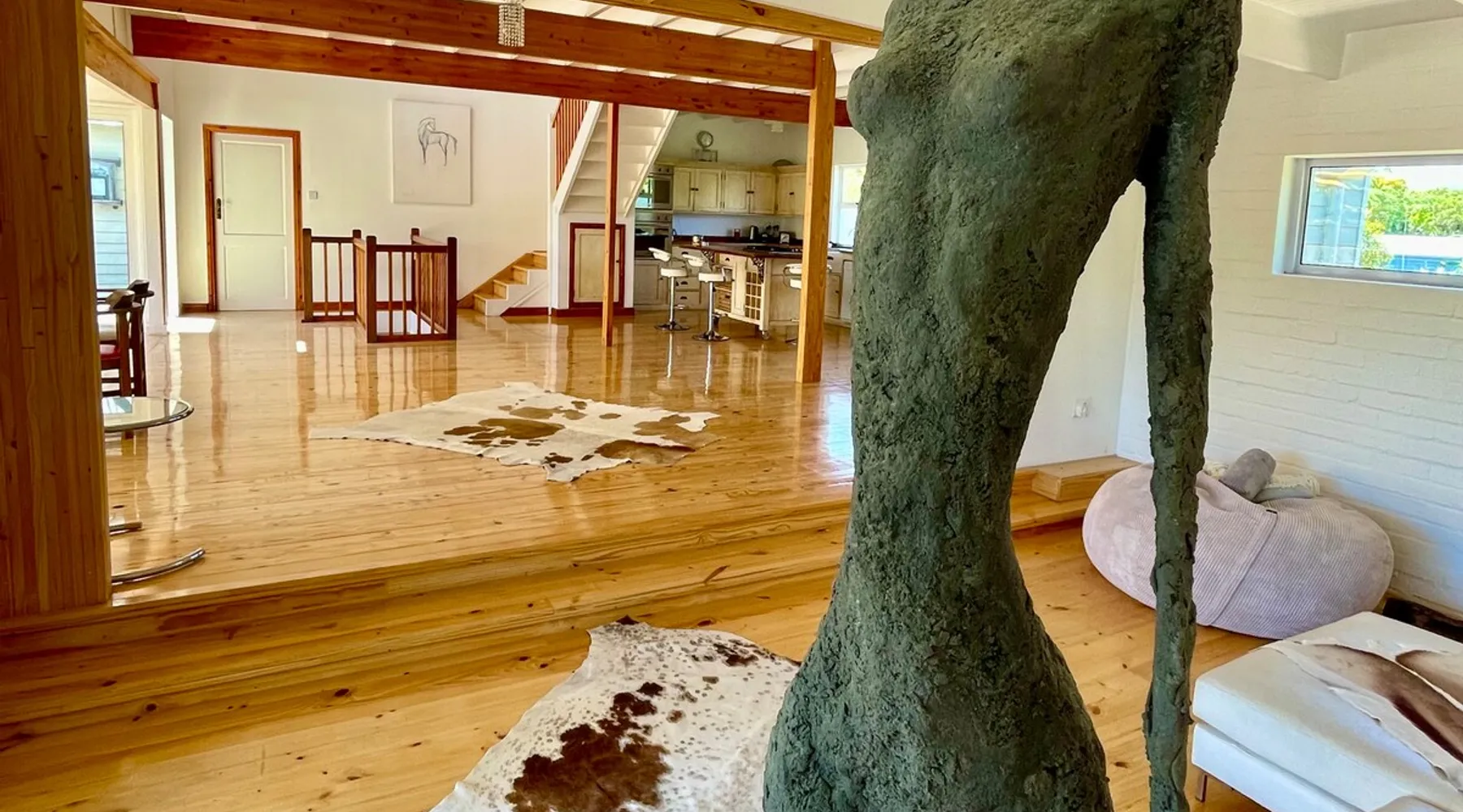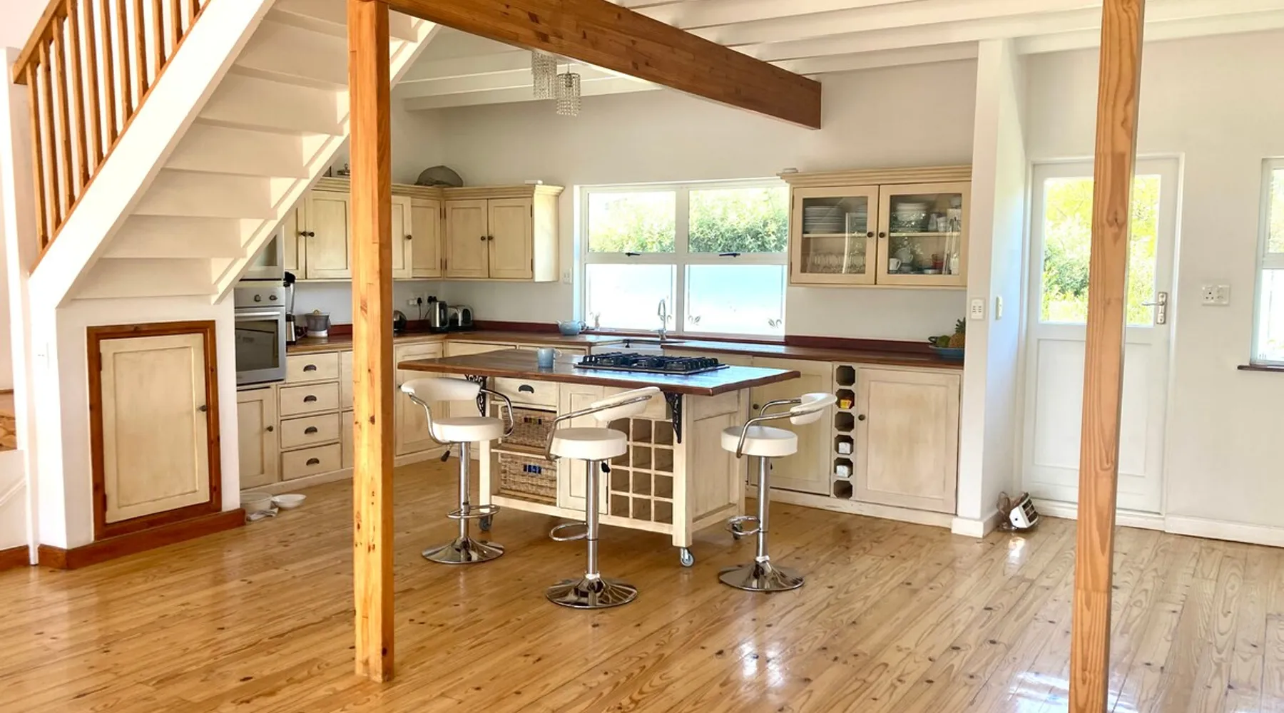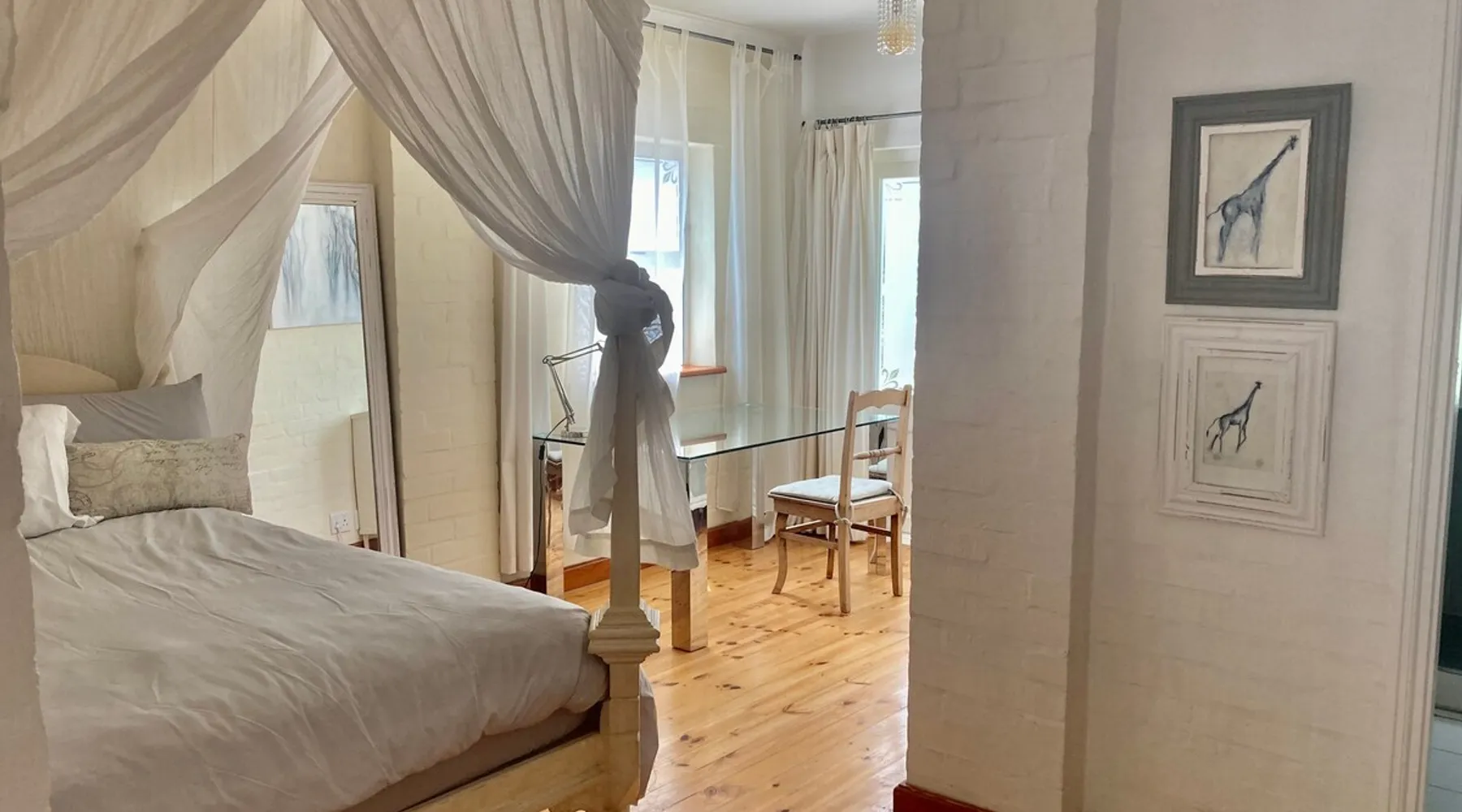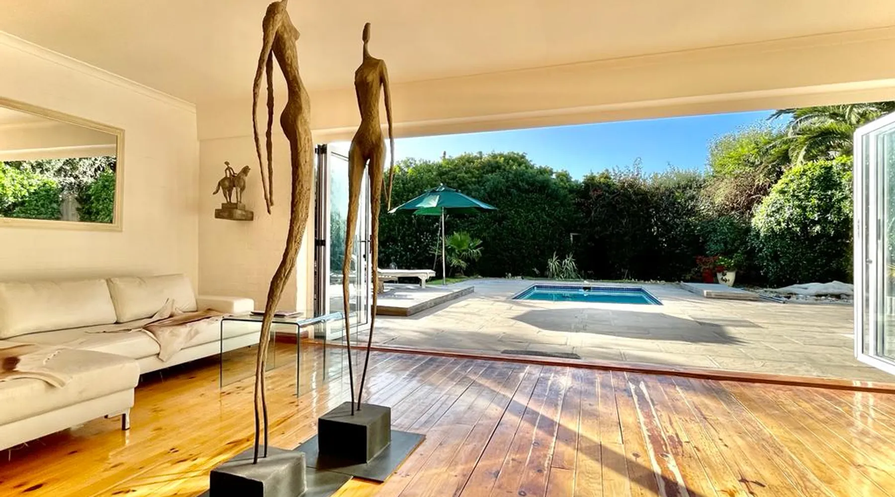 The house is located on foot 2 minutes to the dunes and 8 minutes through dunes and across the beach to the sea. The Indian Ocean is about 10 minutes by car. About 35 minutes by car from Cape Town. This is a two shared house. The owners live in the second part of the house. The house includes 2 double bedrooms and private bathroom and 2 living room, garden with swimming pool. There is also a space with a pull-out couch with a mini bath and toilet. The space About 35 minutes by car from Cape Town. It is a semi-detached house and in this listing it is the larger part of the semi-detached house with 200 m2. The house is rented for 4-6 people. In another listing you will also find the WHOLE HOUSE for 8-10 people to rent. One bedroom is located on a gallery. Open very generous house of an artist. The house has a solar system and always electricity. Guest access The part of the semi-detached house includes two living rooms (one living room consists of 2 rooms that merge into each other) with an open kitchen, three bedrooms, a storage room and a laundry room. The house is very bright and generous. The garden is at your disposal at your disposal, as well as the ping pong table and the barbecue. Other things to note The dunes are 3 minutes on foot. Nearest golf course is 5 km away. Noordhoek Village with shops and restaurants is 1.2 km away. Cape Town is about a 35-minute walk away.