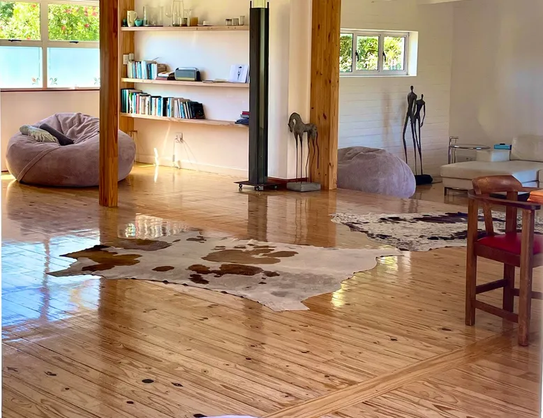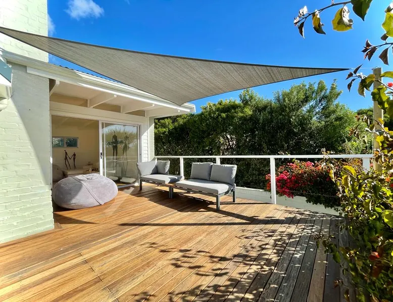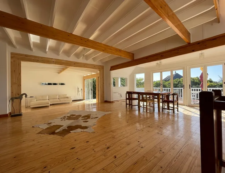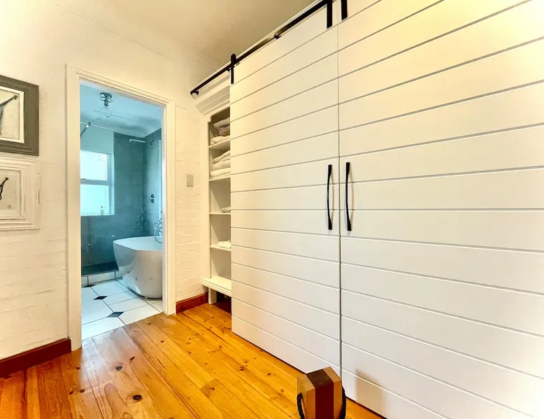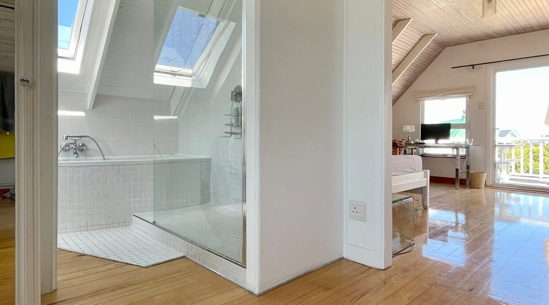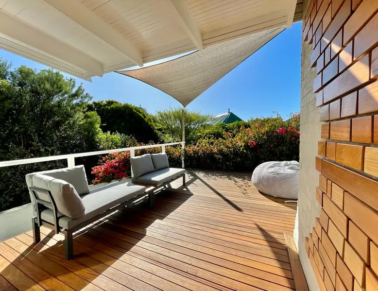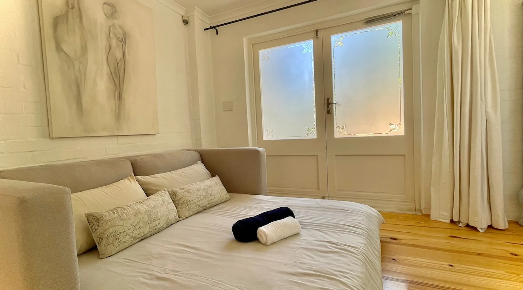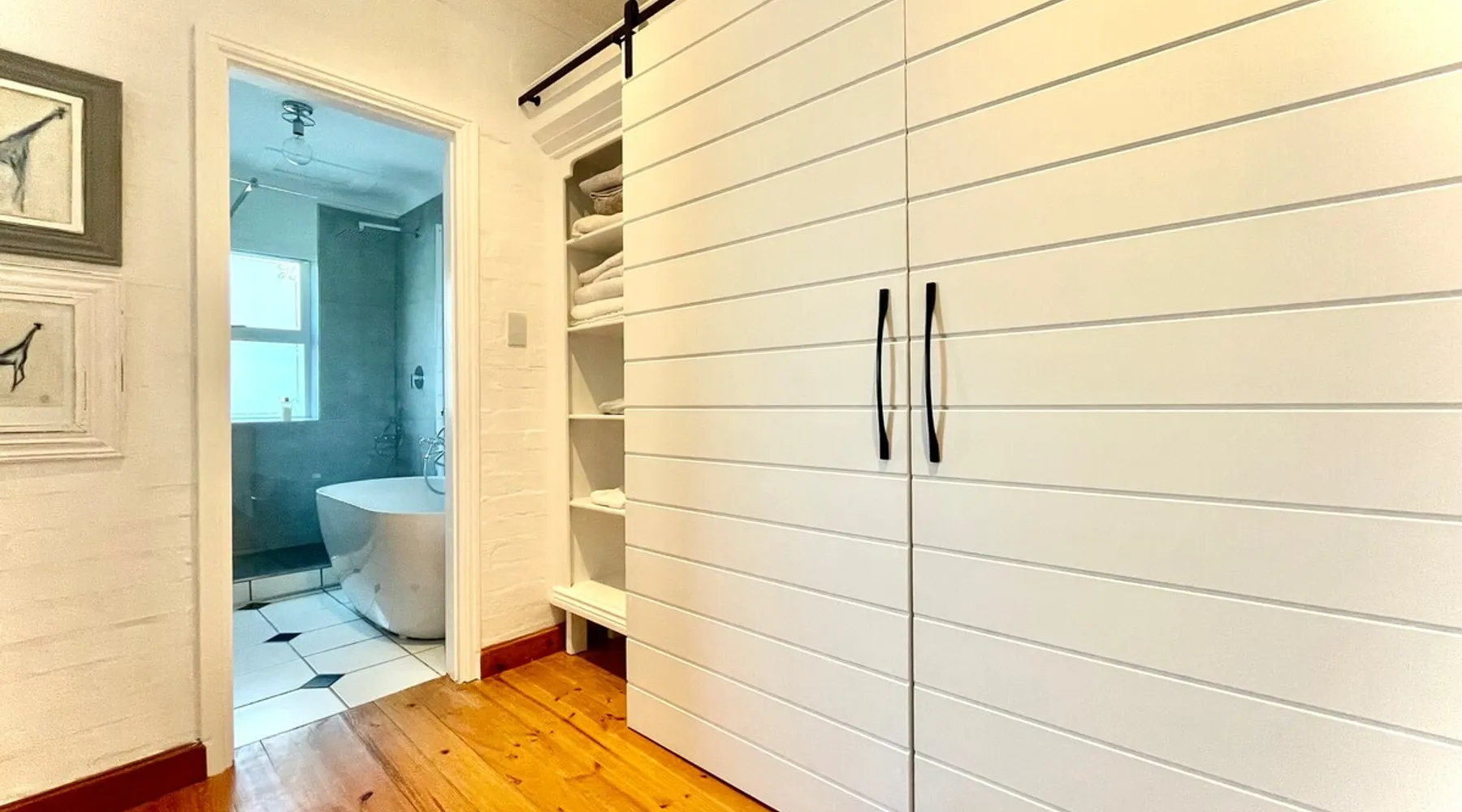 The house is located on foot 2 minutes to the dunes and 8 minutes through dunes and across the beach to the sea. The Indian Ocean is about 10 minutes by car. About 35 minutes by car from Cape Town. This is a two shared house. The owners live in the second part of the house. The house includes 2 double bedrooms and private bathroom and 2 living room, garden with swimming pool. There is also a space with a pull-out couch with a mini bath and toilet. The space About 35 minutes by car from Cape Town. It is a semi-detached house and in this listing it is the larger part of the semi-detached house with 200 m2. The house is rented for 4-6 people. In another listing you will also find the WHOLE HOUSE for 8-10 people to rent. One bedroom is located on a gallery. Open very generous house of an artist. The house has a solar system and always electricity. Guest access The part of the semi-detached house includes two living rooms (one living room consists of 2 rooms that merge into each other) with an open kitchen, three bedrooms, a storage room and a laundry room. The house is very bright and generous. The garden is at your disposal at your disposal, as well as the ping pong table and the barbecue. Other things to note The dunes are 3 minutes on foot. Nearest golf course is 5 km away. Noordhoek Village with shops and restaurants is 1.2 km away. Cape Town is about a 35-minute walk away.
