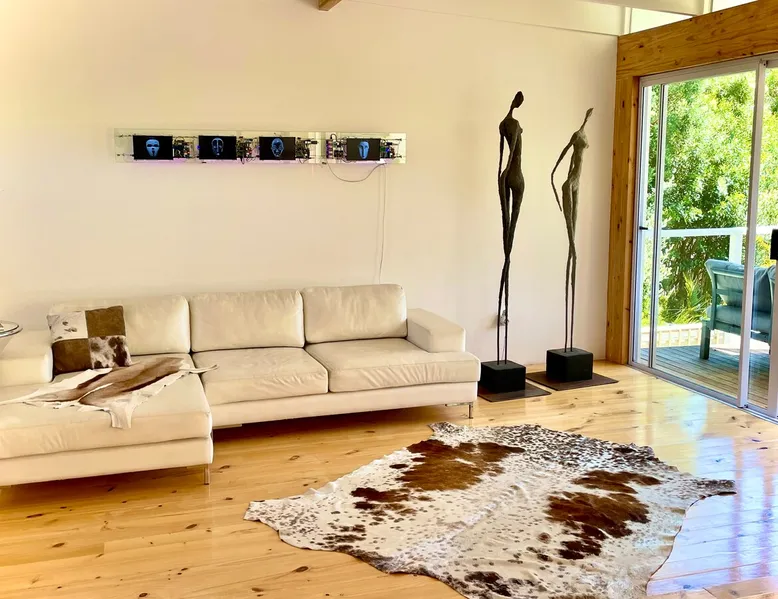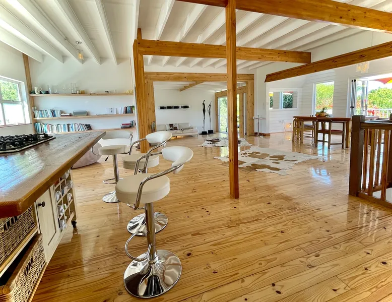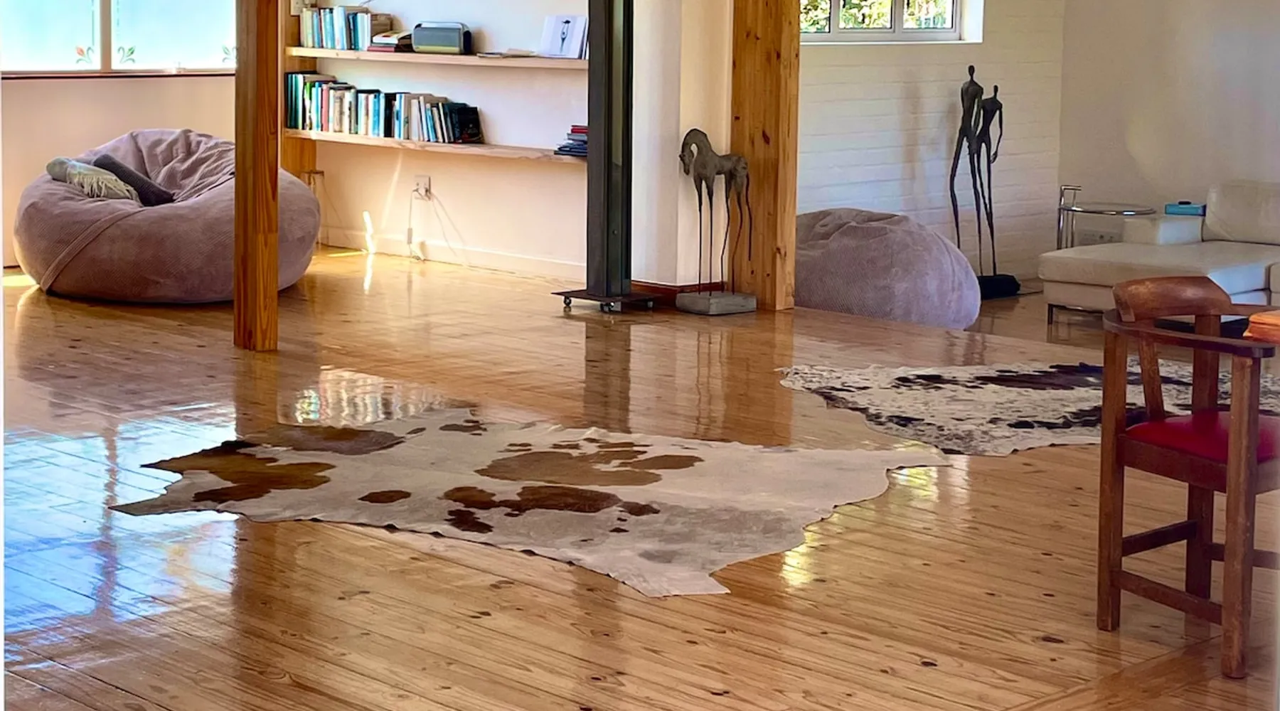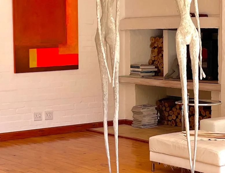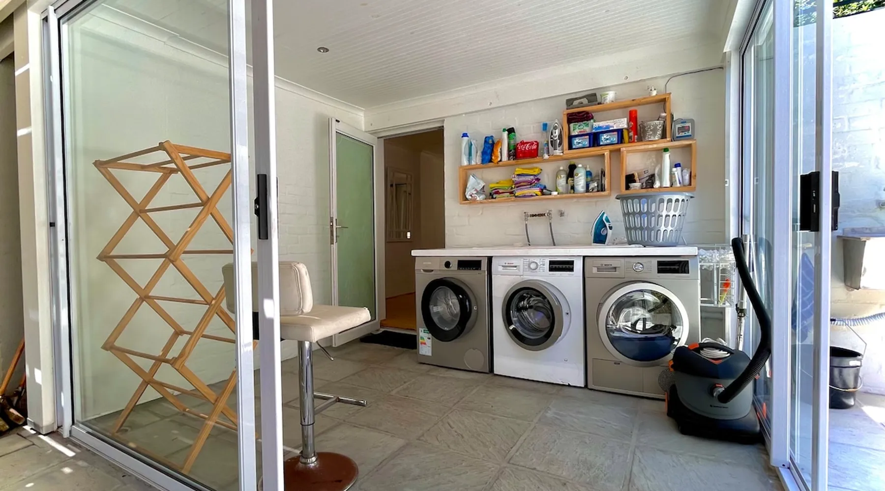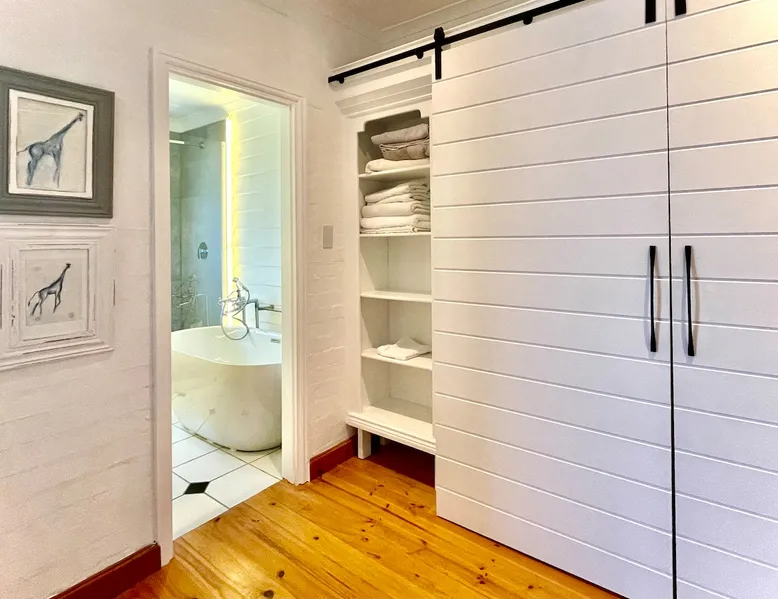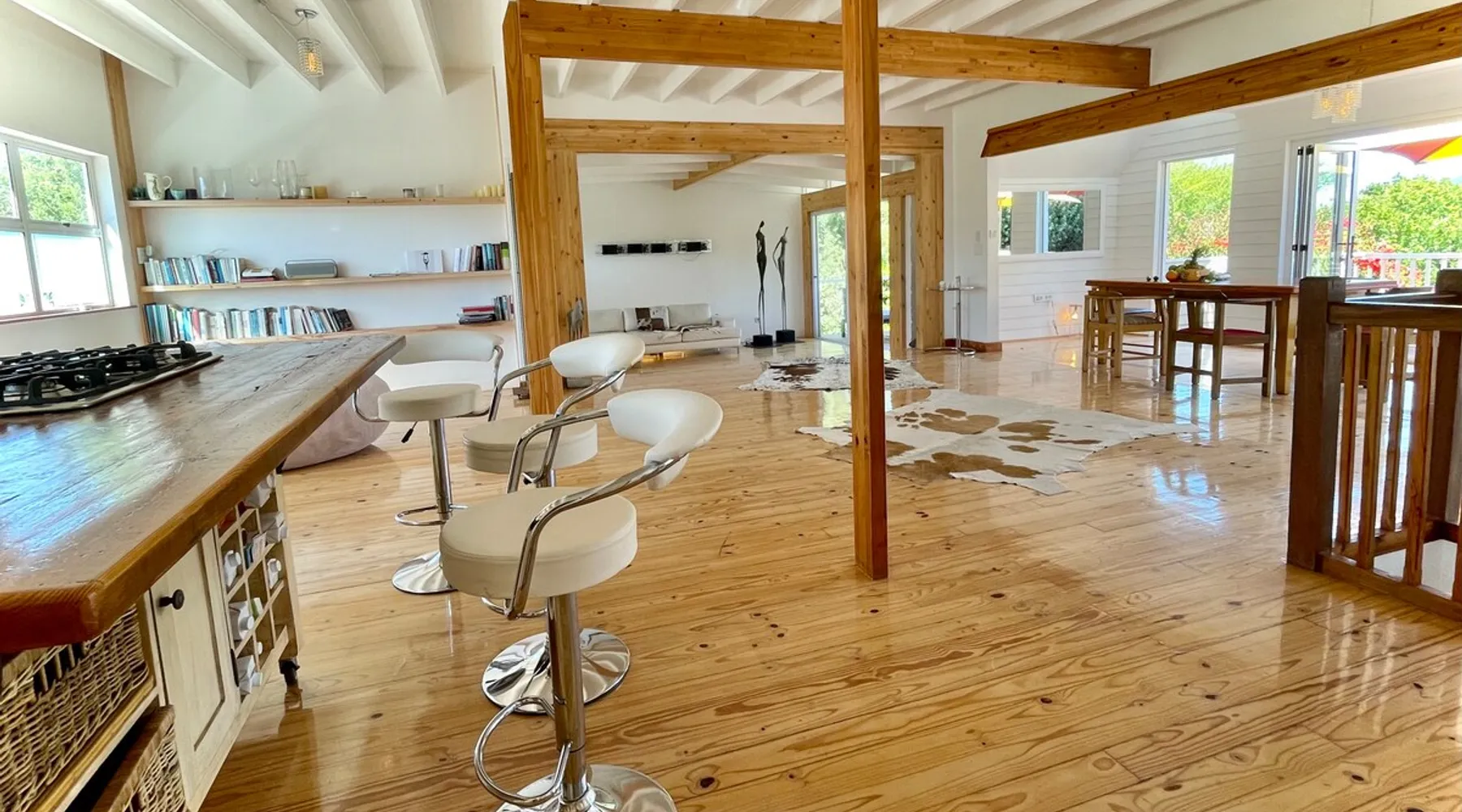 The house is located on foot 2 minutes to the dunes and 8 minutes through dunes and across the beach to the sea. The Indian Ocean is about 10 minutes by car. About 35 minutes by car from Cape Town. This is a two shared house. The owners live in the second part of the house. The house includes 2 double bedrooms and private bathroom and 2 living room, garden with swimming pool. There is also a space with a pull-out couch with a mini bath and toilet. The space About 35 minutes by car from Cape Town. It is a semi-detached house and in this listing it is the larger part of the semi-detached house with 200 m2. The house is rented for 4-6 people. In another listing you will also find the WHOLE HOUSE for 8-10 people to rent. One bedroom is located on a gallery. Open very generous house of an artist. The house has a solar system and always electricity. Guest access The part of the semi-detached house includes two living rooms (one living room consists of 2 rooms that merge into each other) with an open kitchen, three bedrooms, a storage room and a laundry room. The house is very bright and generous. The garden is at your disposal at your disposal, as well as the ping pong table and the barbecue. Other things to note The dunes are 3 minutes on foot. Nearest golf course is 5 km away. Noordhoek Village with shops and restaurants is 1.2 km away. Cape Town is about a 35-minute walk away.