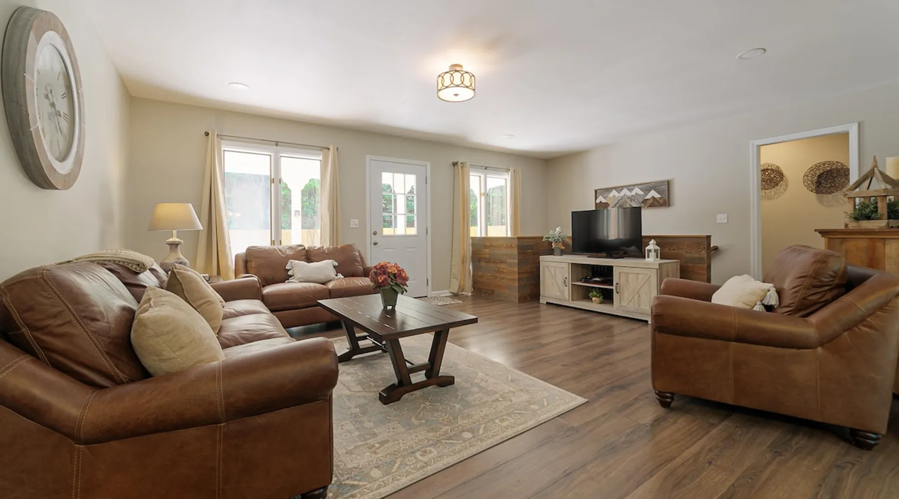 Escape to a secluded golf course retreat just moments from downtown Helen. This luxurious getaway offers modern amenities like Smart TVs and a fully-loaded kitchen, along with a spacious game room and multi-level decks for relaxation and entertainment. Experience tranquility and luxury at its finest in this haven, perfect for your next unforgettable getaway. Fully-loaded with Smart TVs, Game Room, Multi-Level Decks & More! The space Escape to the inviting comforts of Alpine Ridge, a spacious family retreat ideally situated on the picturesque 18th fairway of Innsbruck Golf Resort, just a stroll away from the rejuvenating Valhalla Spa. Nestled in the heart of downtown Helen, this haven offers convenience to all the area's attractions. Thoughtfully crafted with a multi-level floor plan, Alpine Ridge showcases a harmonious blend of modernity and comfort, boasting brand-new furnishings and appliances throughout. Indulge in the luxury of two distinct living areas, perfect for relaxation or lively gatherings. The expansive game room awaits with regulation-sized pool and poker tables, promising endless entertainment for all ages. Step out onto multiple decks and soak in the stunning views of Innsbruck's scenic golf course, where serenity meets the lush greens. Each bedroom is adorned with fresh linens and equipped with Smart TVs for streaming, ensuring ultimate relaxation and convenience during your stay. Whether you're seeking a peaceful mountain retreat or an adventure-filled getaway, Alpine Ridge provides the perfect home base for your North Georgia Mountains excursion. Experience the epitome of comfort and leisure at Alpine Ridge – your gateway to unforgettable memories awaits. Guest access Guest has access to the entirety of the property excluding the owner's closet. Guest also has access to the Innsbruck Community pool & pickleball court. Other things to note 25+ age requirement for lead guest. No exceptions. This property is not pet-friendly. No exceptions. Digital rental agreement will be required to sign and complete after property is booked. Trailers & motorcycles are not allowed within Innsbruck Golf Resort.