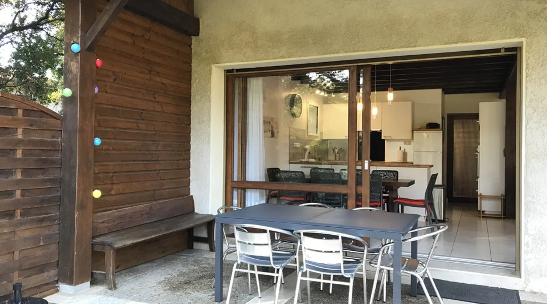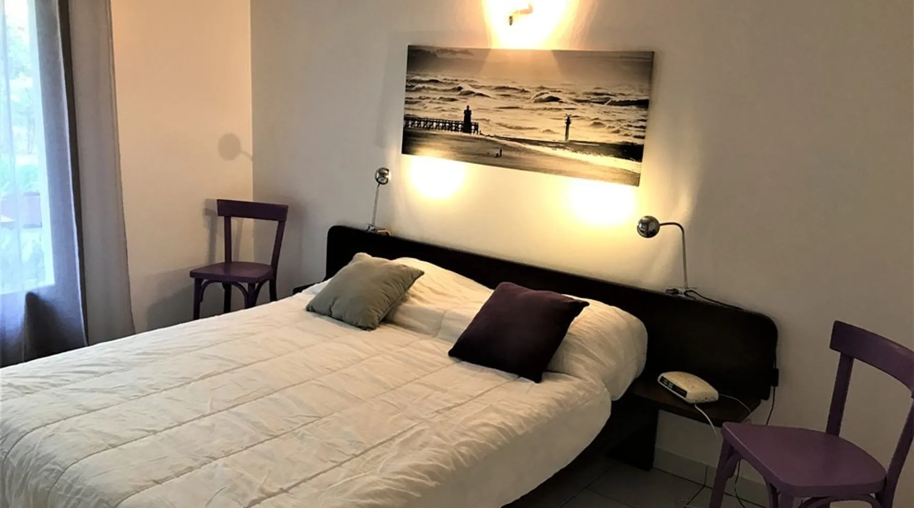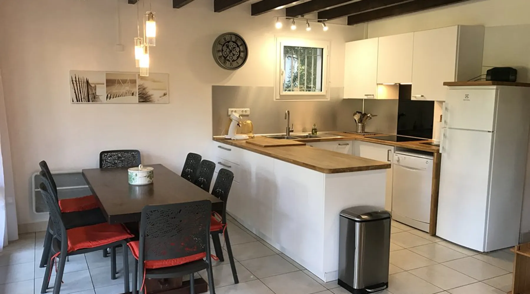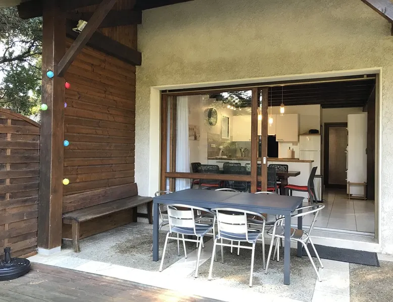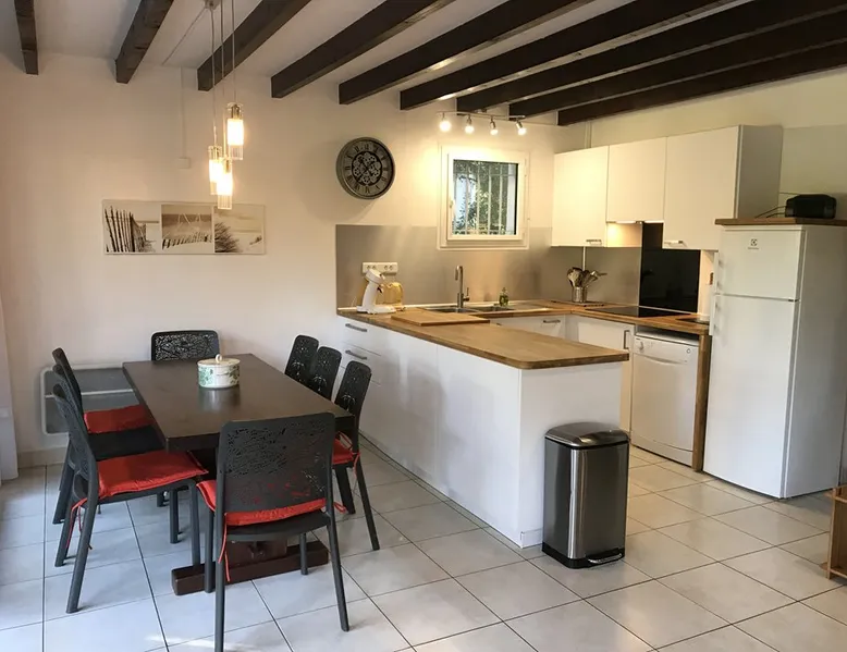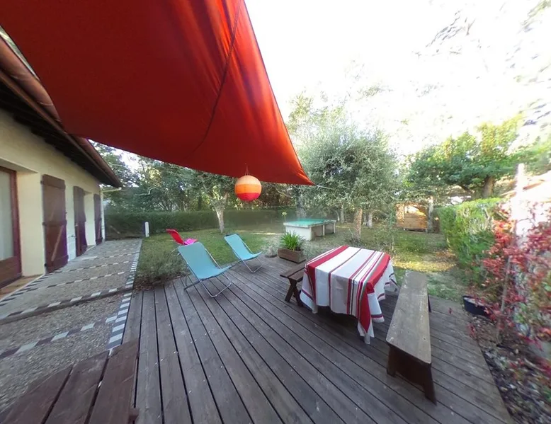 Discover this charming villa adjoining the garage, nestled on a wooded and enclosed plot of 500 m 2. Ideally located, it is about 15 minutes walk from the beach of Estagnots, just 700 m from the sea lake and close to the golf of Seignosse. In a peaceful setting, you can fully enjoy the outdoor areas, both front and back of the house, to share convivial moments around a meal or simply relax in complete serenity. The space This charming villa of 90 m 2, ideal to accommodate up to 6 people, offers a comfortable and functional setting for your stays. It consists of 3 bright bedrooms, all equipped with wardrobes and sinks. One of the bedrooms, independent, has direct access from the garage, offering additional privacy. The villa offers a spacious living room combining living and dining room, perfectly integrated with a modern kitchen, furnished and equipped. Thanks to its large windows, this room opens directly onto a pleasant terrace, allowing you to fully enjoy the natural light and the outside. On the equipment side, you will have a bathroom, an independent toilet, as well as two outdoor areas: - A walled garden at the back, ideal for relaxing on the sunbeds, preparing a meal with a plancha or sharing a convivial moment around the table and chairs. - A terrace at the front, furnished with outdoor furniture for your moments of relaxation. The villa’s highlights: Internet access included to stay connected throughout your stay. A garage equipped with bicycles, perfect for discovering the many bike paths that run along the coast and its beautiful landscapes. A villa where everything is thought for an unforgettable holiday, between comfort and moments of sharing! End of stay cleaning: 160 € (optional). Linen is not provided: rental possible on request. Registration Details 40296000309UG
