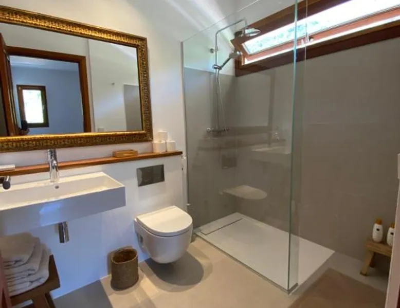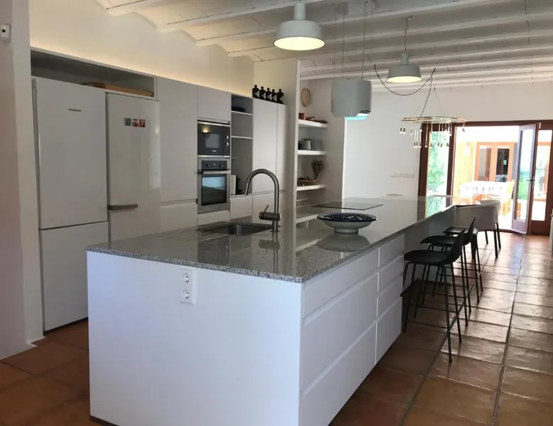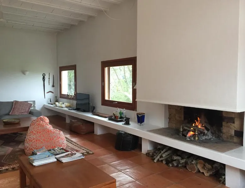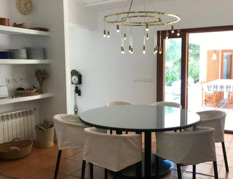 Spacious Holiday Home in Sant Carles de Peralta: Can Poeta offers a spacious holiday home in Sant Carles de Peralta, Spain. The property features four bedrooms and four bathrooms, ensuring ample space for all guests. Exceptional Facilities: Guests can enjoy a saltwater swimming pool, sun terrace, and lush garden. An open-air bath provides relaxation, while free WiFi is available throughout the property. Comfortable Amenities: The holiday home includes family rooms, a solarium, and free on-site private parking. Additional amenities include air-conditioning, a fully equipped kitchen, and sea views. Nearby Attractions: Sant Carles Church is a 13-minute walk away, while Es Figueral Beach lies 1.9 mi from the property. Ibiza Airport is 17 mi distant, offering convenient travel options. This villa's special features are the pool with a view and the fireplace. This spacious villa consists of 1 living room, 4 separate bedrooms and 4 bathrooms with a shower and free toiletries. Guests will find a stovetop, a refrigerator, a dishwasher and kitchenware in the well-fitted kitchen. The villa also provides guests with a barbecue. The air-conditioned villa provides a flat-screen TV with cable channels, a washing machine, a private entrance, a tea and coffee maker as well as sea views. The unit offers 5 beds.