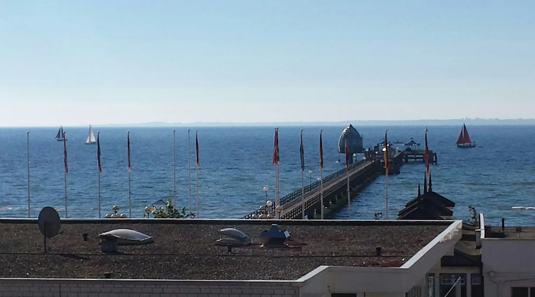 Beautiful bright apartment with balcony and view of the sea and the pier. On the 5th floor of the Grömitz Center. An elevator is available. 4 steps must be overcome. 2 separate bedrooms, bright cozy living-dining room, small kitchen Bathrooms An underground parking space in the house belongs to the apartment. Clearance height: 2 meters! The beach, adventure pool, bakery and all other shops are within easy reach. The space The apartment has one bedroom with a double bed (1.80 x 2.00) and one bedroom with a bed (1.40 x 2.00), ideal for a family with children. A crib is also available on request. The kitchen is practically furnished and has everything you need, 2-burner electric stove, fridge, microwave, oven, dishwasher, kettle, coffee maker, dishwasher. Dishes, cutlery, pots and pans, of course. The cozy living and dining room is beautifully bright thanks to the large window front and offers a wonderful view of the sea and the sky. Every day is a new experience with this view. A large wardrobe can accommodate clothes and suitcases. Please bring your own duvet covers, sheets, towels, dish towels and dishcloths! I can also provide everything, then charge €25 per person/package. Guest access The whole apartment with balcony and underground parking :)) Clearance 2 meters Other things to note The tenants undertake to pay the applicable tourism fee (formerly the spa tax), according to the survey of the municipality of Grömitz, to me, the hostess.