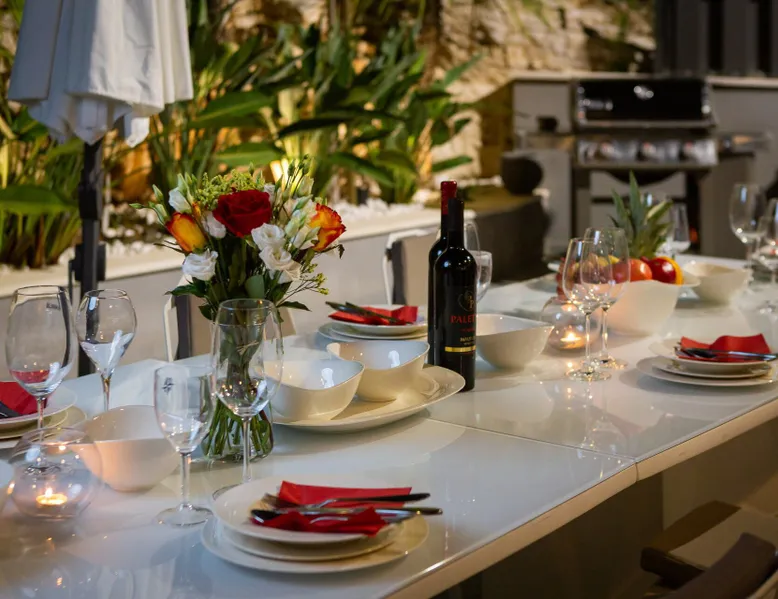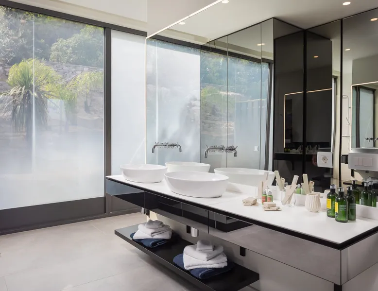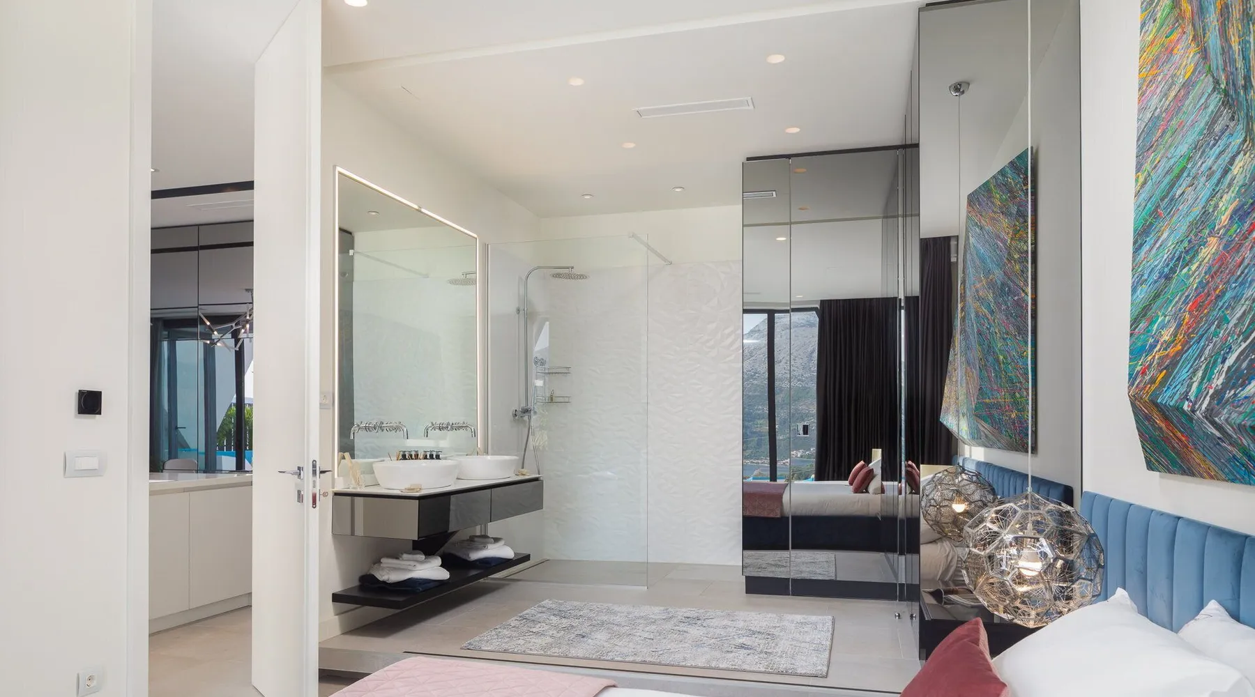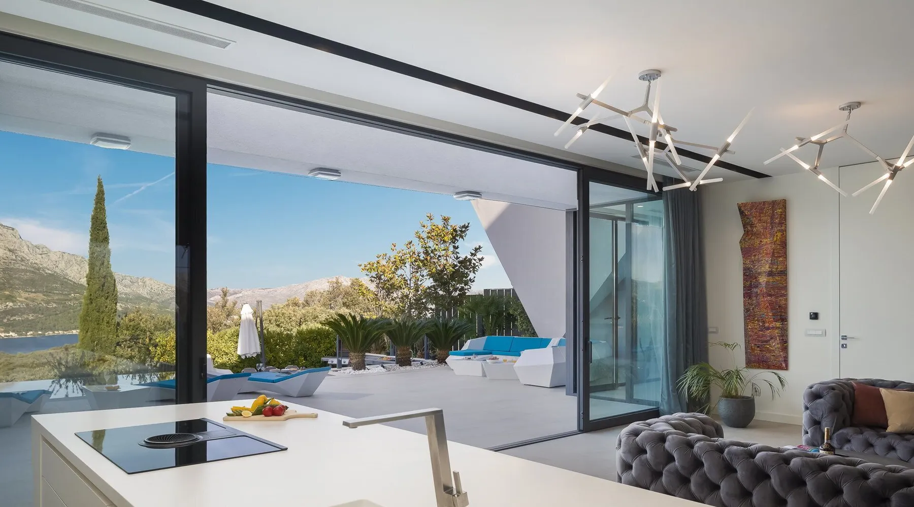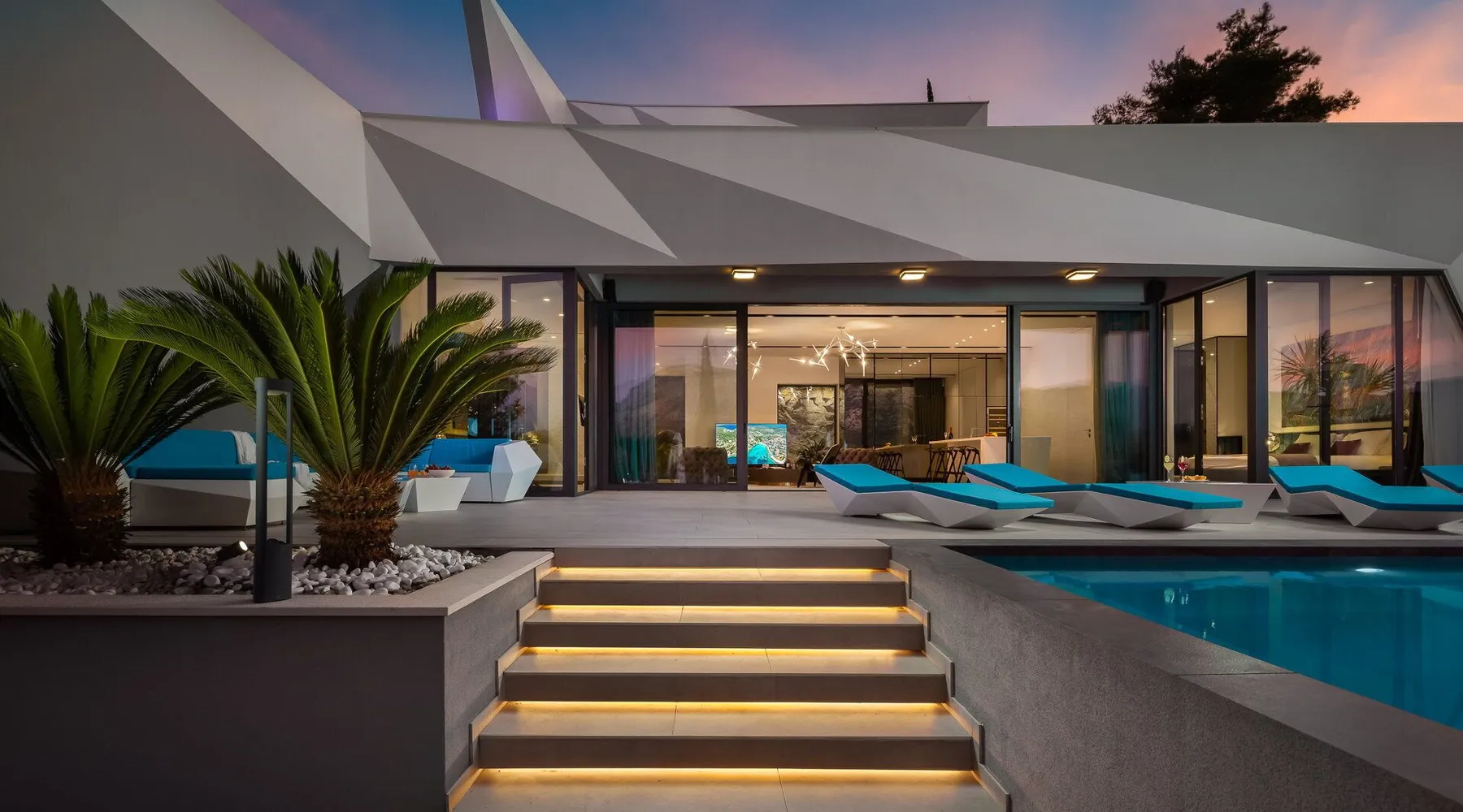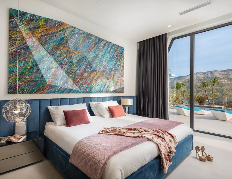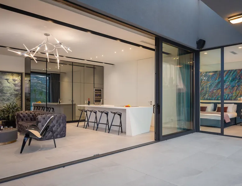Luxury Villa Korcula Diamond with 2 infinity pools is one of the most luxurious high-end mansions on the Adriatic. This brand new holiday rental is located on the island of Korcula, which is known as the birthplace of Marco Polo. Luxury Villa Korcula Diamond is secluded above the quiet bay of Zrnovska Banja and offers complete privacy and amazing sea views.With its unique architecture, modern interior, and top amenities, it is the perfect accommodation for an unforgettable vacation experience.Luxury Villa Korcula Diamond consists of two independent units, meaning if you are in a big group you can still have your privacy. The upper unit has 3 bedrooms, 4 bathrooms, a cozy living area, a fully equipped kitchen, 35 m2 infinity pool, and a huge sundeck.The lower unit has the same facilities as the upper: private living room, kitchen, infinity pool (40 m2), sundeck, 2 bedrooms, and 3 bathrooms. Each bedroom has a comfortable king-size bed and an en-suite bathroom.Luxury Villa Korcula Diamond with two swimming pools is perfect for couples or families. The villa has a Bose multi-room surround system, Daikin air-conditioning system, security glass windows, premium furniture, and 2 Weber barbecues.The villa is located 1 km from the restaurants and bars.