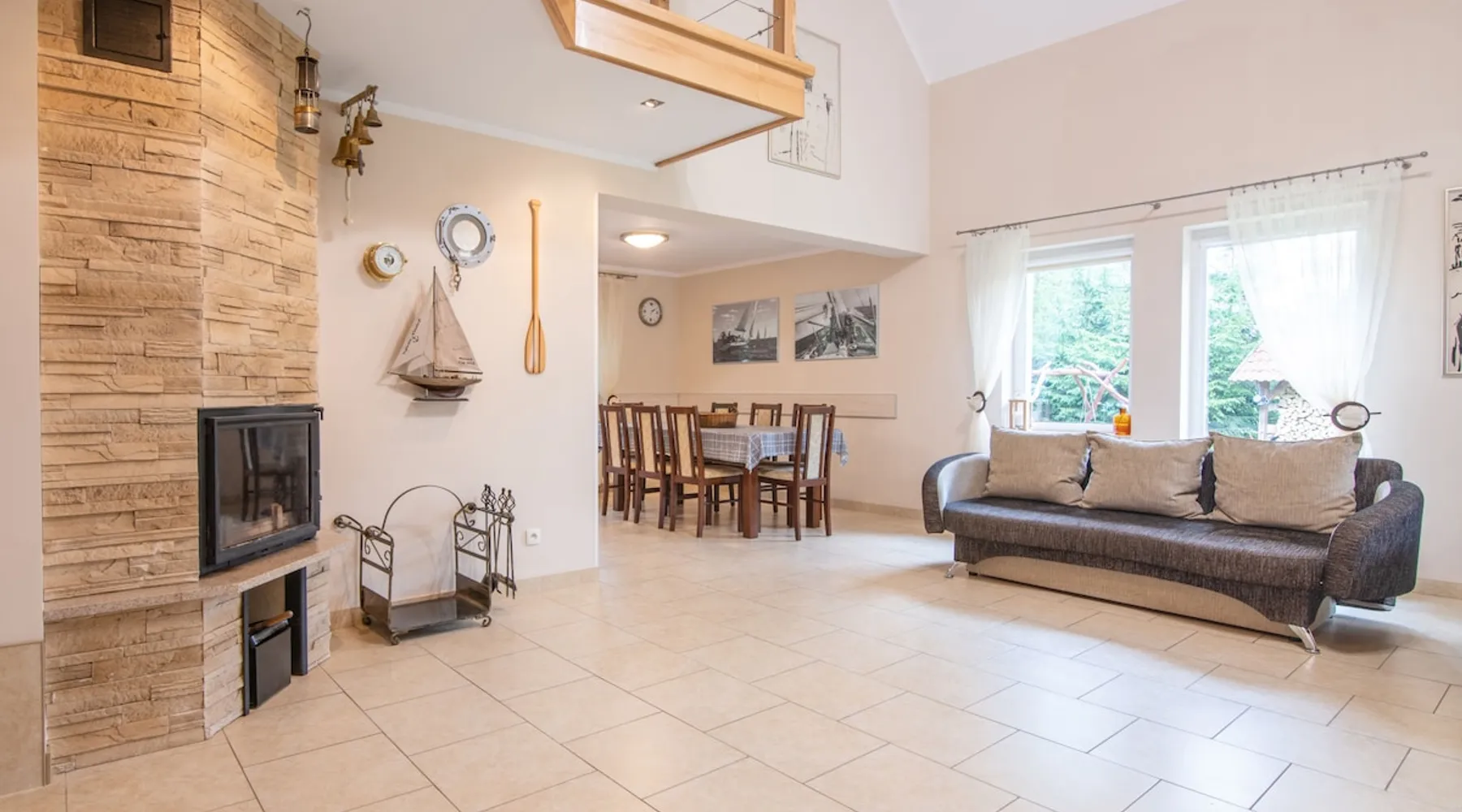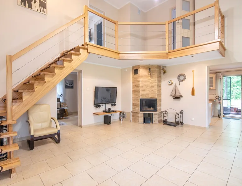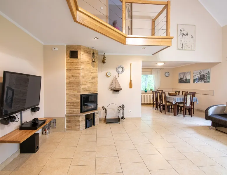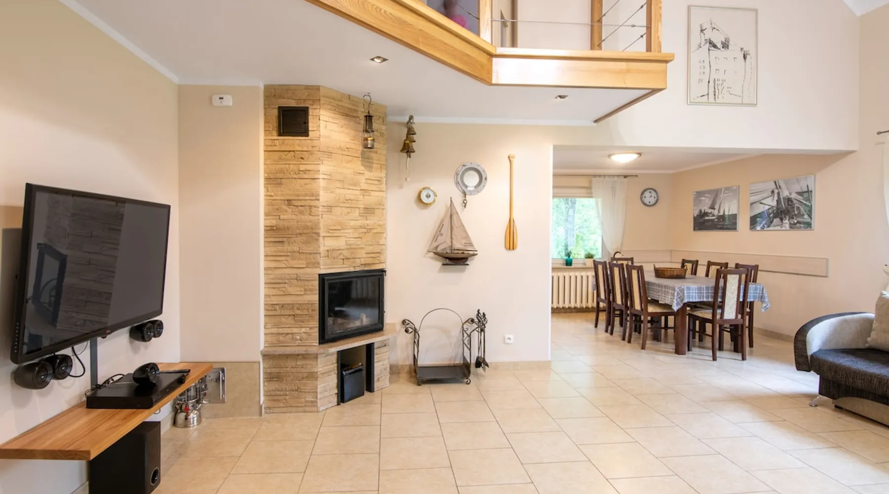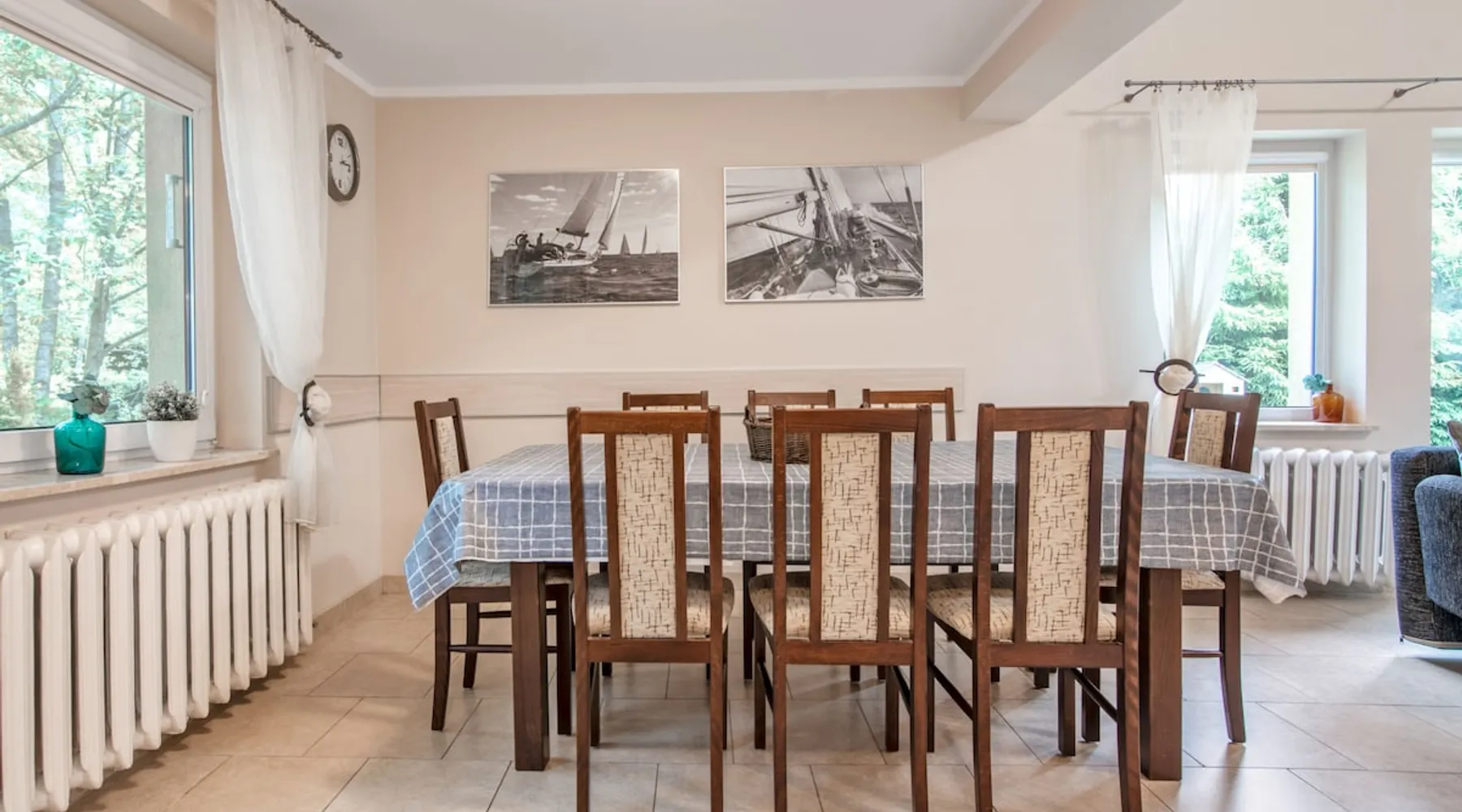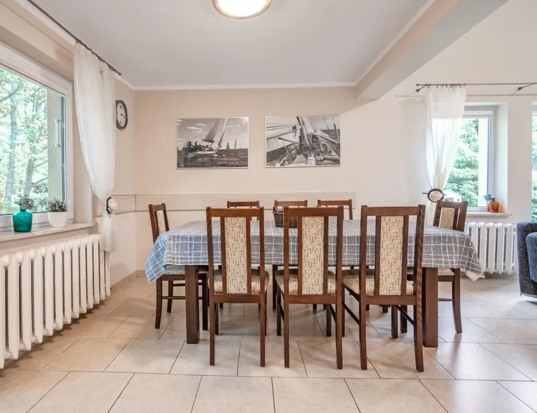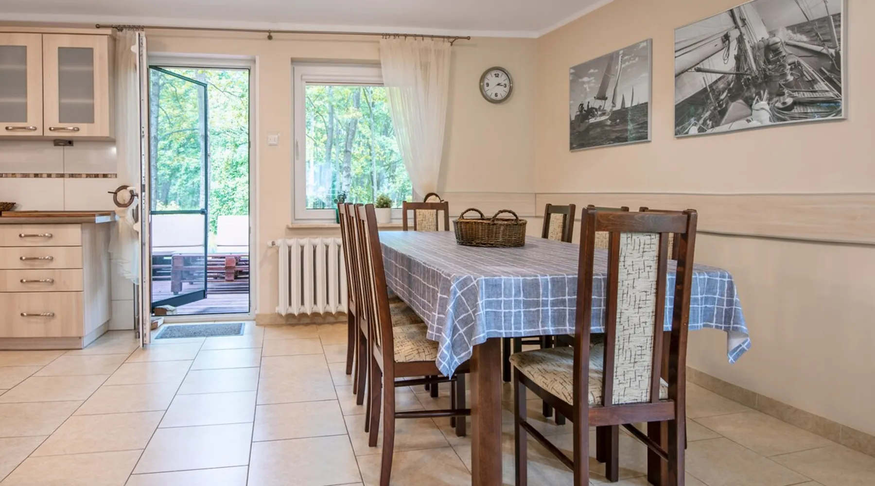 All discounts are already included, please go ahead and book the property if your travel dates are available. Below please see all the listing details 4-room house 120 m2 on 2 levels. Open living room 40 m2 with 2 double sofabeds, open-hearth fireplace and TV. Exit to the terrace. 1 room 17 m2 with 2 double sofabeds and shower/WC. Kitchen 18 m2 (4 hot plates, oven, dishwasher, microwave). Upper floor: 2 rooms 12 m2, each room with 2 double sofabeds, shower/WC and TV. Wood heating. The space Terrace 20 m2. Terrace furniture, barbecue (portable). Facilities: washing machine, logs (extra). Parking at the house. Please note: smoke alarm. - Included services: Bed linen (initial supply) Final cleaning (Basic cleaning is always carried out by the guest) Additional service charges may have to be paid locally on-site, see house rules and house manual for details. Please don't hesitate to contact us should you have any questions. Thank you. Trygort 4 km from Węgorzewo: Single-family house "Mazurska Sielanka", built in 2015. In a quiet position, along the wooded area, 150 m from the lake. Private: property 3'000 m2, pond. Volleyball, terrace, garden furniture, barbecue, fireplace, children's playground. Available: boat. Motor access to the house (2 km via unmade road). Parking at the house on the premises. Shop 4 km, restaurant 4.5 km, bus stop 5 km, railway station 30 km, grass beach 150 m. Tennis 4 km, riding stable 16 km. Well-known lakes can easily be reached: Mamry 150 m. Please note: car recommended. Suitable for families. Fishing [permit required]. Deposit for the boat 700 PLN. Private jetty owner available for guests of the houses PL1156.100.1, PL1156.101.1 and PL1156.102.1. Other things to note 1. Availability All open periods are instantly bookable. Please choose your dates and confirm your reservation without waiting for host approval. 2. Pricing We always offer you our best price and are unable to offer additional discounts. Please select your preferred travel dates to view the final price. Optional services described in the house rules can be booked after successful reservation by contacting us directly. 3. Check-in information You will receive the travel information with the exact address of the listing, the location for key collection and the contact details of your keyholder 28 days before arrival only if the pre check-in has been completed. In order to ensure a smooth handover of keys, we kindly ask you to contact the key holder by email 7 days before arrival, especially if your arrival takes place outside the stated check-in times. Please note, without an appointment, arrivals outside the stated check-in times will not be possible. 4. House Rules We share all property details in the full description. Please read both the description and the house rules. If available you will find optional amenities described in the house rules, which can be requested by contacting us directly.