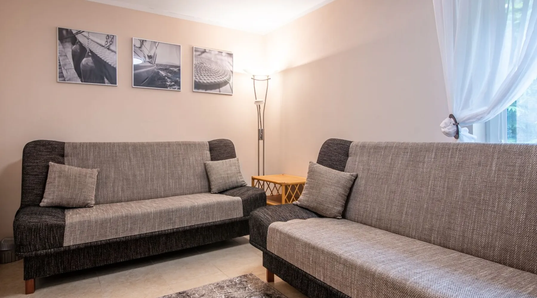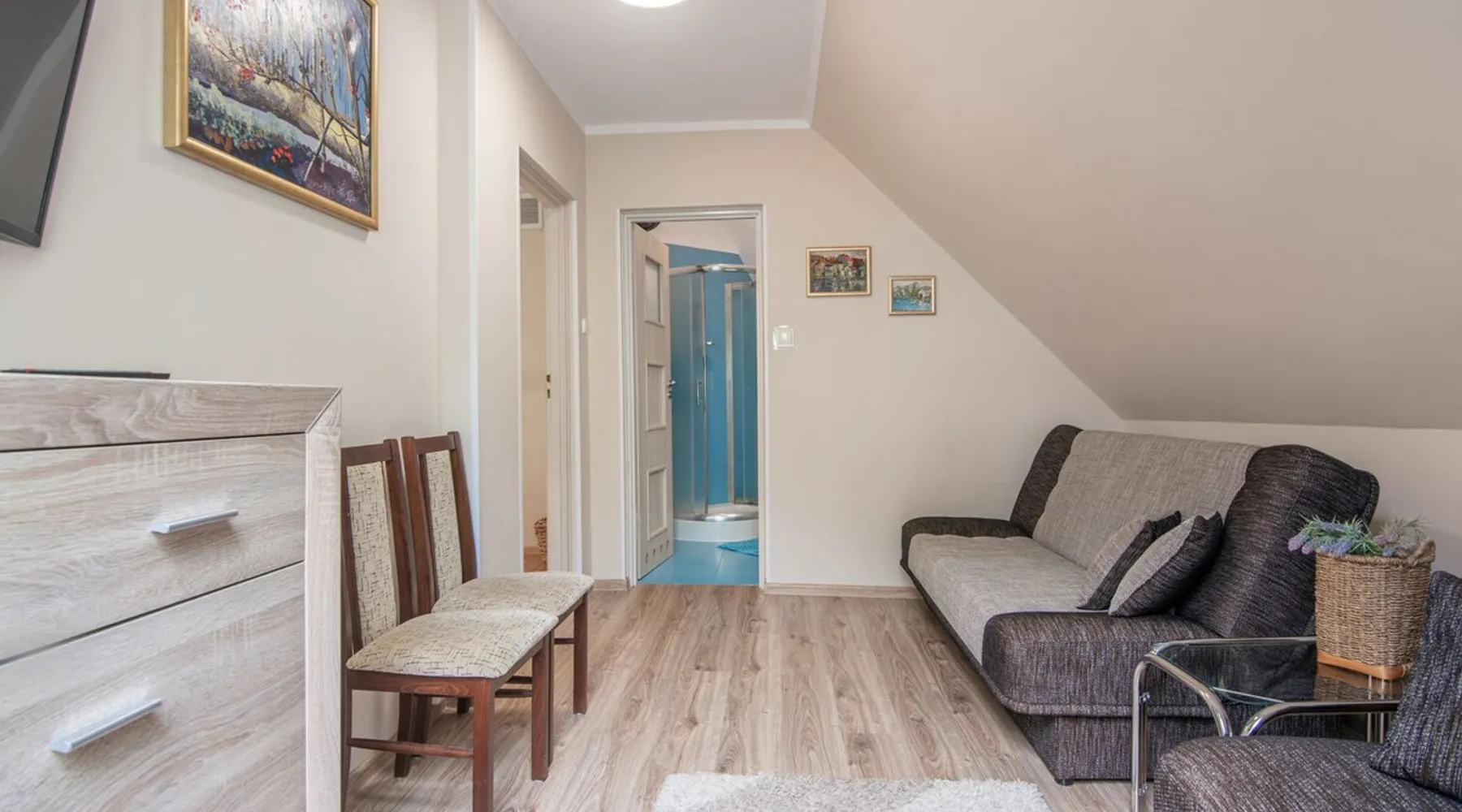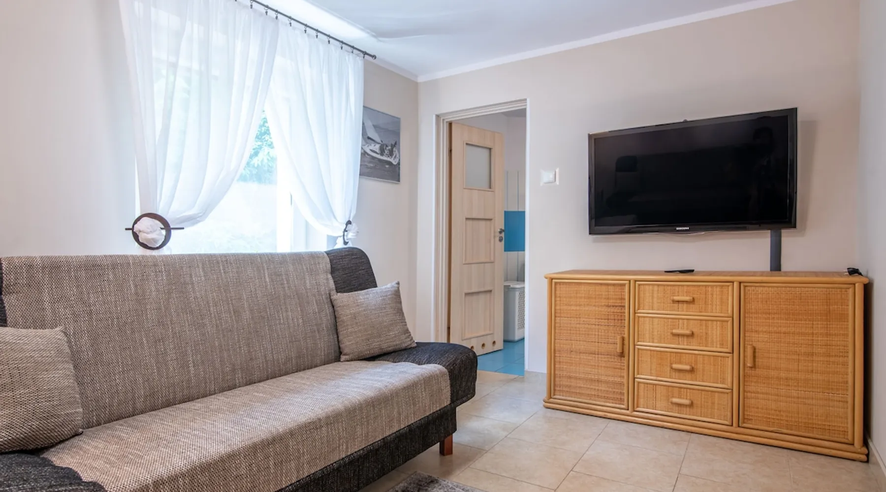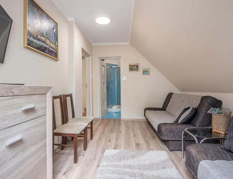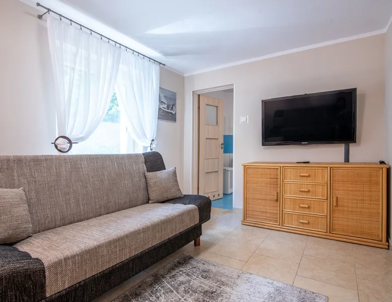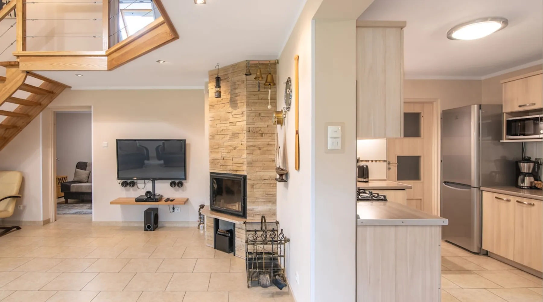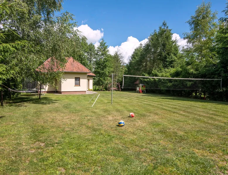 All discounts are already included, please go ahead and book the property if your travel dates are available. Below please see all the listing details 4-room house 120 m2 on 2 levels. Open living room 40 m2 with 2 double sofabeds, open-hearth fireplace and TV. Exit to the terrace. 1 room 17 m2 with 2 double sofabeds and shower/WC. Kitchen 18 m2 (4 hot plates, oven, dishwasher, microwave). Upper floor: 2 rooms 12 m2, each room with 2 double sofabeds, shower/WC and TV. Wood heating. The space Terrace 20 m2. Terrace furniture, barbecue (portable). Facilities: washing machine, logs (extra). Parking at the house. Please note: smoke alarm. - Included services: Bed linen (initial supply) Final cleaning (Basic cleaning is always carried out by the guest) Additional service charges may have to be paid locally on-site, see house rules and house manual for details. Please don't hesitate to contact us should you have any questions. Thank you. Trygort 4 km from Węgorzewo: Single-family house "Mazurska Sielanka", built in 2015. In a quiet position, along the wooded area, 150 m from the lake. Private: property 3'000 m2, pond. Volleyball, terrace, garden furniture, barbecue, fireplace, children's playground. Available: boat. Motor access to the house (2 km via unmade road). Parking at the house on the premises. Shop 4 km, restaurant 4.5 km, bus stop 5 km, railway station 30 km, grass beach 150 m. Tennis 4 km, riding stable 16 km. Well-known lakes can easily be reached: Mamry 150 m. Please note: car recommended. Suitable for families. Fishing [permit required]. Deposit for the boat 700 PLN. Private jetty owner available for guests of the houses PL1156.100.1, PL1156.101.1 and PL1156.102.1. Other things to note 1. Availability All open periods are instantly bookable. Please choose your dates and confirm your reservation without waiting for host approval. 2. Pricing We always offer you our best price and are unable to offer additional discounts. Please select your preferred travel dates to view the final price. Optional services described in the house rules can be booked after successful reservation by contacting us directly. 3. Check-in information You will receive the travel information with the exact address of the listing, the location for key collection and the contact details of your keyholder 28 days before arrival only if the pre check-in has been completed. In order to ensure a smooth handover of keys, we kindly ask you to contact the key holder by email 7 days before arrival, especially if your arrival takes place outside the stated check-in times. Please note, without an appointment, arrivals outside the stated check-in times will not be possible. 4. House Rules We share all property details in the full description. Please read both the description and the house rules. If available you will find optional amenities described in the house rules, which can be requested by contacting us directly.