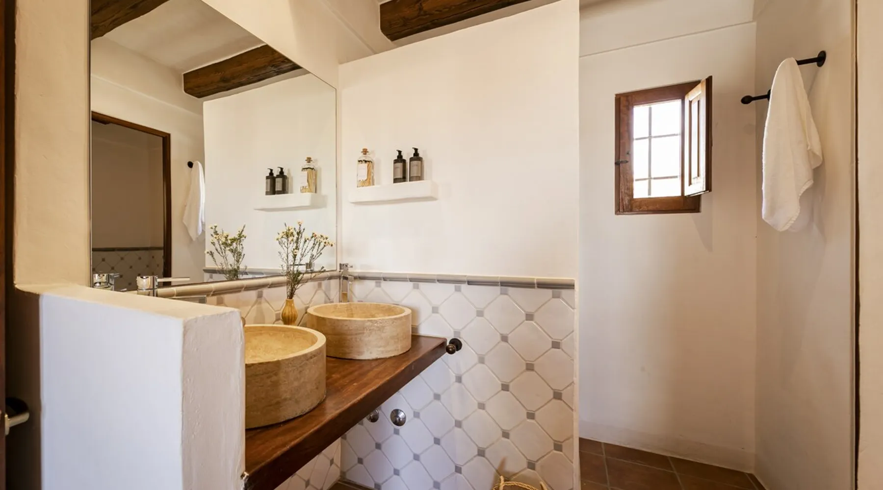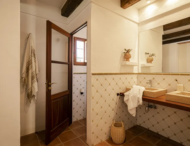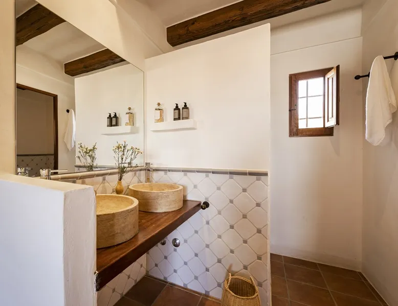 The 4-suites villa is a new built villa. The main difference between one and the other is its façade colour and also a very similar but different distribution each of them. The space The 4-suites villa is a new built villa. The main difference between one and the other is its façade colour and also a very similar but different distribution each of them. The building and distribution of this villa, even its details, were though as a typical Formentera villa…its wide walls that perfectly maintain the inside temperature, its double chimney as a central axis of the living room, its orientation and distribution, and also its small details as the inside lights and the bathrooms windows, will make you feel the authentic Formentera, with the best quality. Its main characteristics are: 200 m² Built area, in land of 600 m2 – 4 double bedrooms – 1 double sofa-bed – 4 complete bathrooms with shower/tub Amenities: – Completely new villa (built in 2007). – Supplies (urban area): water and electricity. – Lcd Tv and satellite. – Safe in the bedrooms. – Independent Air Conditioned/ Heating pump in each room. – Chimney. – Barbacue. – Siemens electrical appliances in the kitchen (induction, fridge, washing machine, oven, microwave). – Laundry with Siemens washing machine and dryer. – Bathrooms showers with rain-drop Porcelanosa system and spas. – Household, towels, bedding and sheets. – Iroco wood furniture. – New outdoor and indoor furniture. – Outdoor table and chairs, solarium and sun beds. – Automatic garage door. Guest access AMENITIES: Completely new villa (first rent in 2009). Supplies (urban area): water and electricity. LCD TV and satellite. Strongbox in the bedrooms. Independent Air Conditioned/ Heating pump in each room. Chimney. Barbacue. Siemens electrical appliances in the kitchen (induction, fridge, washing machine, oven, microwave). Laundry with Siemens washing machine and dryer. Bathrooms showers with rain-drop Porcelanosa system and spas. Household, towels, bedding and sheets. Iroco wood furniture. New outdoor and indoor furniture. Outdoor table and chairs (new from 2010), solarium and hammocks (new from 2010). Automatic garage door. Completely new villa (first rent in 2009). Supplies (urban area): water and electricity. LCD TV and satellite. Strongbox in the bedrooms. Independent Air Conditioned/Heating pump in each room. Chimney. Barbacue. Siemens electrical appliances in the kitchen (induction, fridge, washing machine, oven, microwave). Laundry with Siemens washing machine and dryer. Nespresso coffee machine Bathrooms showers with rain-drop Porcelanosa system and bathtube. Household, towels, bedding and sheets. Iroco wood furniture. New outdoor and indoor furniture. Outdoor table and chairs, solarium and hammocks. Automatic garage door. Other things to note Included services - Parking - Internet Access - Air conditioning Optional services - Cot/Crib: Price: Included in the booking. Available items: 2. - Baby high chair: Price: Included in the booking. - Arrival out of schedule: Price: EUR 50.00 per booking. - Bed linen: Price: EUR 9.00 per person. - Towels: Change each 7 days Price: EUR 9.00 per person. Registration Details ESFCTU0000070370001029630000000000000000000ET-0117359