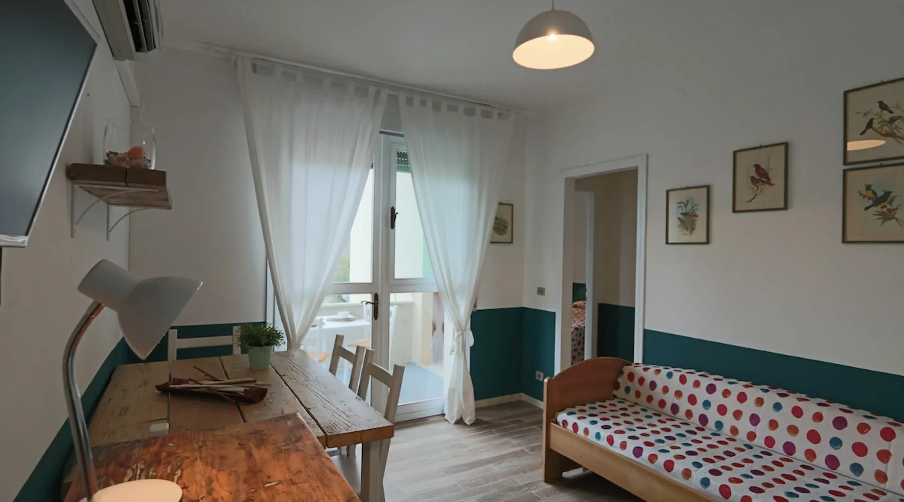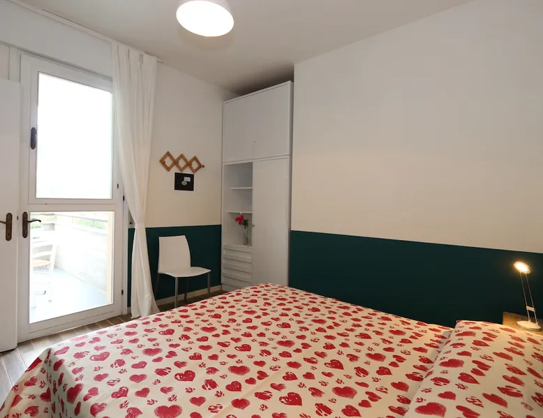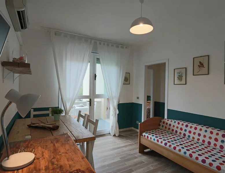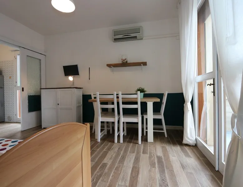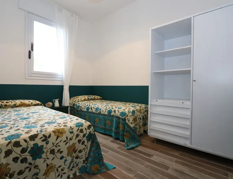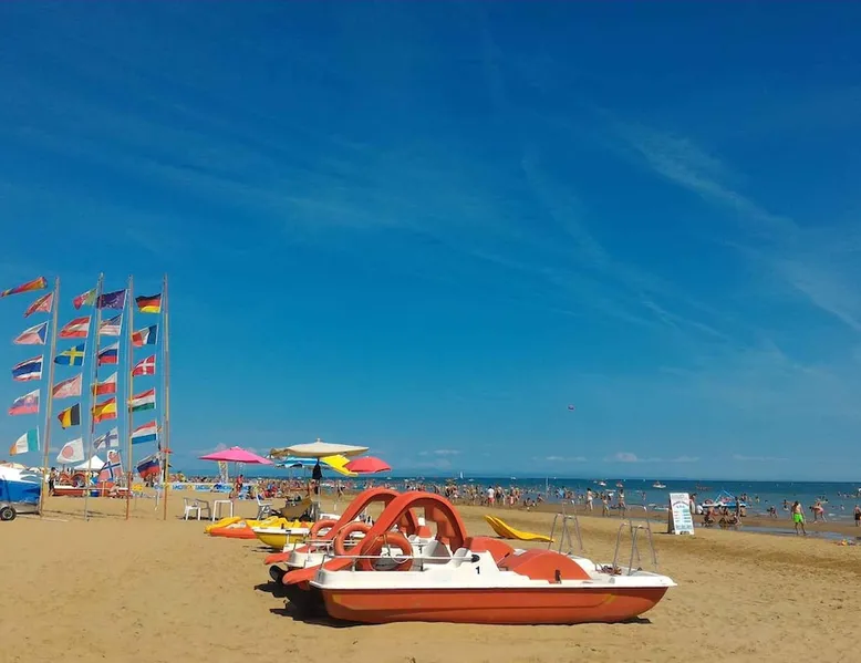 Enjoy relaxing hours in our cozy oasis, equipped with air conditioning for your comfort. Safety is our top priority: CO2 detectors and fire extinguishers ensure peace of mind. Our thorough hygiene measures, including disinfectants, provide additional protection. Experience a stay full of tranquility and peace of mind – we look forward to welcoming you! The holiday apartment is located in an apartment house and is furnished in a functional style. The space Bibione. The holiday apartement is located in a residence. Parking (for 1 car) is available on the property. Room: Living room with 1 additional bed on couch/sofa, TV, dining area and access to the balcony. Bedroom with 2 single beds. Bedroom with 1 double bed. Kitchenette in the living room with gas stove, extractor hood, fridge, microwave and coffee machine. Bathroom with shower, 1 washbasin and WC. Division: Holiday apartment, 1 floor, 3 rooms (including 2 bedrooms), 50 sqm, in total 5 beds (including 1 additional bed). Other things to note Special: air conditioning. For your safety, the accommodation is equipped with CO2 detector and fire extinguisher. Hygiene measures: disinfectant. Obligatory (Payable on the spot): final cleaning of the kitchen to be carried out individually. local tax by local tariff (if charged). On request (Payable on the spot): bed linen 11 € per person per first time use and changing. hand towels 10 € per person per first time use and changing. baby cot – please order at booking 5 € per bed per day. high chair - please order at booking 3 € per piece per day. buggy 3 € per piece per day. Pets (Payable on the spot): allowed, EUR 40. 00/pet per stay. Deposit (in cash when the keys are handed over on site, will be refunded on departure): EUR 100,-/object. Registration Details IT027034B4VBJGYMXL