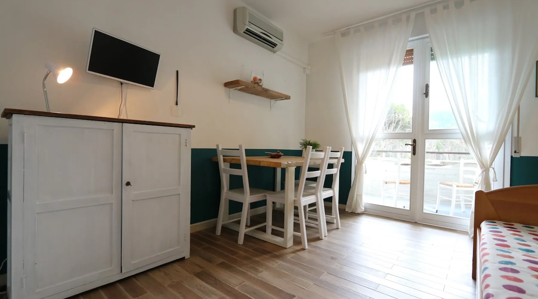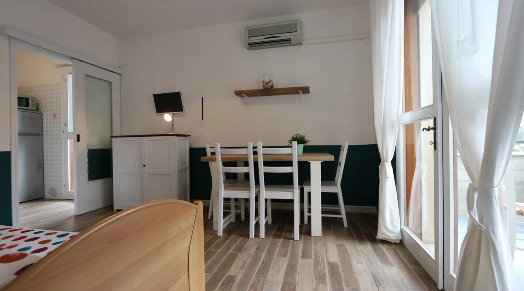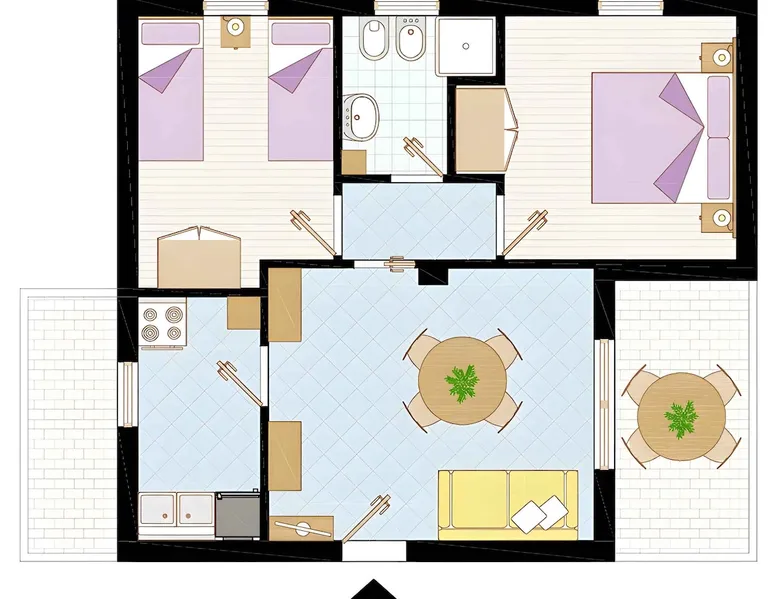 Enjoy relaxing hours in our cozy oasis, equipped with air conditioning for your comfort. Safety is our top priority: CO2 detectors and fire extinguishers ensure peace of mind. Our thorough hygiene measures, including disinfectants, provide additional protection. Experience a stay full of tranquility and peace of mind – we look forward to welcoming you! The holiday apartment is located in an apartment house and is furnished in a functional style. The space Bibione. The holiday apartement is located in a residence. Parking (for 1 car) is available on the property. Room: Living room with 1 additional bed on couch/sofa, TV, dining area and access to the balcony. Bedroom with 2 single beds. Bedroom with 1 double bed. Kitchenette in the living room with gas stove, extractor hood, fridge, microwave and coffee machine. Bathroom with shower, 1 washbasin and WC. Division: Holiday apartment, 1 floor, 3 rooms (including 2 bedrooms), 50 sqm, in total 5 beds (including 1 additional bed). Other things to note Special: air conditioning. For your safety, the accommodation is equipped with CO2 detector and fire extinguisher. Hygiene measures: disinfectant. Obligatory (Payable on the spot): final cleaning of the kitchen to be carried out individually. local tax by local tariff (if charged). On request (Payable on the spot): bed linen 11 € per person per first time use and changing. hand towels 10 € per person per first time use and changing. baby cot – please order at booking 5 € per bed per day. high chair - please order at booking 3 € per piece per day. buggy 3 € per piece per day. Pets (Payable on the spot): allowed, EUR 40. 00/pet per stay. Deposit (in cash when the keys are handed over on site, will be refunded on departure): EUR 100,-/object. Registration Details IT027034B4VBJGYMXL
