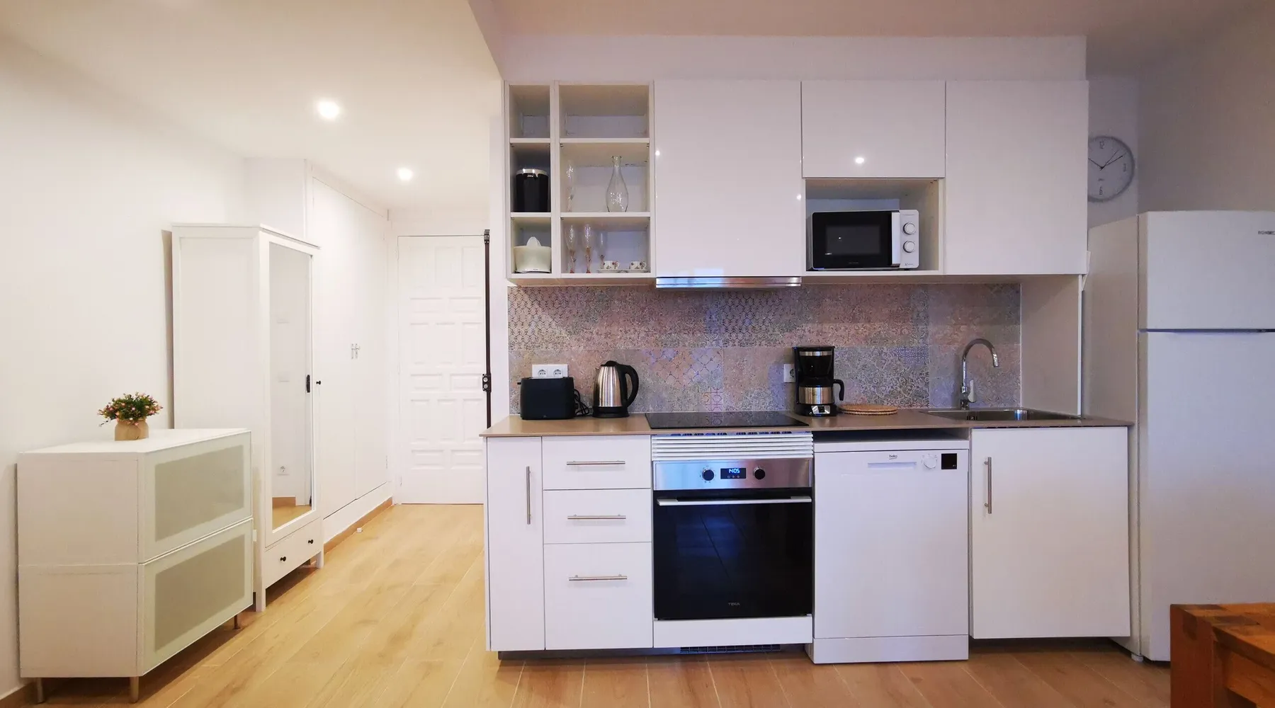 The apartment in Palamós has 2 bedrooms and has capacity for 6 people. The apartment is comfortable, is very light, and is 45 m². It has views of the garden. The property is located 70 m from Caleta rock beach, 150 m from La Fosca sand beach, 150 m from Spar supermarket, 180 m from LA FOSCA bus station, 180 m from DC from the restaurant, 300 m from EXPLORA PARK amusement park / theme park, 1 km from Centro Palamós city, 9 km from AQUADIVER water park, 10 km from Golf d´Aro golf course, 48 km from Girona costa brava airport. The house is situated in a family-friendly neighborhood next to the sea. The accommodation is equipped with the following items: terrace, washing machine, iron, open-air parking the same building, 1 TV. In the gas independent kitchen, refrigerator, microwave, oven, freezer, dishes/cutlery, kitchen utensils, coffee machine, toaster and kettle are provided.