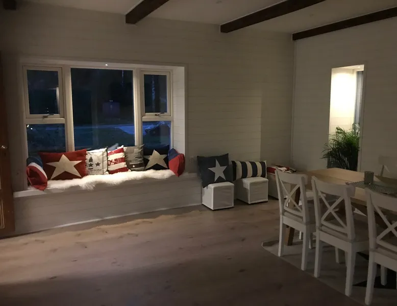 Totally renovated house The place have a private sandbeach, and You have about 4000m2 private plot. You can easily park 3 cars in the driveway. Its a perfect place for families. You can swim, fish, using a boat in the big lake. Its 5 km to the small town Filipstad, with restaurants, shops, etc. Notice that bedroom number 4 are a small cottage by the waterfront, with 4 beds :) Welcome to a small paradise :-) Other things to note Of course towels and bed linen are included