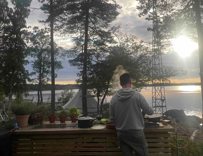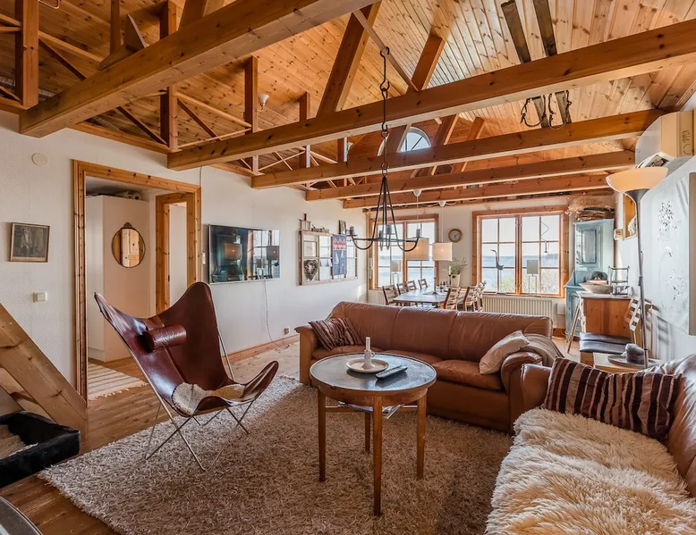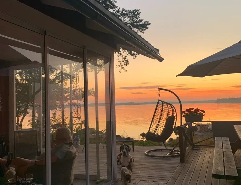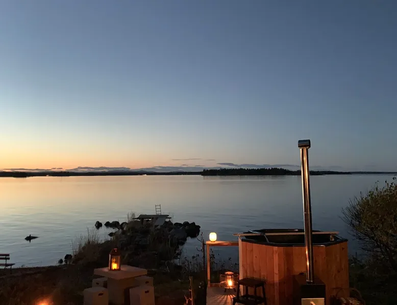 Paradise by the sea. It has the tranquility, luxury and nature. Sauna and hot tub with sea views as well as glamping tents during warmer months. Swim, grab a brew drink, fish, and read a book. Fireplace, coffee maker, Wi-Fi, speakers, smart tv in v-room and two bedrooms. It has a gas grill and Muurikka. Two high chairs, crib, travel bed, trampoline and toys. Take a ride with the Canadian, paddleboard or trail run in the forest facing the cliffs. The seasons of the seasons have their charm and large families fit! The space During warmer months we now have a completely magical Glamping tent with a double bed, down duvets and elements if needed (electricity is available). The guests have the opportunity to choose whether they want to rent to the glamping for 1000 SEK/night or discounted price of 2500 SEK per rental period. Canoe is available to borrow to paddle around the cutting. Guest access The entire home except for one of the storage rooms.