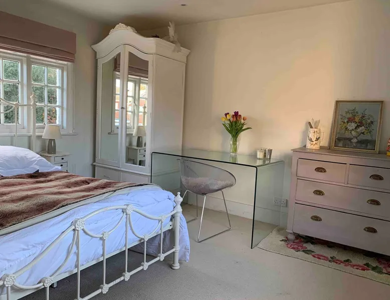 A charming, cosy double-room available in a delightful 1890's country cottage in an Area of Outstanding Natural beauty in Buckinghamshire. The house is situated on a quiet road 1 mile walk from Great Missenden and backs on to fields and woods. The house features stripped floorboards downstairs, living room with log-burner, is non-smoking, clean, bright and light and has all home comforts. Off street parking available. The space Situated in a small village very close to Great Missenden which is on the Chiltern line and only 6 miles from Amersham or Chesham on the Metropolitan line, only 40mins in to London. Walk out of the house for huge north facing garden, beautiful walks and local country-pubs. Guests can eat in the dining/ breakfast-room and make use of fully fitted kitchen, of one of the sitting-rooms with open fire and piano. There is a family dog, a golden retriever, and a ginger-tom cat, both friendly, so pet-lovers preferred. Upstairs is the generous 12ft+ bedroom with double-bed, wardrobe, chest-of-drawers, glass desk and private bathroom with shower/bath/ toilet. Guest access Guest bedroom Guest Bathroom Kitchen and dining room Garden with private terrace During your stay Owners live in the house. Other things to note We have a cat called Bonnie , who is very sweet, she is not allowed in guest room and sleeps downstairs at night .