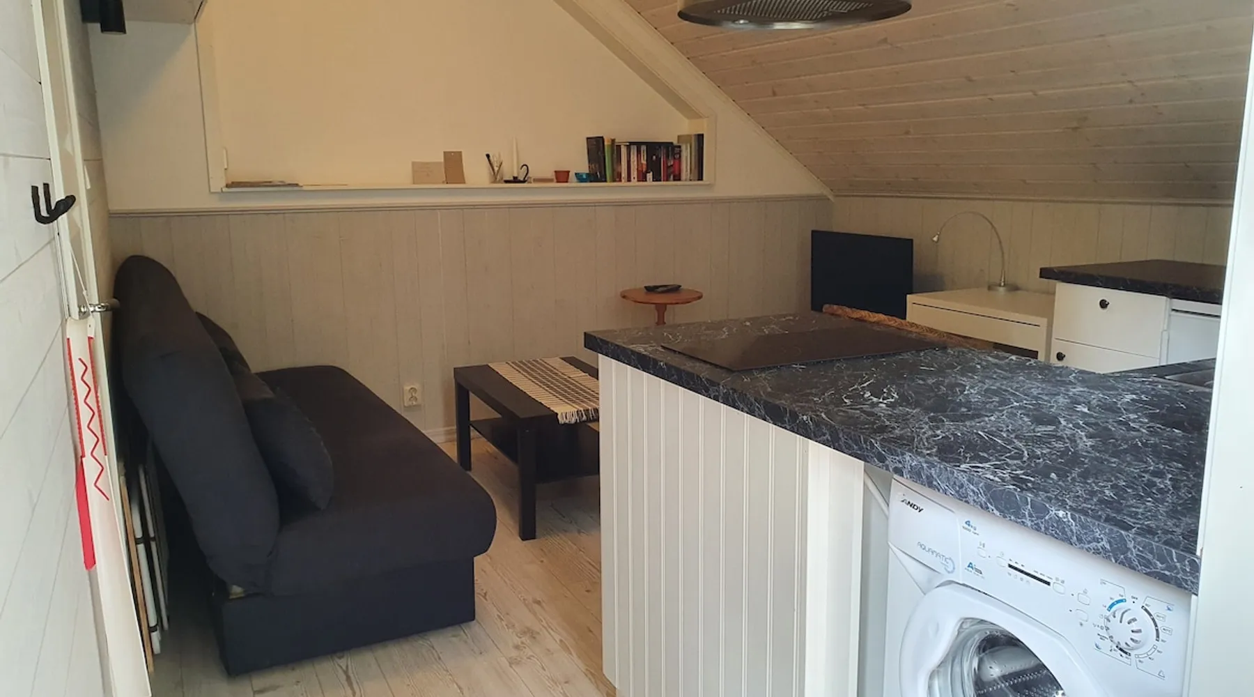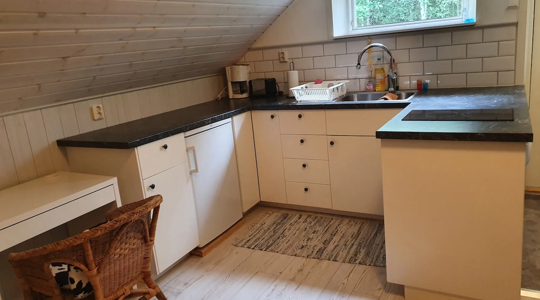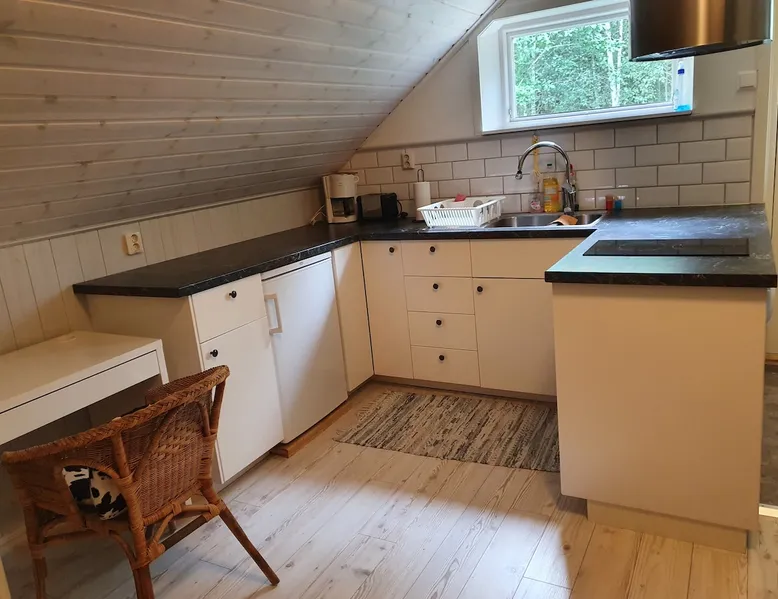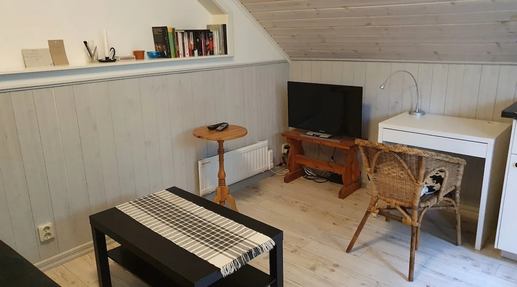 A small apartment that still has what you need. Quiet and pleasantly located in the countryside. Only 4 km from Lindesberg. 1 km to Fornaboda racetrack Bed linen is not included but can be rented by us if you do not bring your own. The space Own apartment in the farm, 23 sqm. The staircase leads up to the door. One bedroom with two single beds, one living room with kitchen part and sofa bed, WC/shower and washing machine. TV. Sheets are not included, but can be rented on site if needed. Guest access Free Wifi, free parking outside the property. Other things to note Wood-burning sauna can be rented