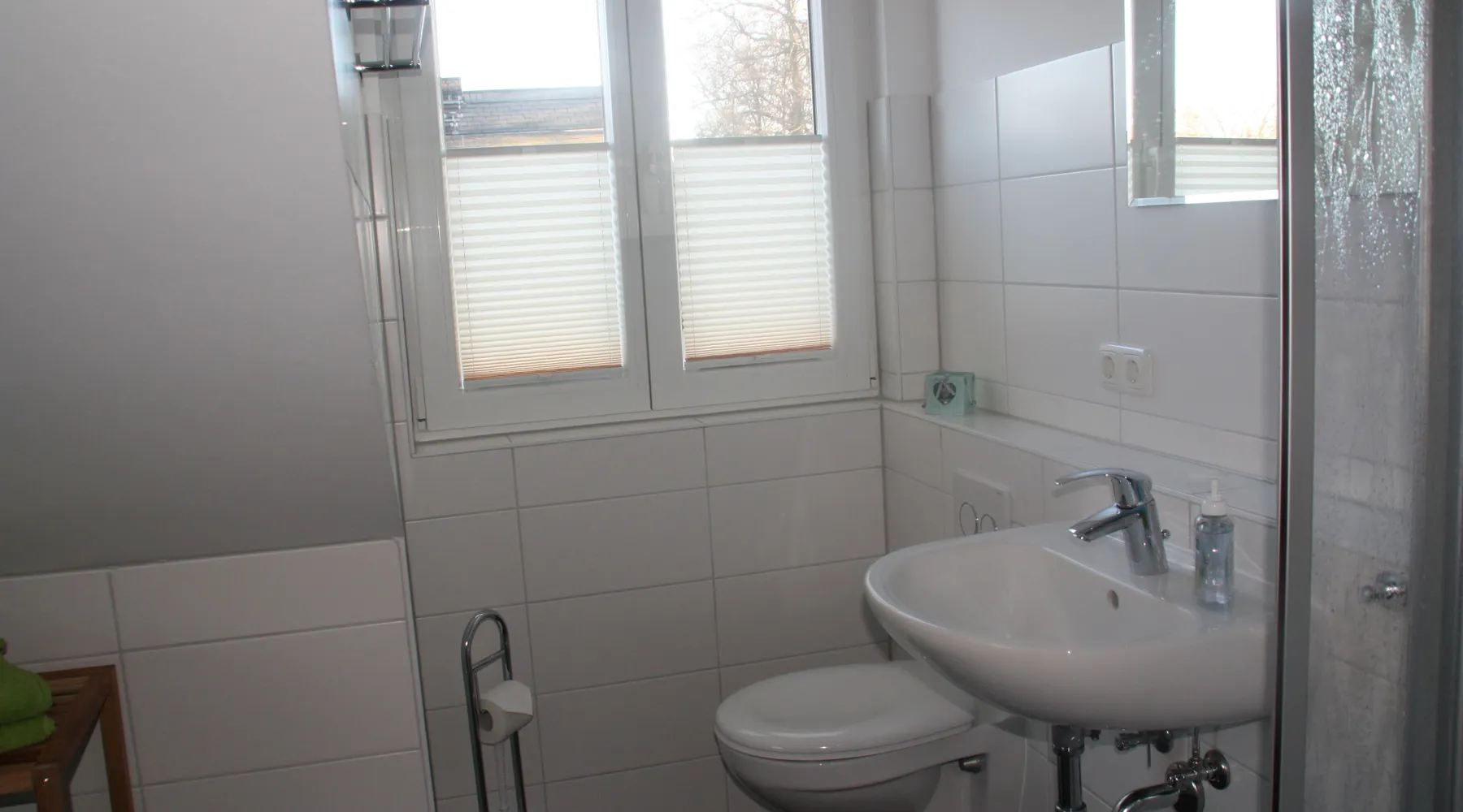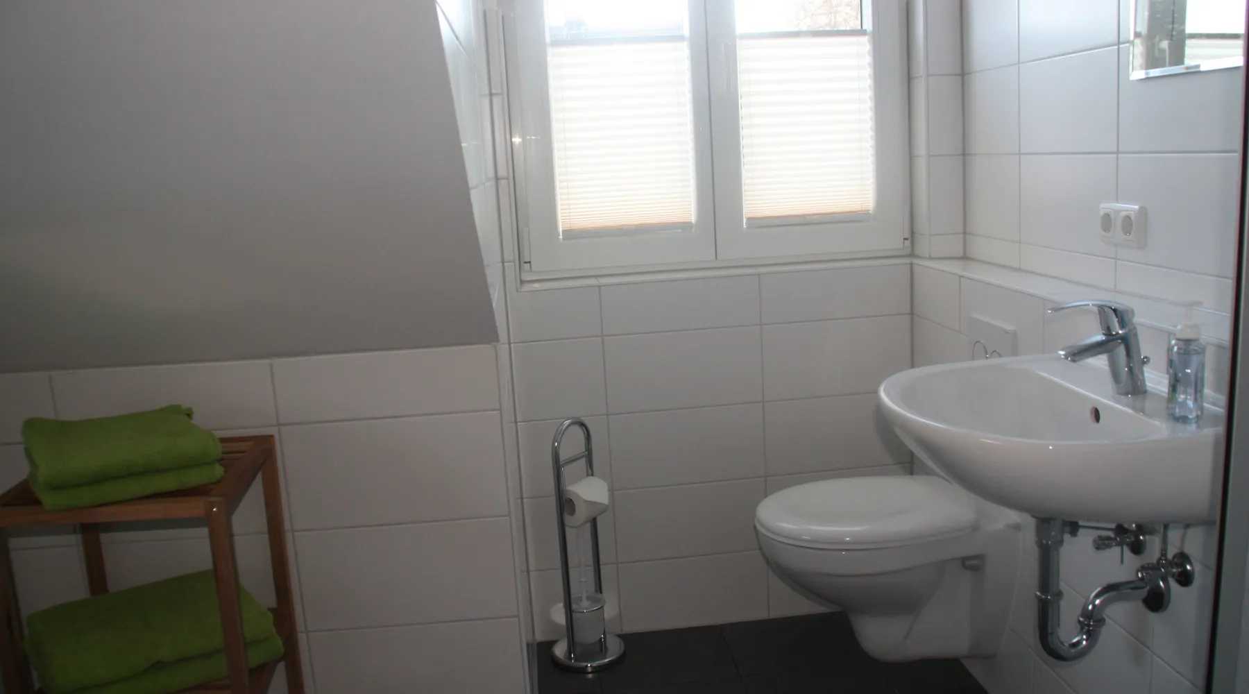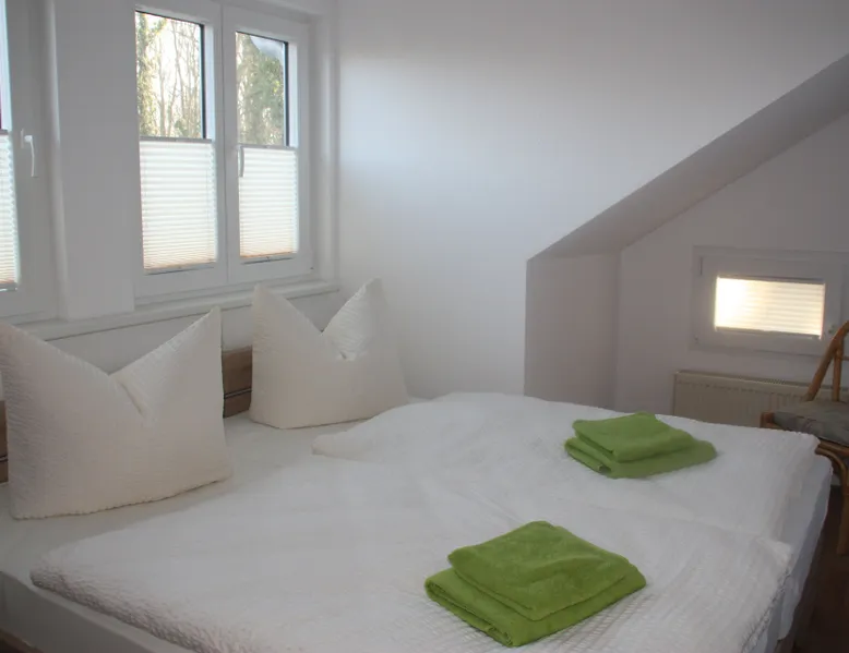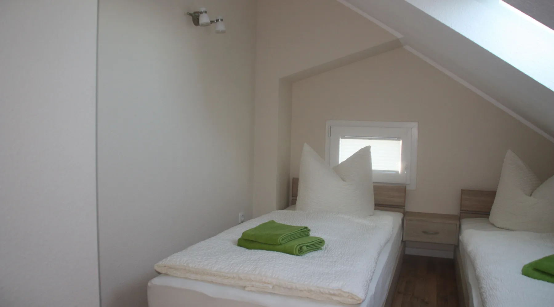 The apartment has a size of about 55 square meters and is located on the upper floor of the house. It was completely renovated and refurbished in 2017. The apartment extends over 2 floors and can accommodate 5 people. It has 2 bedrooms. The first bedroom is furnished with a double bed. A staircase from the living room leads to the second bedroom, which is located in the rooftop and is furnished with 3 single beds. The open living room is furnished with a comfortable corner couch and satellite TV. In the well-equipped kitchen there is a stove with ceramic hob and oven, fridge, coffee machine, kettle and toaster. The garden can be used, seating is available. A covered bicycle parking space is also available. The city center of Potsdam is approx. 4.5 km away and can be reached easily by bus and train thanks to the good transport connections. Rehbrücke train station is a 15-minute walk away. From here you have the option of taking the regional train to Berlin. In the nearby Waldstadt Center there are some small shops and a large supermarket.