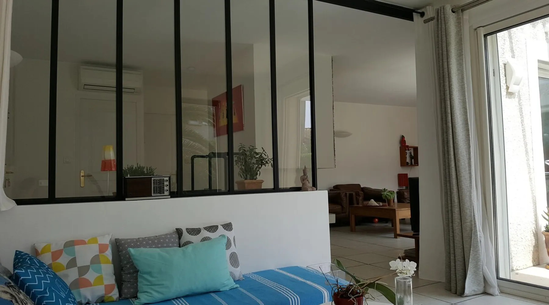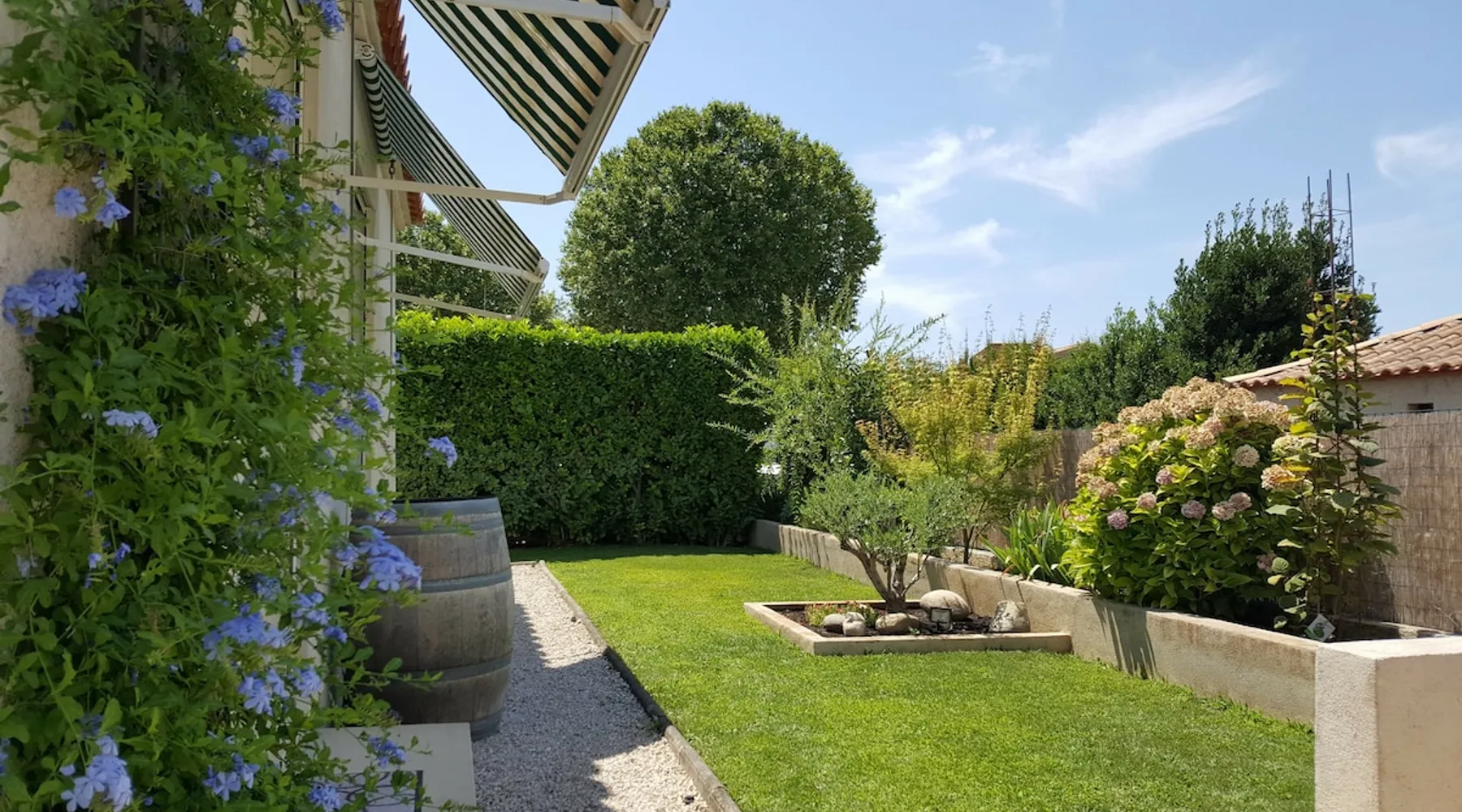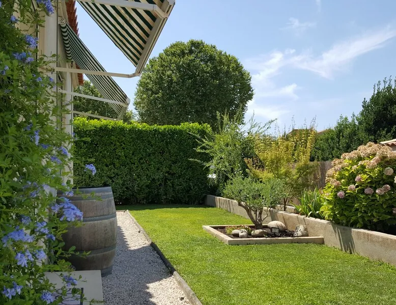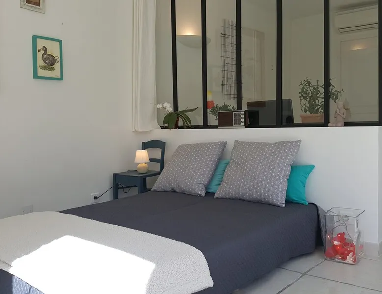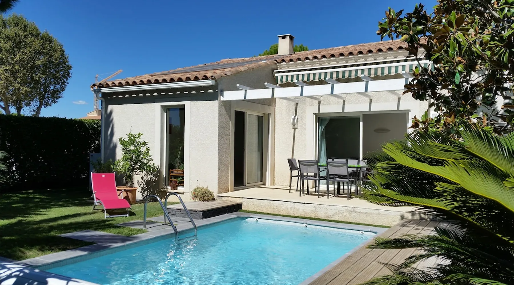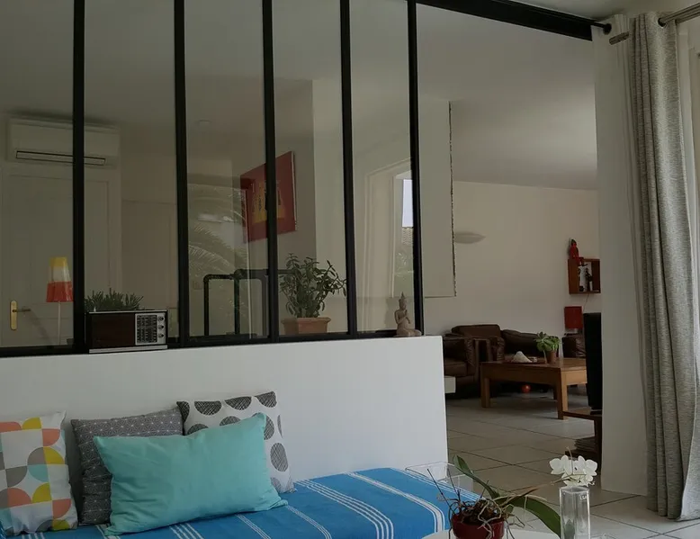 Very beautiful air-conditioned villa on one level with swimming pool, facing south, located in the heart of the village of Lattes in a secure residential area of the city center halfway between the sea and Montpellier close to the tram and all shops Ideal for 4 people - Possibility for 6 people (living room with sleeping area and 2 children's beds) The space Ideally located half way between Palavas and Montpellier (7 min drive) In the center of the village, in a small private subdivision of 9 villas, secured with entrance gate and access code. 2 minutes' walk from the beautiful Sunday market of Lattes and all shops (bakery, press, city crossroads, butcher shop, primeur...) 5 minutes' walk from the tram that will take you to Montpellier centre, train station, supermarkets... 1 minute from the cycling path which joins on one side Montpellier and on the other Palavas along the Méjean natural site and the ponds in 20 minutes of walking (2 bikes are at your disposal) Possibility to come by train: everything can be done on foot, by bike or by tram. Ideal for 4 people - Possibility of 6 people (sleeping area lounge with 2 children's beds) This house of about 100 m2 on its 500 m2 lot will seduce you with its very wooded exterior, its enclosed garden and its 6m×3m flat bottom swimming pool of 1m50 protected by an electric curtain. With its terrace and living room facing south, our ultra-light house, is composed of: -A 1st bedroom with a 160 bed and XL shower. -A second bedroom with a 160 bed with an Italian shower and toilet -A second toilet -A large open plan living room with kitchen, living room, office, office and a second living room that can be used as a 3rd sleeping area (2 60 cm benches): This space is separated from the rest of the room by a canopy and a curtain. 1 secure parking space is available in front of the house. Access to garage for bicycles Opposite a guest bedroom window of the neighbor very rarely occupied, see in photos. Amenities at your disposal: connected TV, Bluetooth smart speaker, electric barbecue, electric plancha, washing machine, dishwasher, freezer, wine cellar... Registration Details 3412900016415