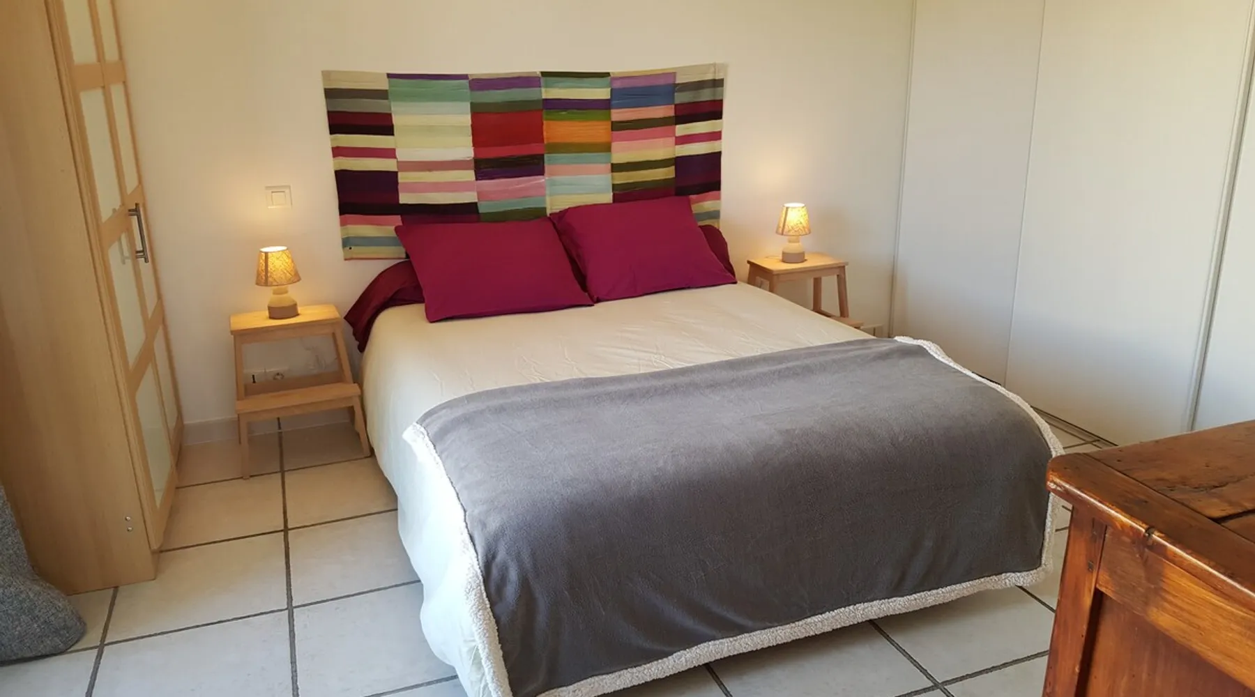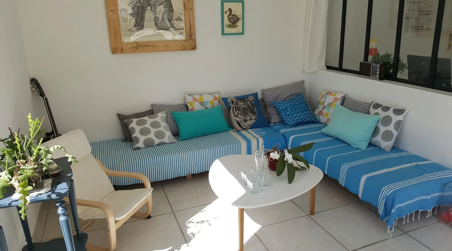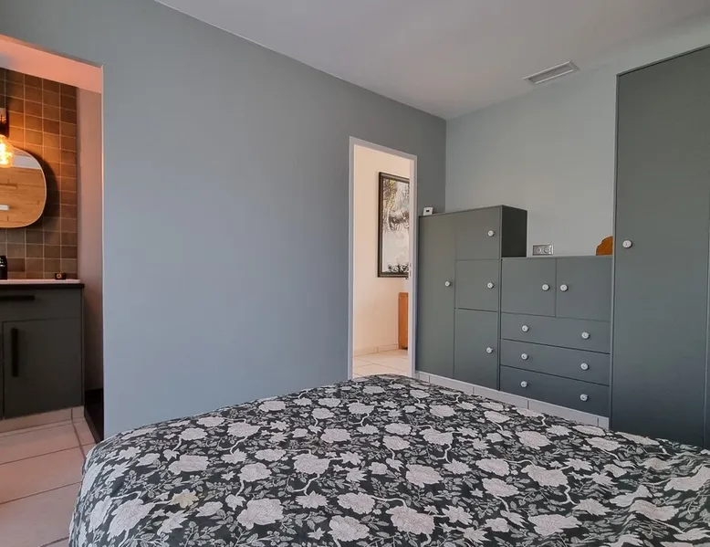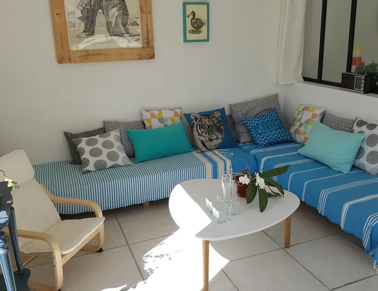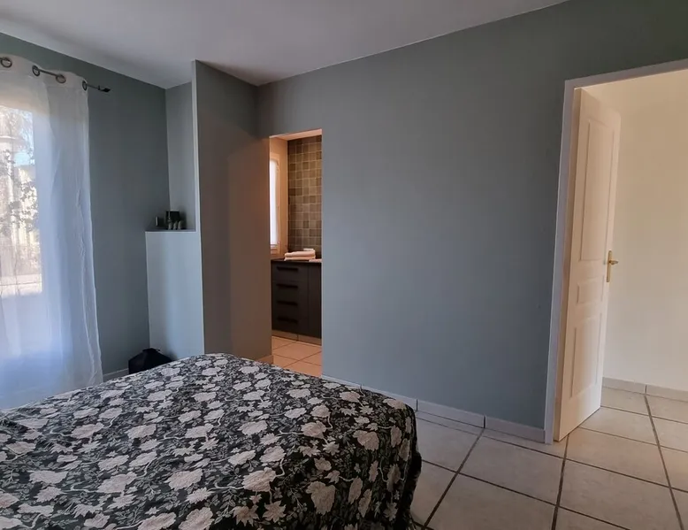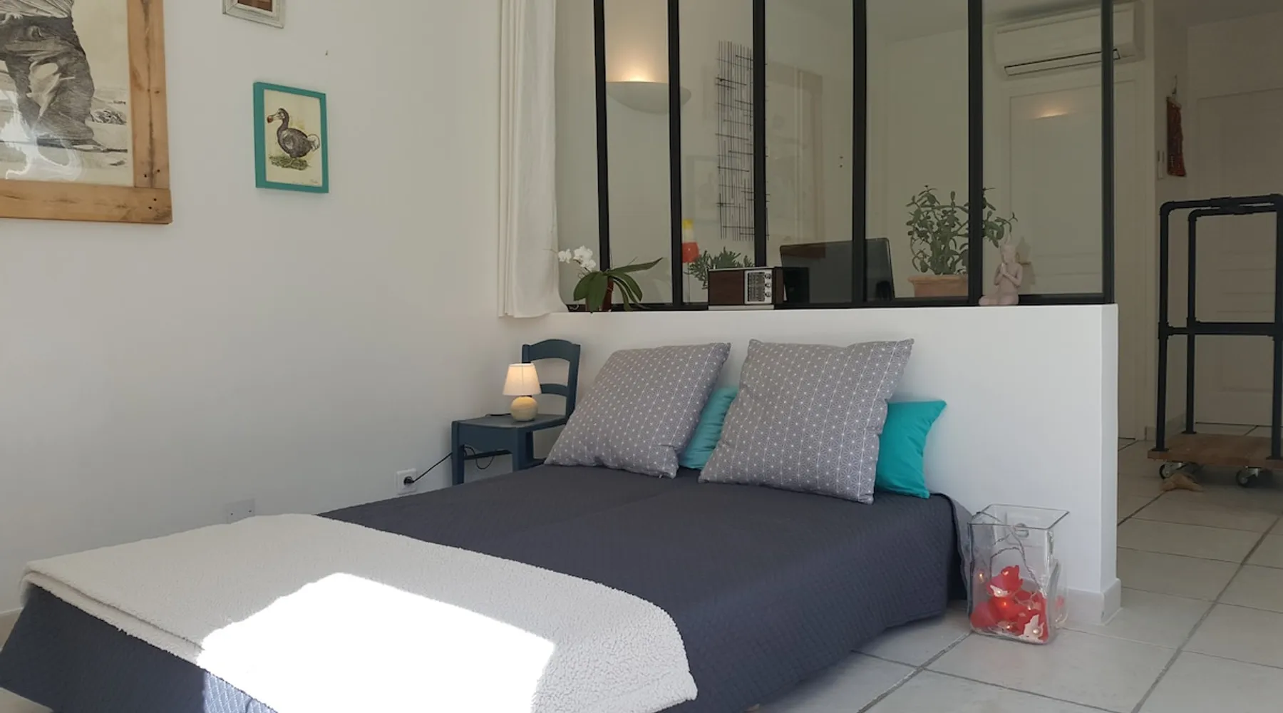 Very beautiful air-conditioned villa on one level with swimming pool, facing south, located in the heart of the village of Lattes in a secure residential area of the city center halfway between the sea and Montpellier close to the tram and all shops Ideal for 4 people - Possibility for 6 people (living room with sleeping area and 2 children's beds) The space Ideally located half way between Palavas and Montpellier (7 min drive) In the center of the village, in a small private subdivision of 9 villas, secured with entrance gate and access code. 2 minutes' walk from the beautiful Sunday market of Lattes and all shops (bakery, press, city crossroads, butcher shop, primeur...) 5 minutes' walk from the tram that will take you to Montpellier centre, train station, supermarkets... 1 minute from the cycling path which joins on one side Montpellier and on the other Palavas along the Méjean natural site and the ponds in 20 minutes of walking (2 bikes are at your disposal) Possibility to come by train: everything can be done on foot, by bike or by tram. Ideal for 4 people - Possibility of 6 people (sleeping area lounge with 2 children's beds) This house of about 100 m2 on its 500 m2 lot will seduce you with its very wooded exterior, its enclosed garden and its 6m×3m flat bottom swimming pool of 1m50 protected by an electric curtain. With its terrace and living room facing south, our ultra-light house, is composed of: -A 1st bedroom with a 160 bed and XL shower. -A second bedroom with a 160 bed with an Italian shower and toilet -A second toilet -A large open plan living room with kitchen, living room, office, office and a second living room that can be used as a 3rd sleeping area (2 60 cm benches): This space is separated from the rest of the room by a canopy and a curtain. 1 secure parking space is available in front of the house. Access to garage for bicycles Opposite a guest bedroom window of the neighbor very rarely occupied, see in photos. Amenities at your disposal: connected TV, Bluetooth smart speaker, electric barbecue, electric plancha, washing machine, dishwasher, freezer, wine cellar... Registration Details 3412900016415