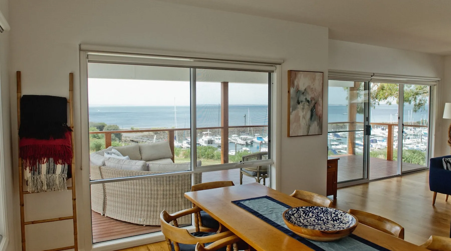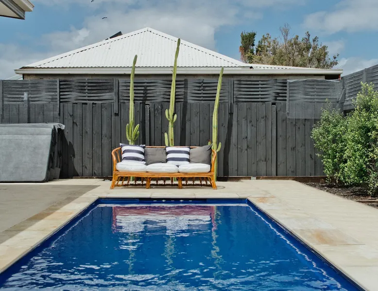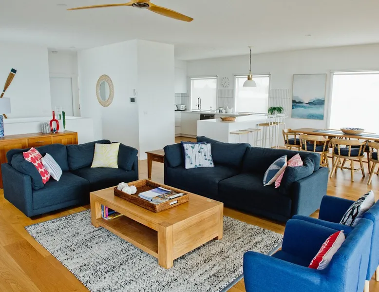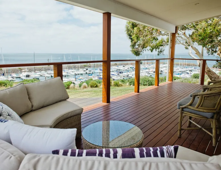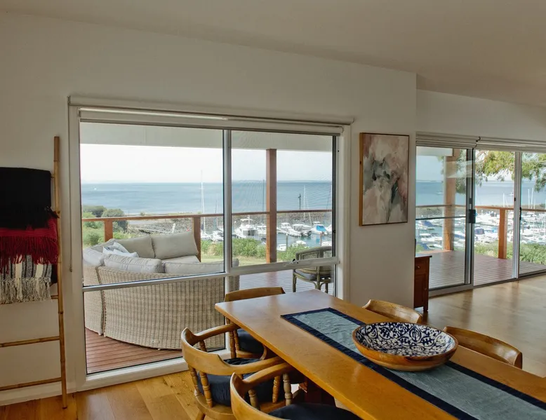 Overlooking the Sea & Newhaven Yacht Squadron with a Public Boat Ramp. Quiet area with active boating scene. Open plan kitchen, dining and lounge upstairs with views. Fully fenced back yard with heated swim/spa. Al-fresco dining with BBQ and bar fridge. Just after Phillip Island Bridge with fabulous restaurants, shopping and a park in Newhaven & San Remo. Nearby Bakery, Cafe, Saltwater Restaurant at Jetty. 5 to 10 minutes walk beaches. Coastal bike paths. Linens & towels provided. The space 4 bedrooms. King, double, 2 single & 2 bunk beds. 2 click clack sofa beds in Media room. 2 bathrooms with large baths. Filtered water throughout. Open plan living. Chefs Kitchen. Games room. Table Tennis. Al Fresco dining & heated pool. Washer & dryer. Fenced backyard with sun lounges. Guest access Lockwood keypads front & backdoor.