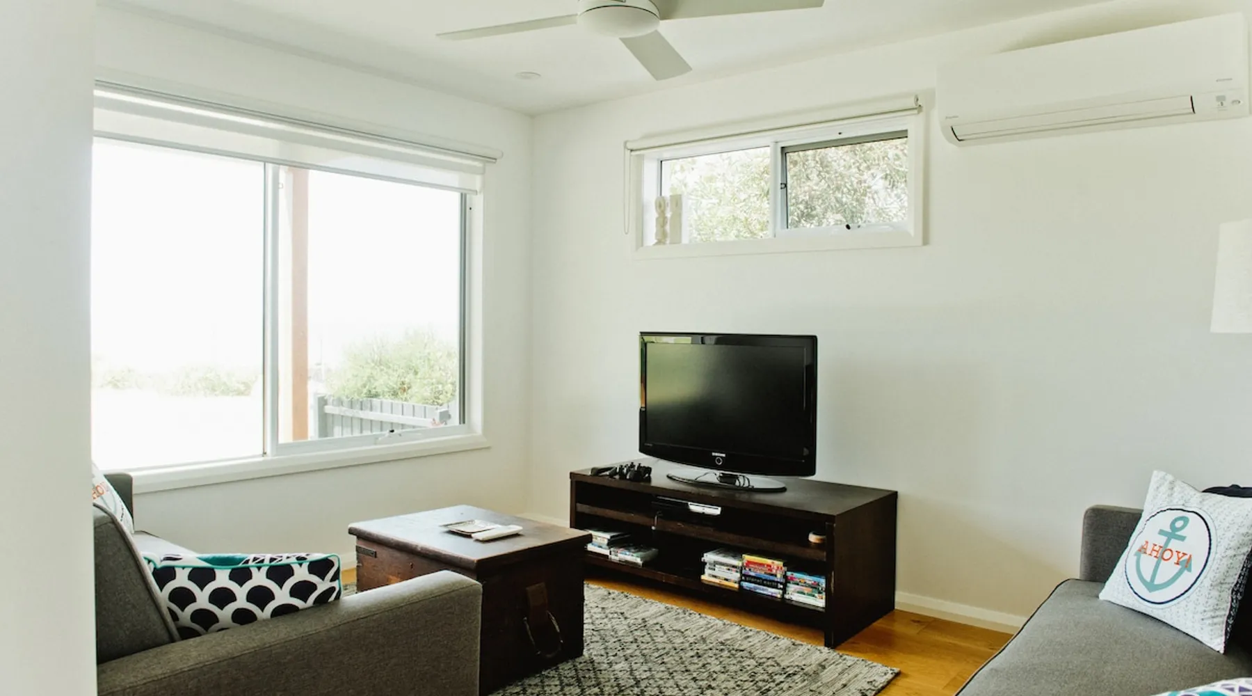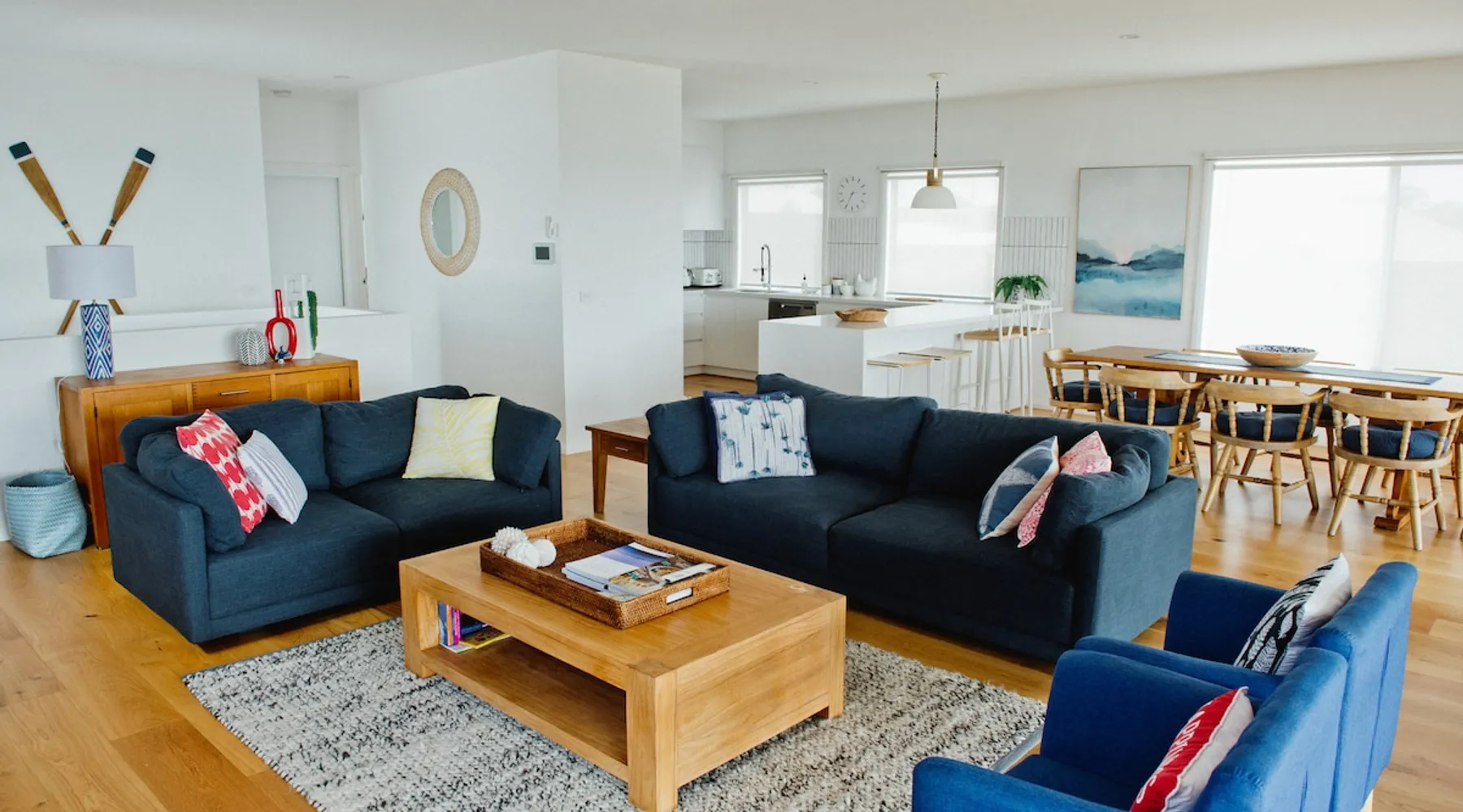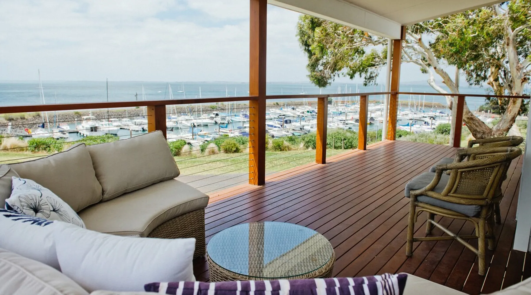 Overlooking the Sea & Newhaven Yacht Squadron with a Public Boat Ramp. Quiet area with active boating scene. Open plan kitchen, dining and lounge upstairs with views. Fully fenced back yard with heated swim/spa. Al-fresco dining with BBQ and bar fridge. Just after Phillip Island Bridge with fabulous restaurants, shopping and a park in Newhaven & San Remo. Nearby Bakery, Cafe, Saltwater Restaurant at Jetty. 5 to 10 minutes walk beaches. Coastal bike paths. Linens & towels provided. The space 4 bedrooms. King, double, 2 single & 2 bunk beds. 2 click clack sofa beds in Media room. 2 bathrooms with large baths. Filtered water throughout. Open plan living. Chefs Kitchen. Games room. Table Tennis. Al Fresco dining & heated pool. Washer & dryer. Fenced backyard with sun lounges. Guest access Lockwood keypads front & backdoor.