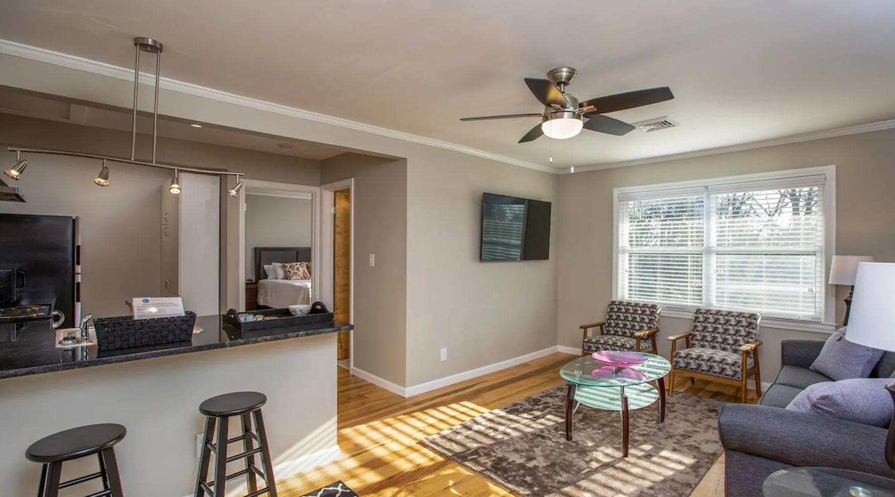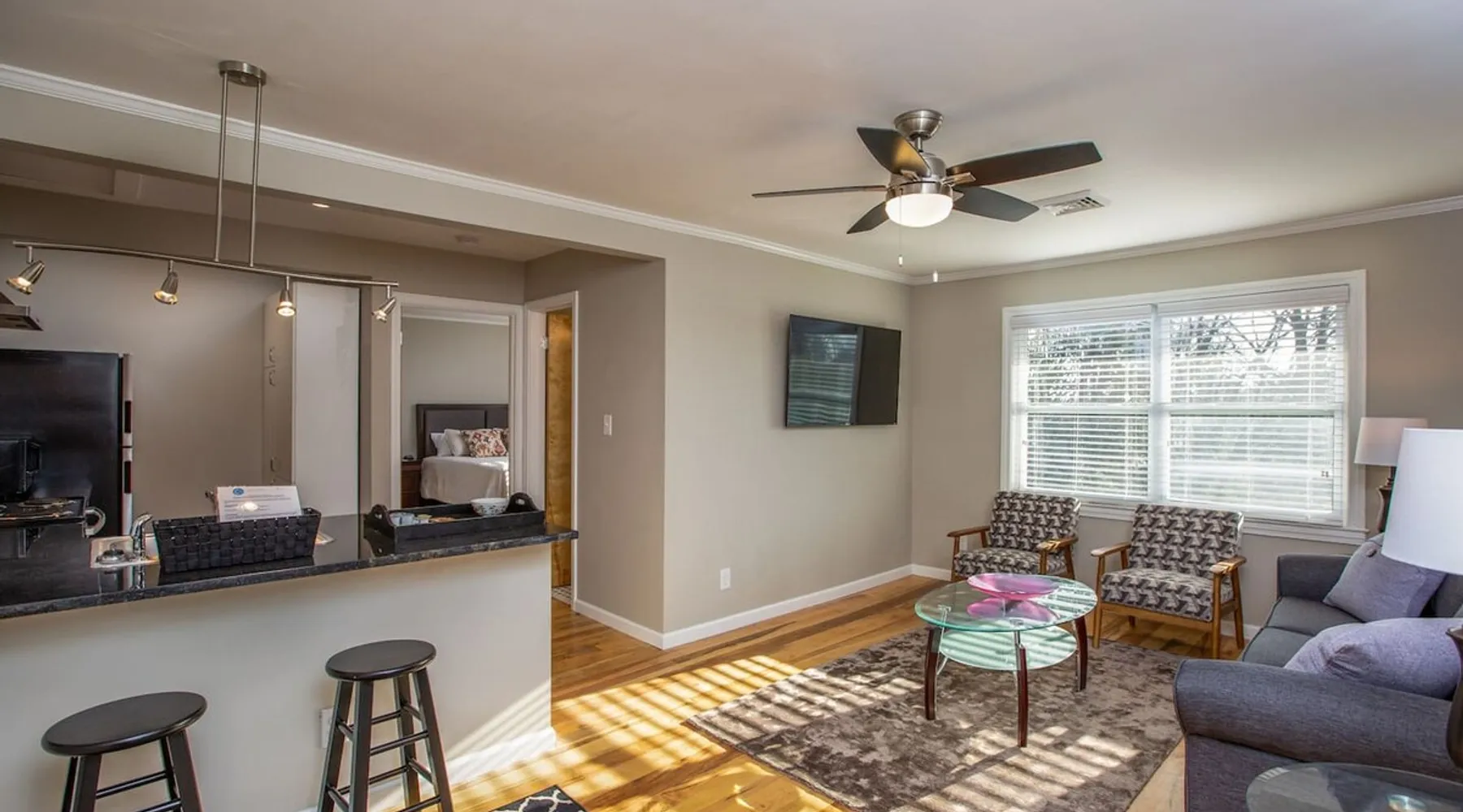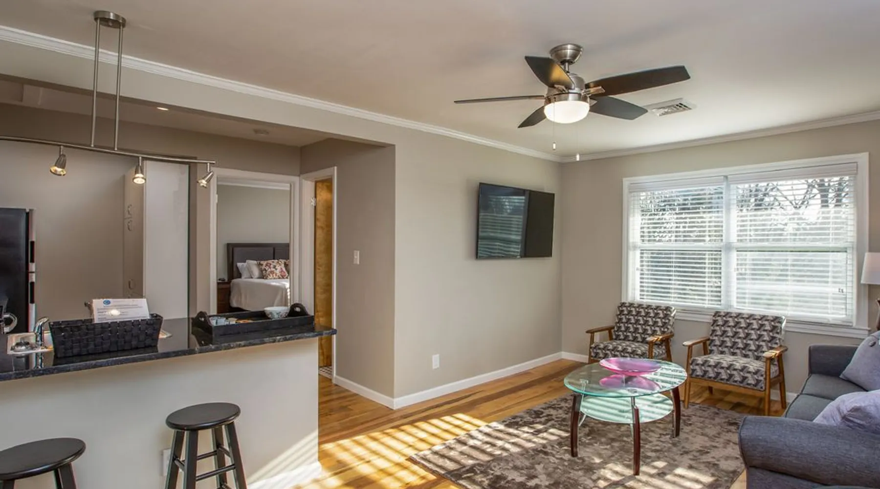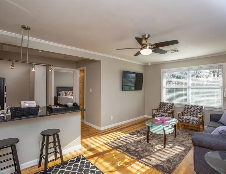 Come stay in this newly renovated, beautiful 2 bedroom apartment located just 1,500 feet from Baptist Hospital and 1 mile from downtown. Seasoned hosts will ensure that every amenity you need and desire is provided. This sparkling, clean apartment allows for the chance to get away while still providing the comforts of home. A second floor apartment, it has a large, open kitchen with brand new appliances and all the utensils, pots/pans, small appliances and spices you need to make any meal! The space You will appreciate tasteful touches throughout the home that make this an extra special getaway- including hardwood floors and granite countertops. This home also has its own laundry room and bathroom. Everything you might need to feel comfortable are at your disposal, including fresh towels and sheets, cozy blankets, a sound machine, laundry detergent, and K-Cups. There are many amenities for your comfort and enjoyment, including a big screen Smart TV with cable and two bedrooms. One of the bedrooms has a queen size bed and the other has twin size bunk beds. Ample storage will allow you to unpack your suitcase and stay for as long as you desire! For your convenience, a parking lot is located in the rear of the building. The pictures accurately represent the space, although furniture may change. To maintain the quality of this home and keep a hypoallergenic environment, there are no pets allowed. Smoking and drugs are not permitted, and we ask that all guests respect neighbors by following a 10pm quiet time policy. Because the entire facility is owned and managed by a seasoned Superhost, you can be assured of a quality experience.