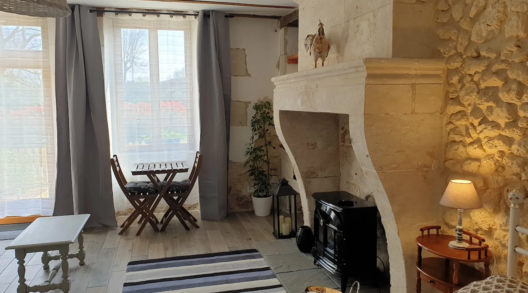 Relaxing rural location, ideal for walkers and cyclists. Own entrance, patio area to sit, off road parking, wifi, Aircon, TV. fridge, microwave, toaster, kettle, tea, coffee and milk included. Accommodation comprises of a shower room with W.C, double bed, a sofa bed for two extra people at additional cost. A short drive from the popular village of Aubeterre, St Aulaye and La Jemaye with man made beaches and canoeing available, 15 min walk from Chateau de La Mothe & Chateau Saint Privat des Pres