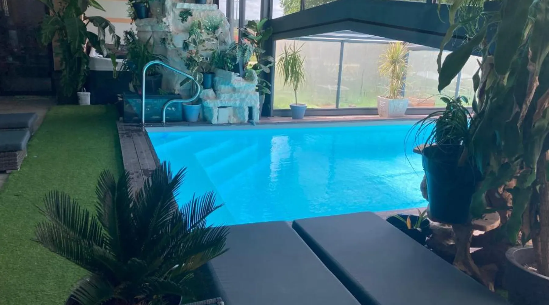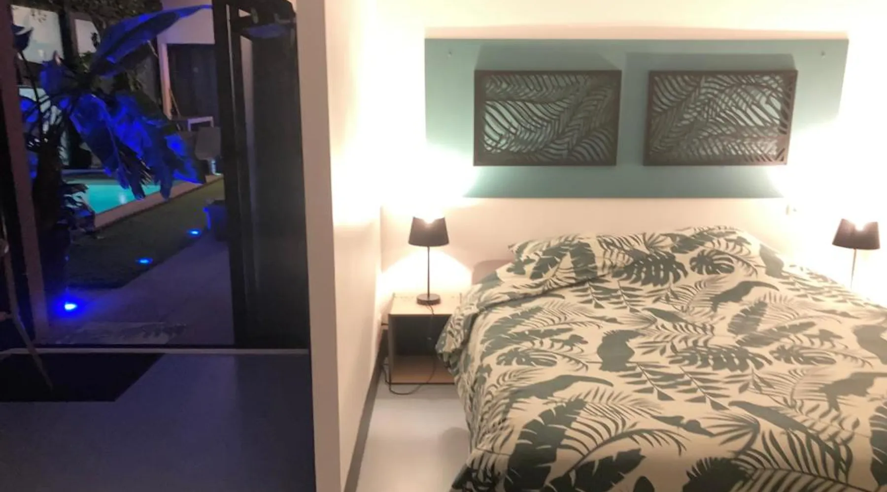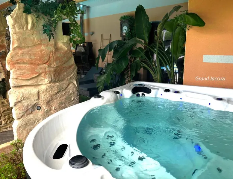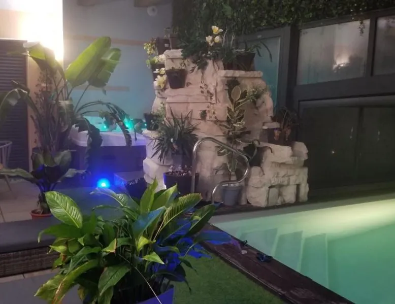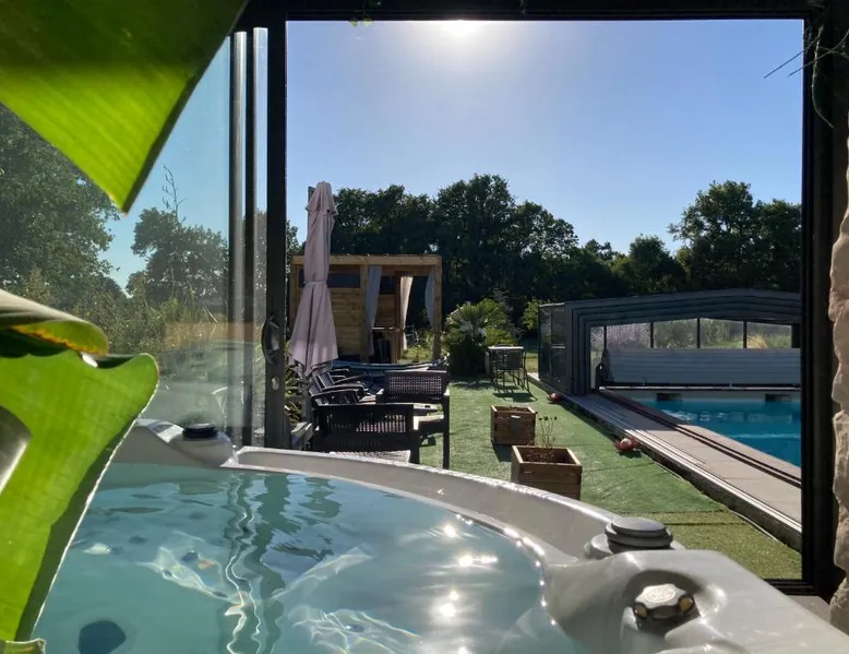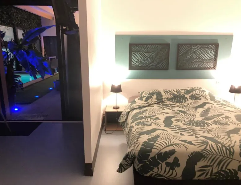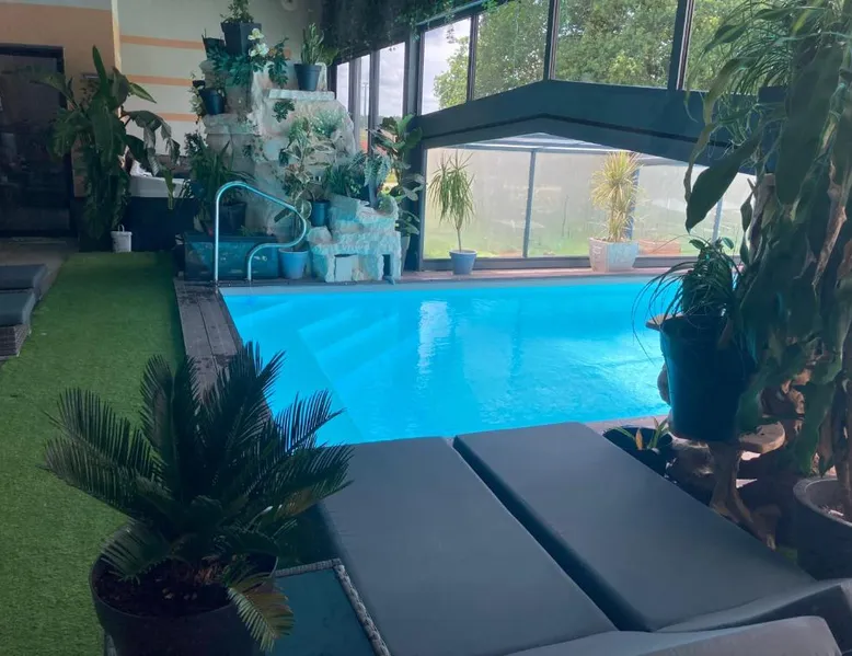 Spa and Wellness: Desirad in La Clisse offers a spa and wellness center, indoor swimming pool, sun terrace, and open-air bath. Guests can relax in the hot tub or enjoy the solarium. Comfort and Amenities: The guest house features free WiFi, air-conditioning, and a lounge. Additional amenities include a coffee shop, outdoor fireplace, and games room. Free on-site private parking is available. Activities and Attractions: Activities include fishing, walking tours, bike tours, hiking, cycling, and snorkeling. Nearby attractions include Saintes Train Station (8.1 mi) and Royan Golf (6.8 mi). La Rochelle - Ile de Re Airport is 53 mi away. Guest Satisfaction: Guests highly rate the hot tub, swimming pool, and attentive staff. This triple room's special feature is the pool with a view. Guests will find a stovetop, a refrigerator, kitchenware and an oven in the fully equipped kitchen. The triple room also offers a barbecue. The triple room provides air conditioning, a private entrance, a terrace with garden views as well as a private bathroom featuring a walk-in shower. The unit offers 2 beds.