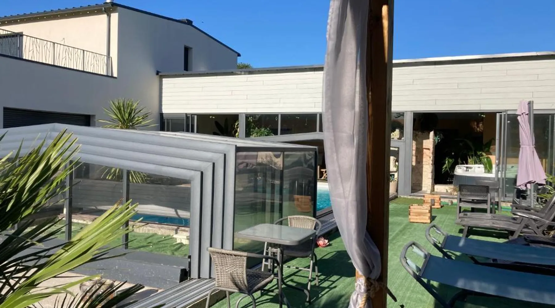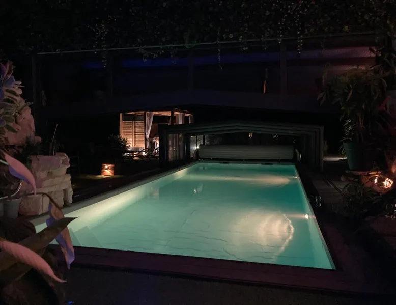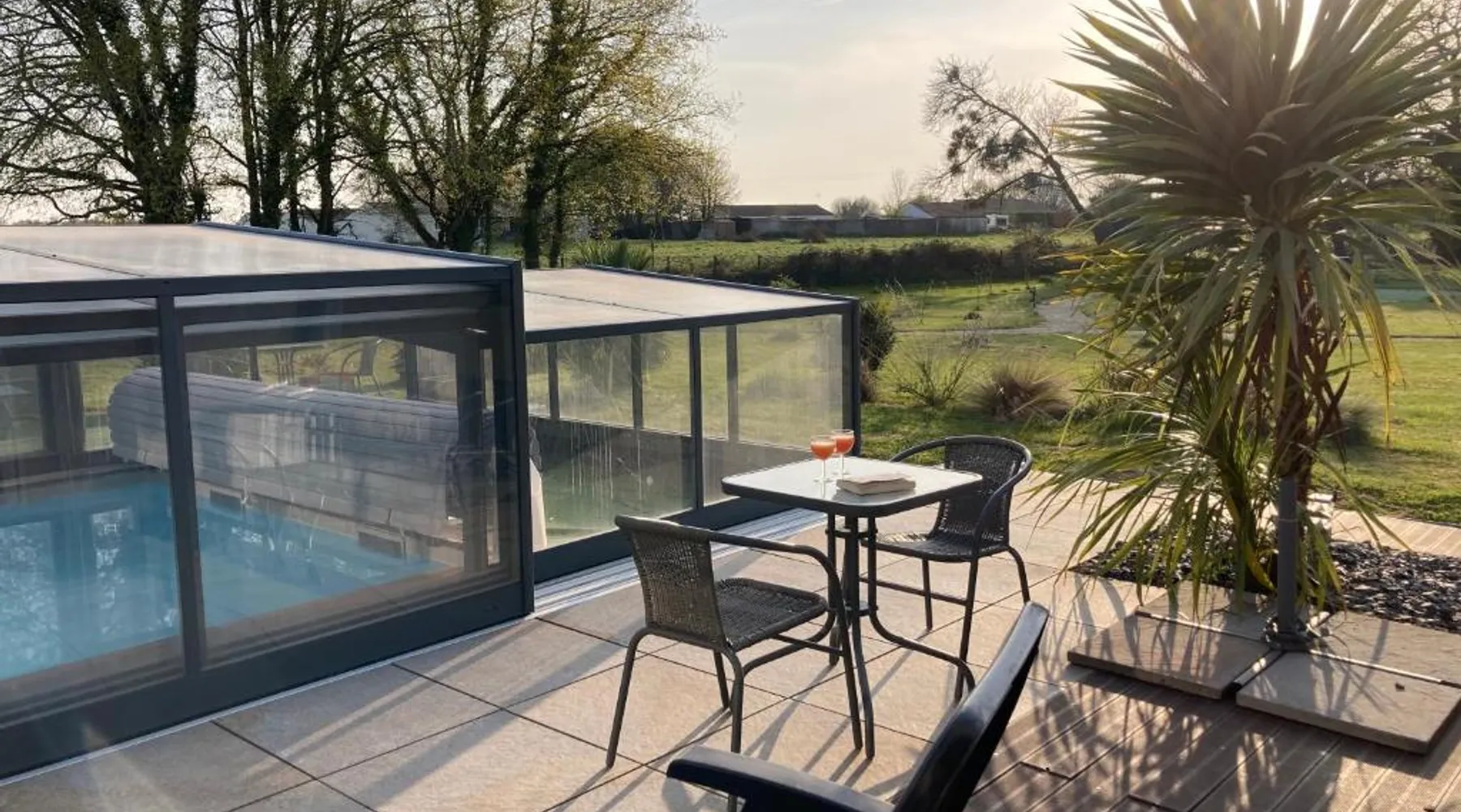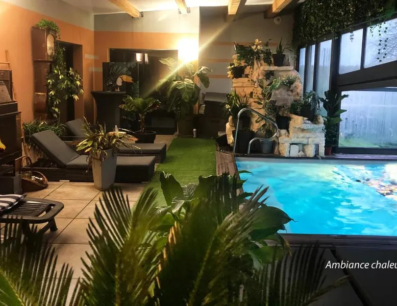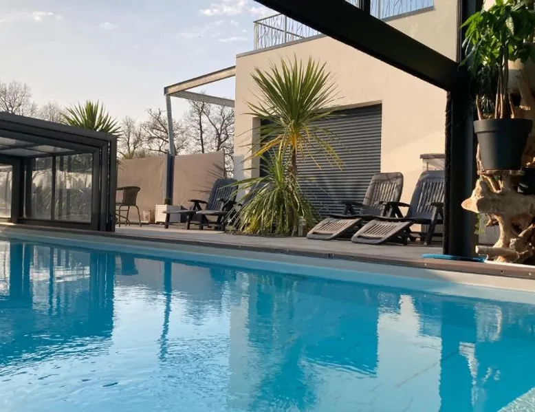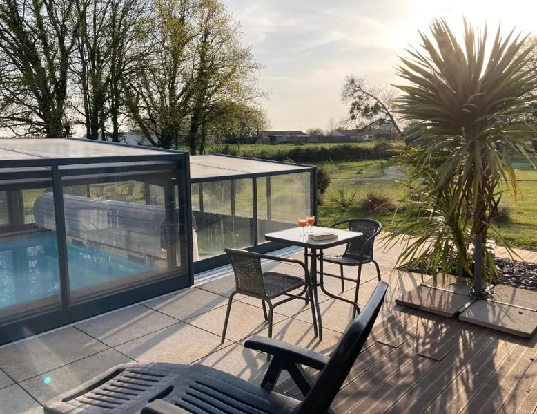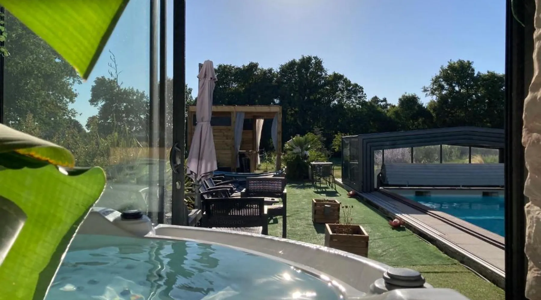 Spa and Wellness: Desirad in La Clisse offers a spa and wellness center, indoor swimming pool, sun terrace, and open-air bath. Guests can relax in the hot tub or enjoy the solarium. Comfort and Amenities: The guest house features free WiFi, air-conditioning, and a lounge. Additional amenities include a coffee shop, outdoor fireplace, and games room. Free on-site private parking is available. Activities and Attractions: Activities include fishing, walking tours, bike tours, hiking, cycling, and snorkeling. Nearby attractions include Saintes Train Station (8.1 mi) and Royan Golf (6.8 mi). La Rochelle - Ile de Re Airport is 53 mi away. Guest Satisfaction: Guests highly rate the hot tub, swimming pool, and attentive staff. This triple room's special feature is the pool with a view. Guests will find a stovetop, a refrigerator, kitchenware and an oven in the fully equipped kitchen. The triple room also offers a barbecue. The triple room provides air conditioning, a private entrance, a terrace with garden views as well as a private bathroom featuring a walk-in shower. The unit offers 2 beds.