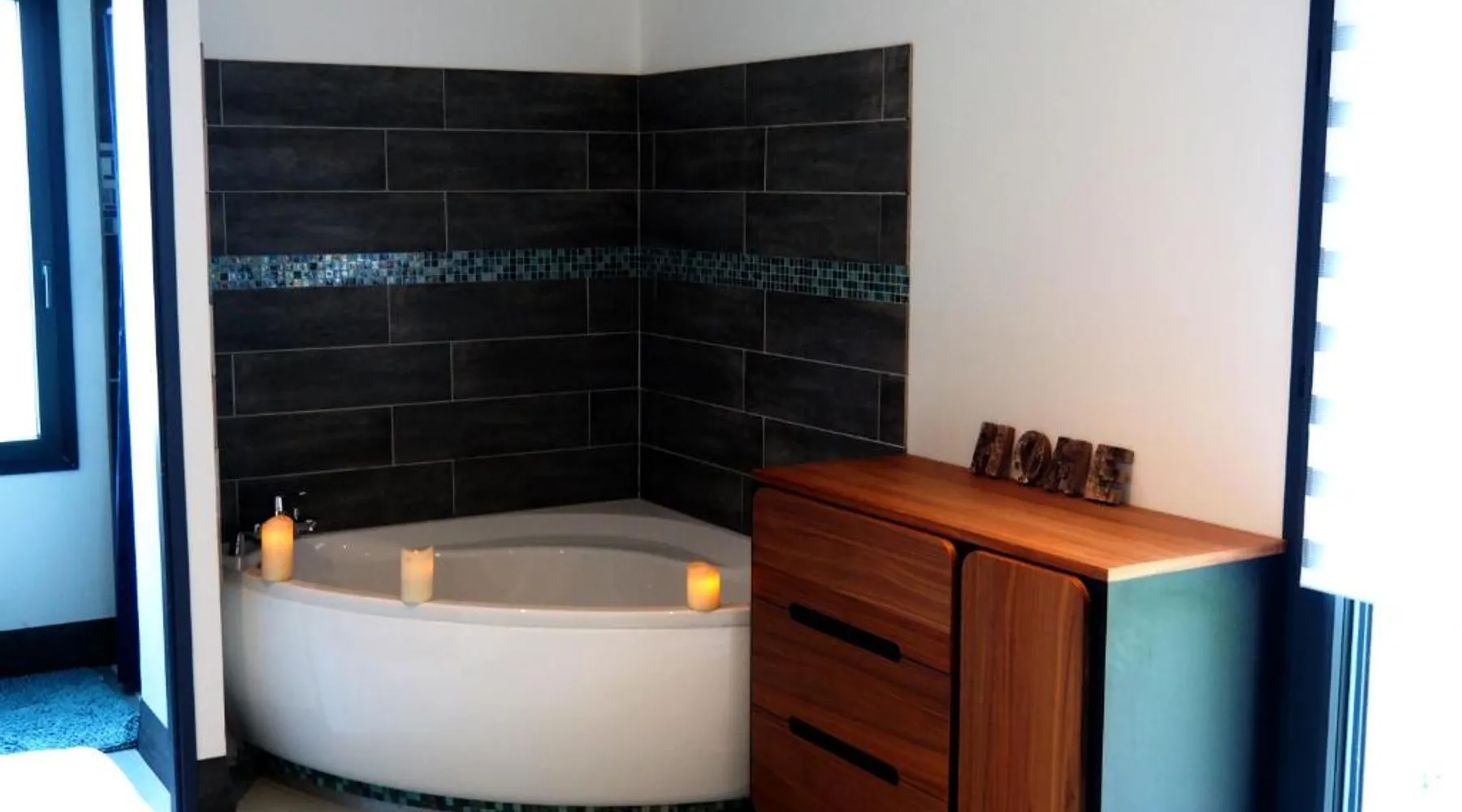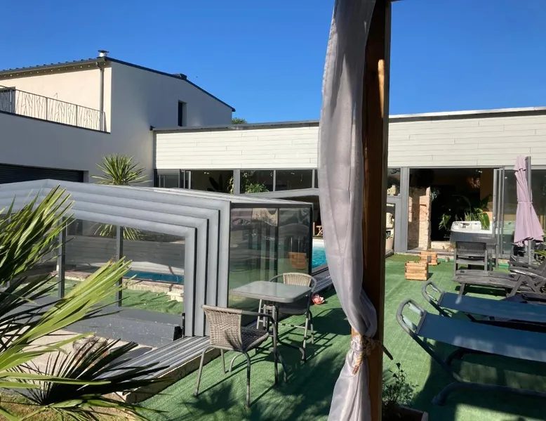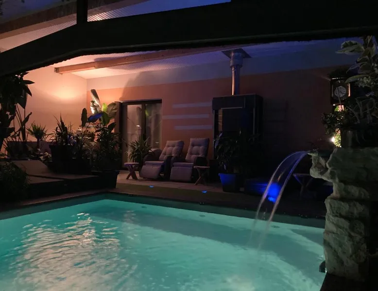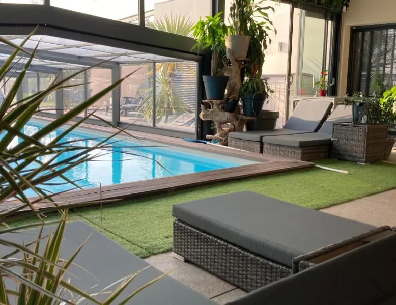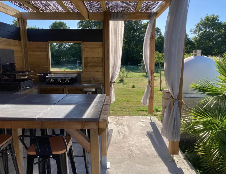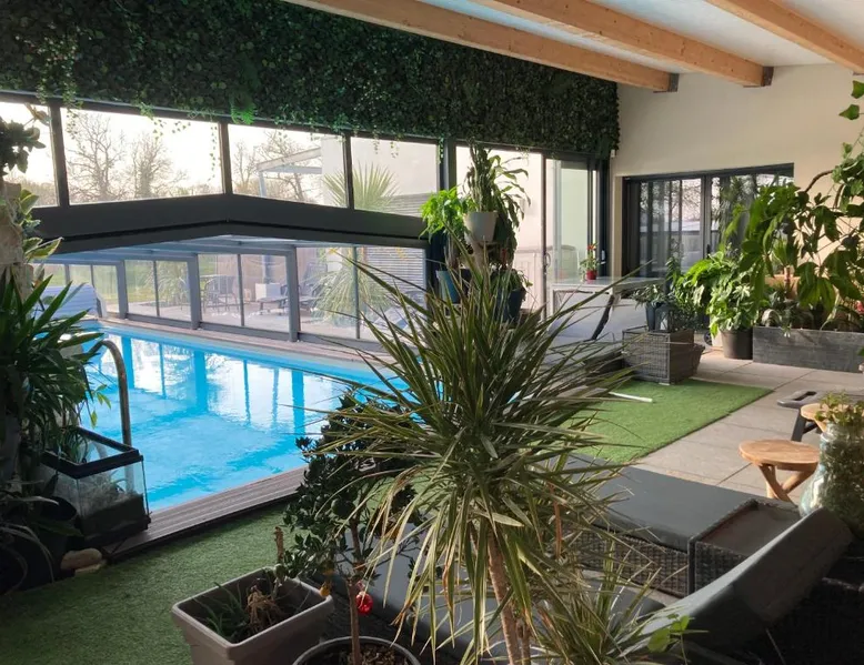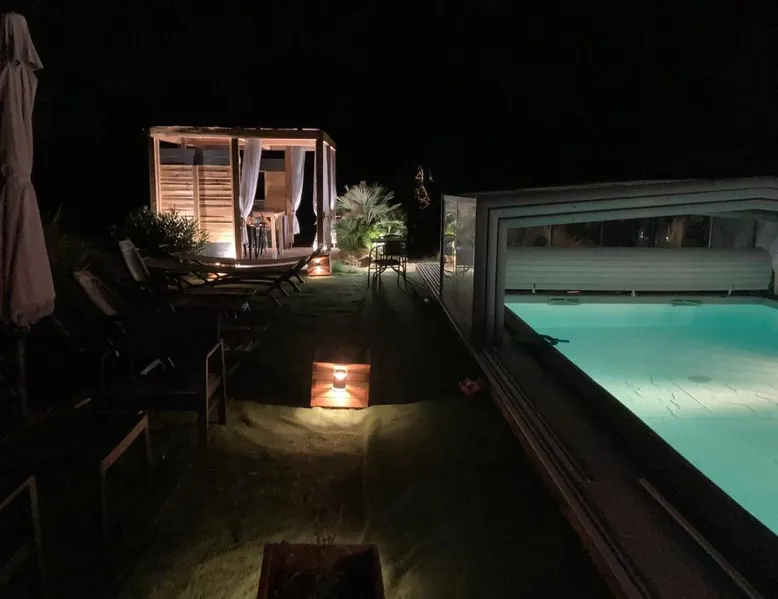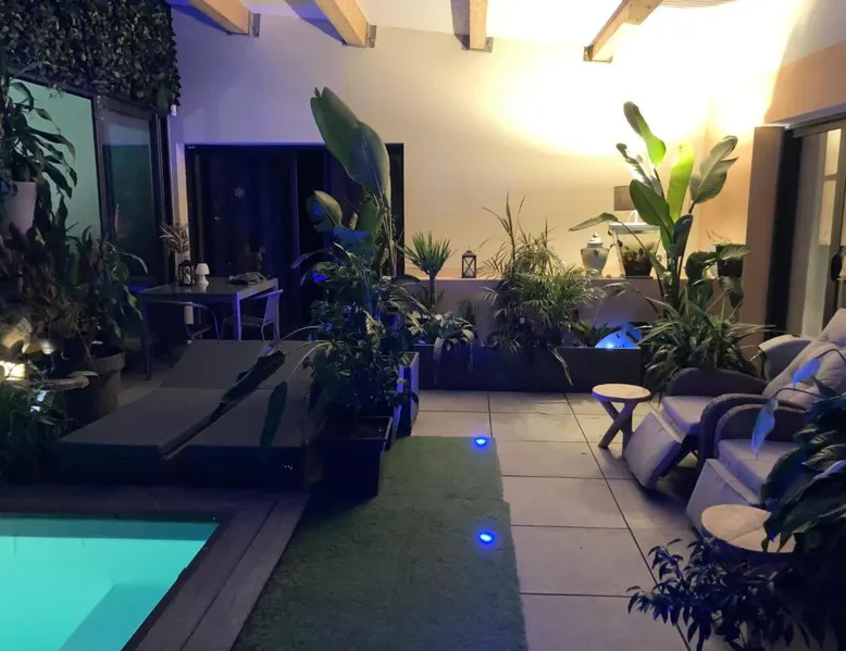 Spa and Wellness: Desirad in La Clisse offers a spa and wellness center, indoor swimming pool, sun terrace, and open-air bath. Guests can relax in the hot tub or enjoy the solarium. Comfort and Amenities: The guest house features free WiFi, air-conditioning, and a lounge. Additional amenities include a coffee shop, outdoor fireplace, and games room. Free on-site private parking is available. Activities and Attractions: Activities include fishing, walking tours, bike tours, hiking, cycling, and snorkeling. Nearby attractions include Saintes Train Station (8.1 mi) and Royan Golf (6.8 mi). La Rochelle - Ile de Re Airport is 53 mi away. Guest Satisfaction: Guests highly rate the hot tub, swimming pool, and attentive staff. This triple room's special feature is the pool with a view. Guests will find a stovetop, a refrigerator, kitchenware and an oven in the fully equipped kitchen. The triple room also offers a barbecue. The triple room provides air conditioning, a private entrance, a terrace with garden views as well as a private bathroom featuring a walk-in shower. The unit offers 2 beds.