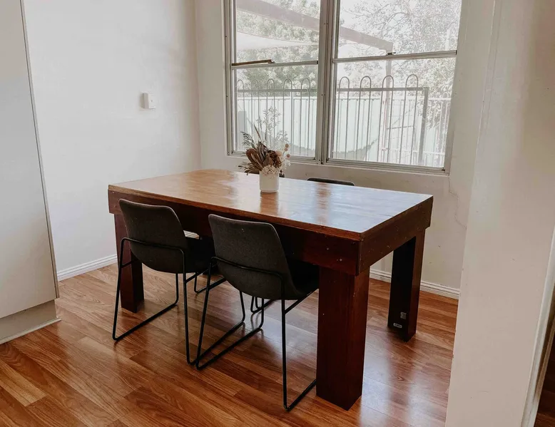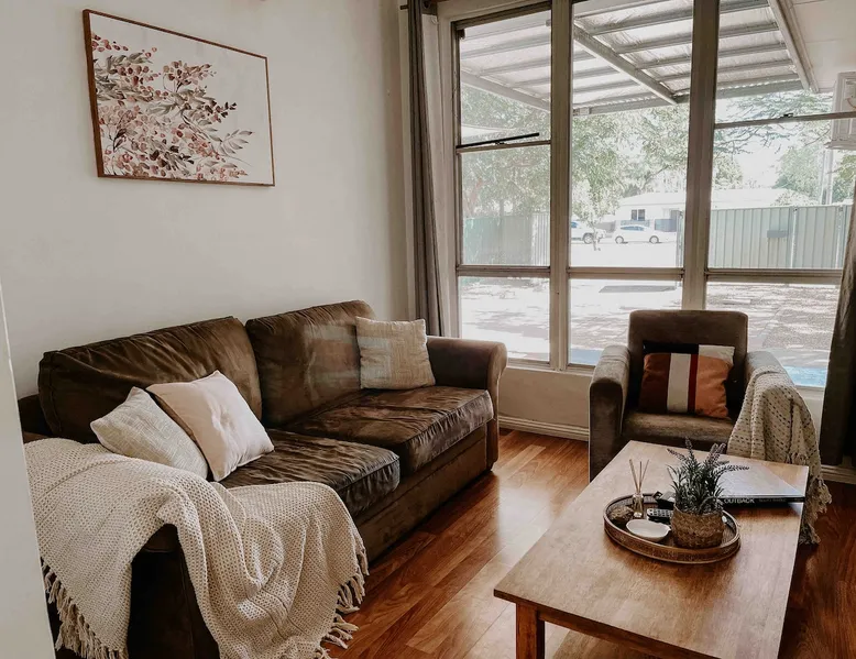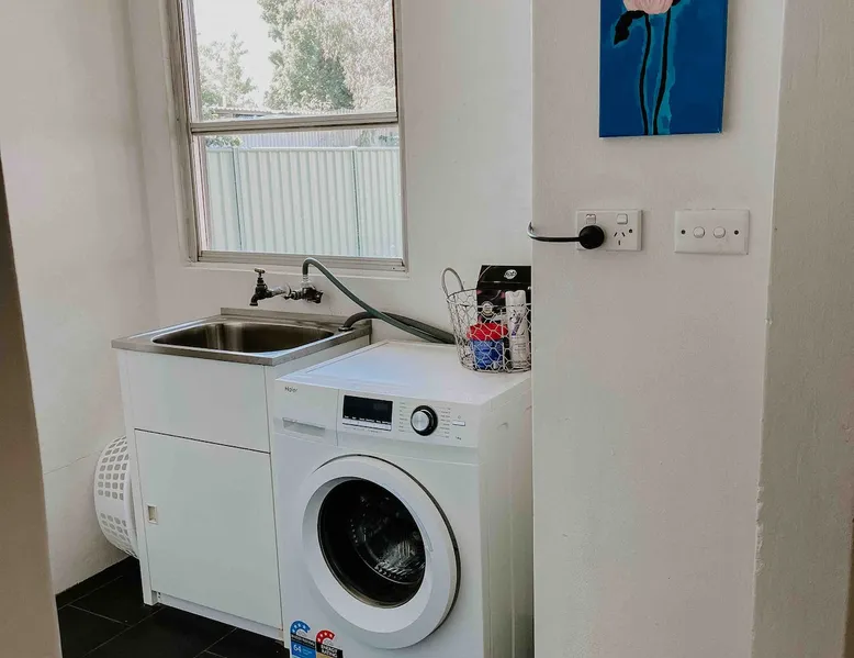 Inviting and comfortable - the perfect home away from home! Our air bnb is set up perfectly for contractors and extended stays- providing all of the comforts of home. Are you visiting town for work or visiting loved ones? We’ve got you covered. Three decent sized bedrooms- all with split system air conditioners- two with ceiling fans and built ins. Weekly rates available for extended stays for contract workers. The space This beautiful home has a fantastic shady entertainment area with a ceiling fan and outdoor setting. With a HUGE fully fenced, private yard with lawn. The lounge area is cosy space to relax in and all three bedrooms boast split system cooling and two of which have ceiling fans. The bathroom is modern and functional with a shower over the bath, seperate toilet and an outside toilet and shower. There is also a internal functional laundry with a washing machine.