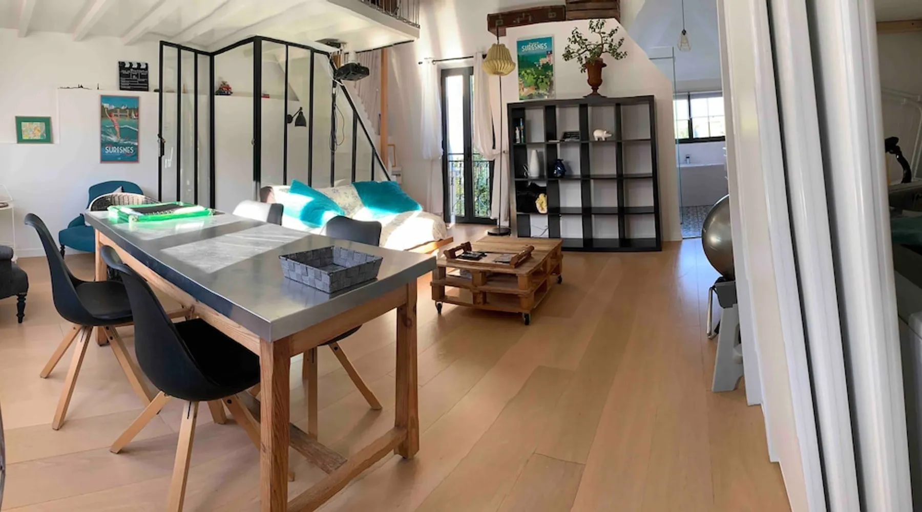 ❤️ PROMO with garden share We make with you the check in ! Iindependent Loft'Appart, free wifi / bright, quiet and cosy, ceiling 4.50m Near station metro line 1 and Rer A -armchairs and sofa -dining room: table, 5 chairs -equipped kitchenette -bathroom: 1 whirlpool bath/1 Italian shower: jets + rain shower, separate toilet -large mezzanine bed -TV screen 3x4 bluetooth Nearby: shops and restaurants and La Défense15' from Champs Elysées/U Arena/LVMH Museum/ Bois de Boulogne, Porte de Versailles The space ❤️ 3 stars - the apartment has been awarded the 3-star label ⭐️ ⭐️ ⭐️ "classement France des meublés de tourisme" (Atout France) following an on-site visit and inspection by an independent organization which checked the comfort, decoration, equipment and geographical location 2 stations from the Ligne 1 and Rer A metro lines. - What's more, our self-catering accommodation is rated 5 stars out of 5. 🌠 🌠 🌠 🌠 🌠 by @Airbnb visitors who have lived, slept and enjoyed our Loft'Appart. Located in the town of Suresnes on the slopes of Mont Valérien next to Paris and La DEFENSE. After checking in between 2pm and 7pm (negotiable) you'll love our 35m2 Loft Appart accommodation created in 2017! This loft apartment is ideal for a single person or a couple to sleep in a large bed. You can be up to 3 (or 4) in this Loft sleeping in the sofa / futon (note 3 visitors) Very bright, fully-equipped apartment, not overlooked, in a quiet neighborhood and street, with a vast volume and a beautiful 4.5-meter high ceiling. You'll be able to sleep with the windows open, as it's very quiet for a good night's rest! The apartment includes : - free wifi -A fully equipped kitchenette, -a lounge area with 2 armchairs and a futon sofa for watching the screen thanks to a video projector that projects a 3mx2m image onto a white wall -A 12 m2 bathroom with 1 whirlpool bath with light therapy and jets + 1 shower with 3 massaging jets and a separate toilet. -A 15m2 mezzanine sleeping area with a double bed, overlooking the Eiffel Tower via velux windows. -A dining area with a large table and 5 chairs for sharing meals and a work area if telecommuting via our Wifi connection. -> the decoration of the space makes it cosy and warm. Our Loft Appart was built in 2017. You can use the outside garden, if you wish, for dinner or lunch, or to relax with 1 Weber barbecue, a garden table and 4 chairs. ~>quality of equipment: 1 large table and 5 chairs, 2 armchairs, a wardrobe, decorative lights, kitchenette equipped with toaster / kettle / chopper / microwave / washing machine / 2 hotplates / coffee machine. And all necessary cookware and cutlery What's more, our apartment is close to all the attractions of Paris and the La Defense business center. 5 minutes from Bois de Boulogne, 15 minutes from the most beautiful avenue in the world, the Champs Elysées in Paris, and the Arc de Triomphe. 22 minutes from the Eiffel Tower .... our apartment will win you over! 2 minutes from public transport (Tramway 2 and Bus lines, and Transilien line L) Next to La Défense, La Seine Musicale in Boulogne, Paris La Defense Arena and major events / concerts (at hippodrome de Longchamp / Rock en Seine / salons Porte de Versailles/ ...) and sporting events: Rugby World Cup 2023 and Paris Olympics 2024 I would add that Suresnes has the most beautiful view of the Eiffel Tower, the « Iron Lady », and the whole of Paris. Officially registered by the Office de Tourisme de Suresnes under number 000080CA Guest access Independent loft apartment located in a townhouse, you will have independent and direct access via a private entrance to this apartment. A corridor and stairs will take you to this charming loft on the 2nd floor. Other things to note Our Mansard-style house, with its zinc roof, was built in 1928 and has recently been extended. The proposed loft/artist's studio/apartment is original, cosy, bright and not overlooked, with high attic ceilings. Quality bedding. Equipment provided during your stay: sheets / comforters / pillows / towels. A rowing machine at your disposal for a bit of exercise. Safety equipment: 1st aid kit Additional equipment: clothesline, hairdryer, etc. Equipment on request: cot, iron and ironing board Bathroom equipment: better than a thalasso, luxury balneo/luminotherapy bathtub, + Italian shower with 3 massaging jets and rain sky, dedicated to well-being. Given the value and quality of the equipment on offer: video projector / whirlpool bath, etc., deliberate damage to this equipment will result in the loss of the deposit. Registration Details 92150000080CA